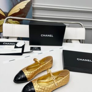 CHANEL Thick Square Toe Color Matching High Heels Size 35-43 Gold