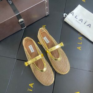 ALAIA Women Leather Mesh Ballet Shoes Size 35-42