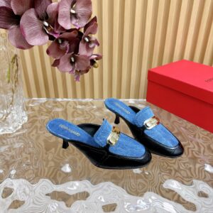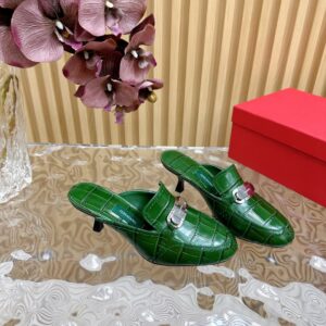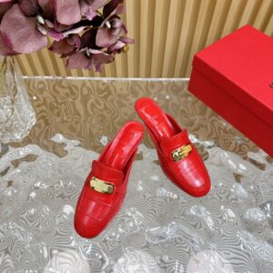 Ferragamo Alligator Solid Color Metal Decorated High Heels Size35-42