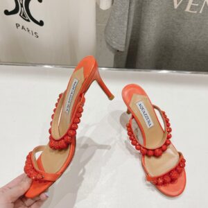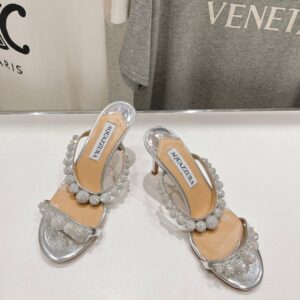 AQUAZZURA Women Rhinestone High-heeled Slippers Size 35-42