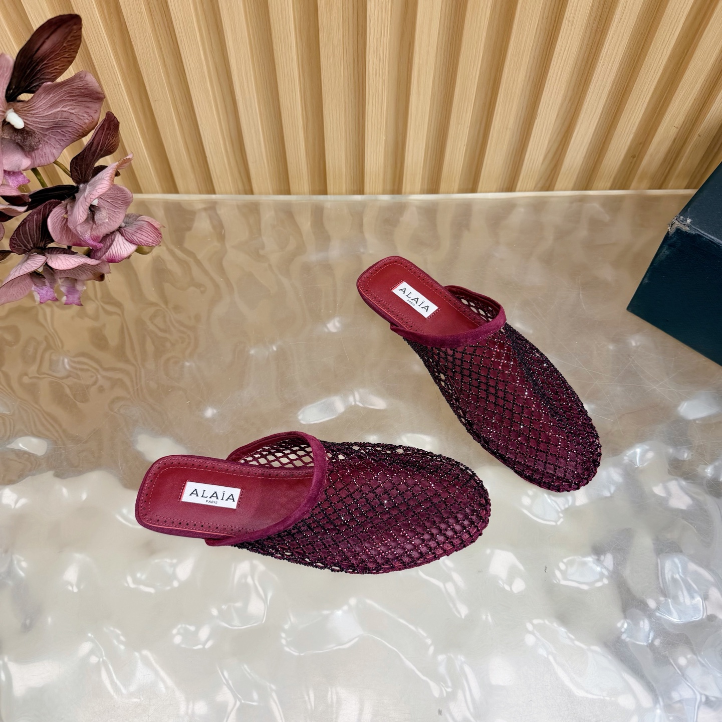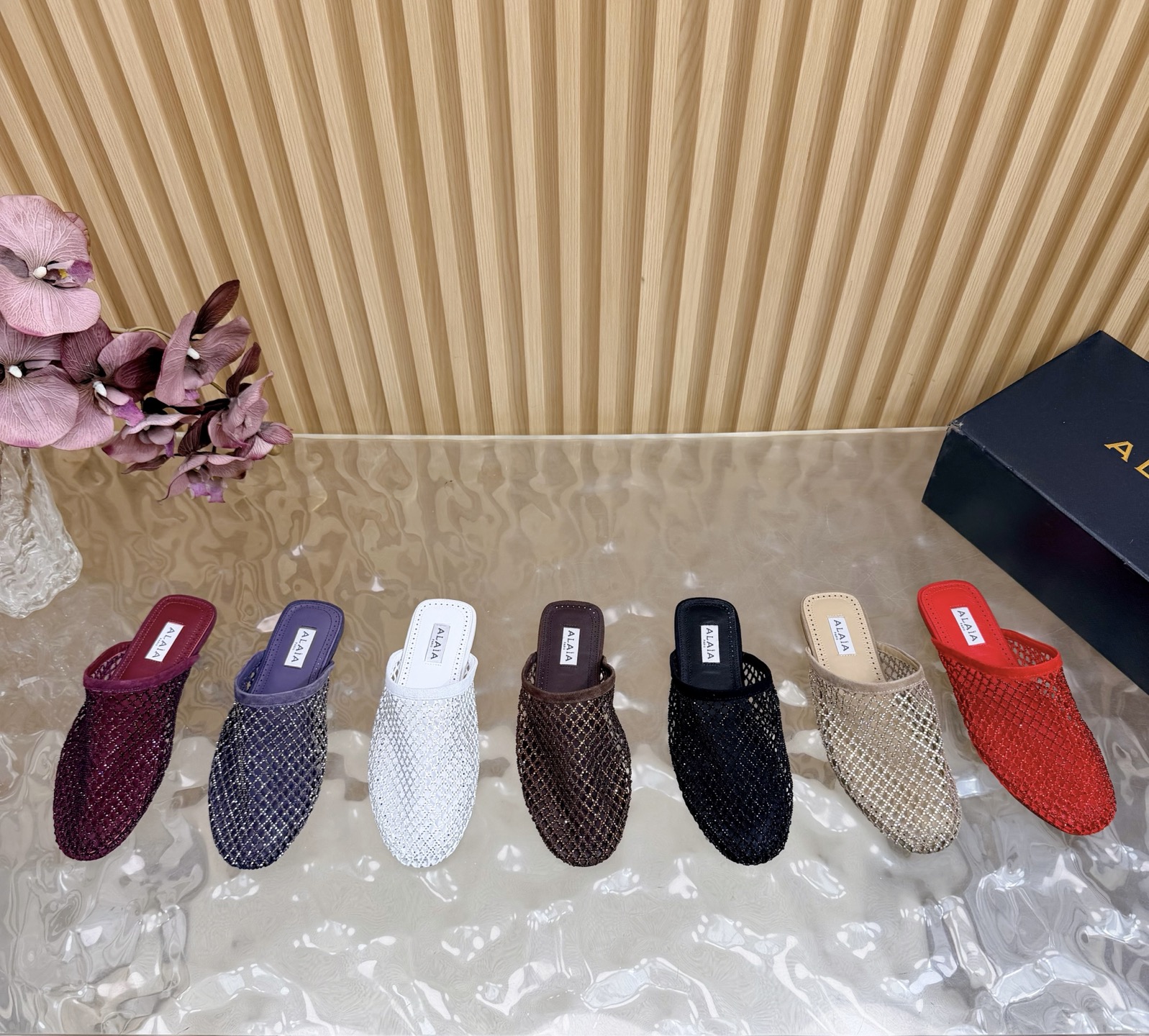 𝑨𝒍𝒂𝒊𝒂 Retro Mesh Rivet Laser-cut Slippers Size 35-43
