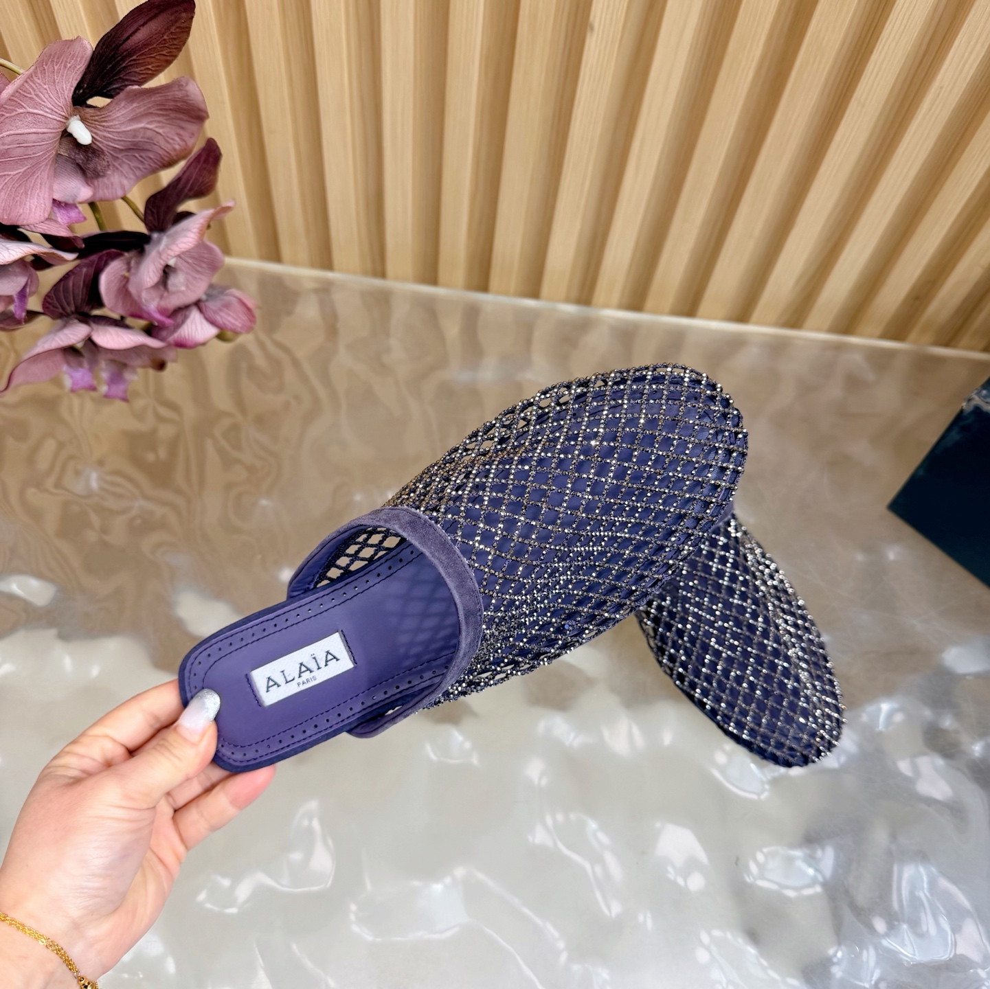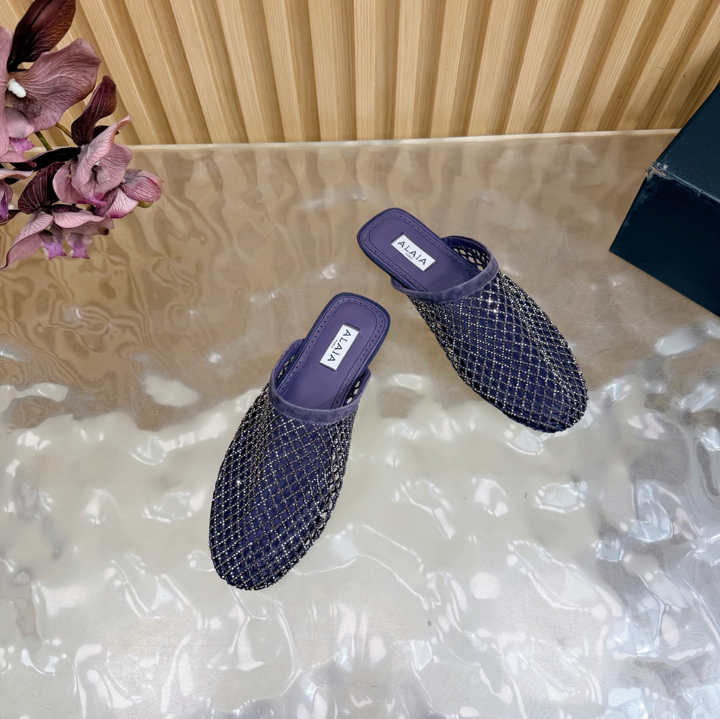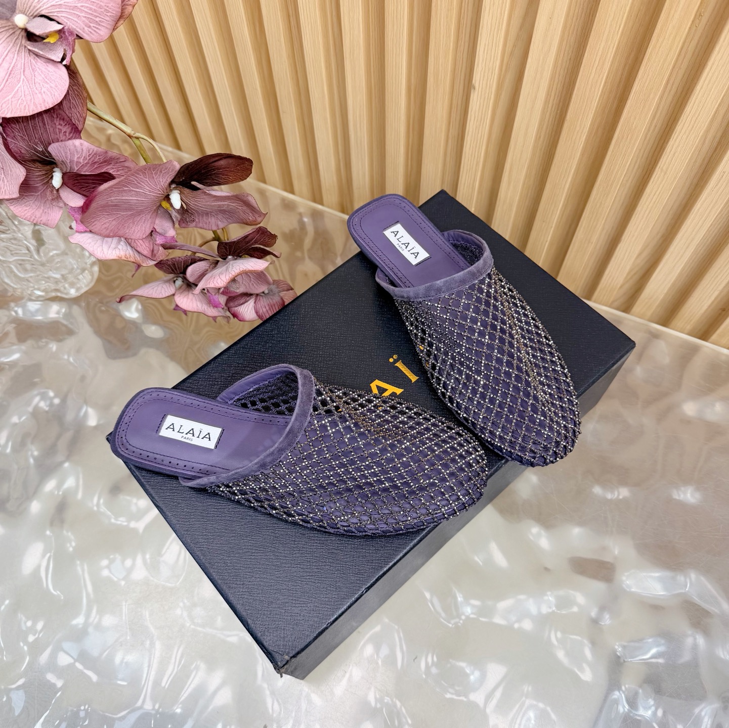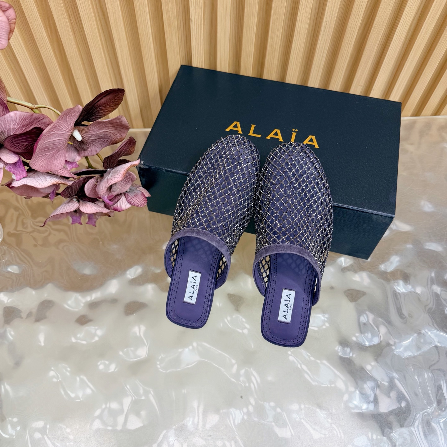 𝑨𝒍𝒂𝒊𝒂 Retro Mesh Rivet Laser-cut Slippers Size 35-43