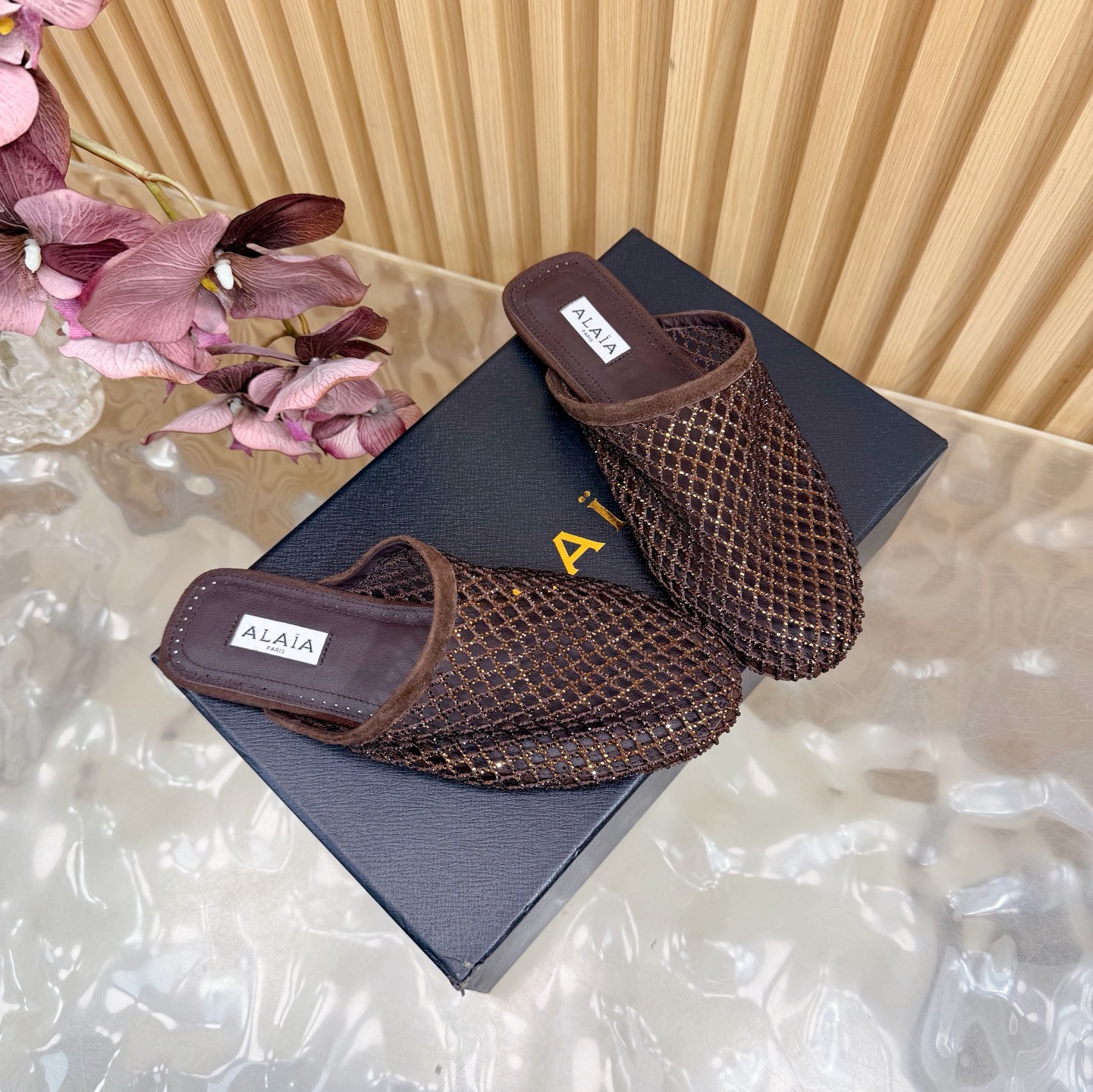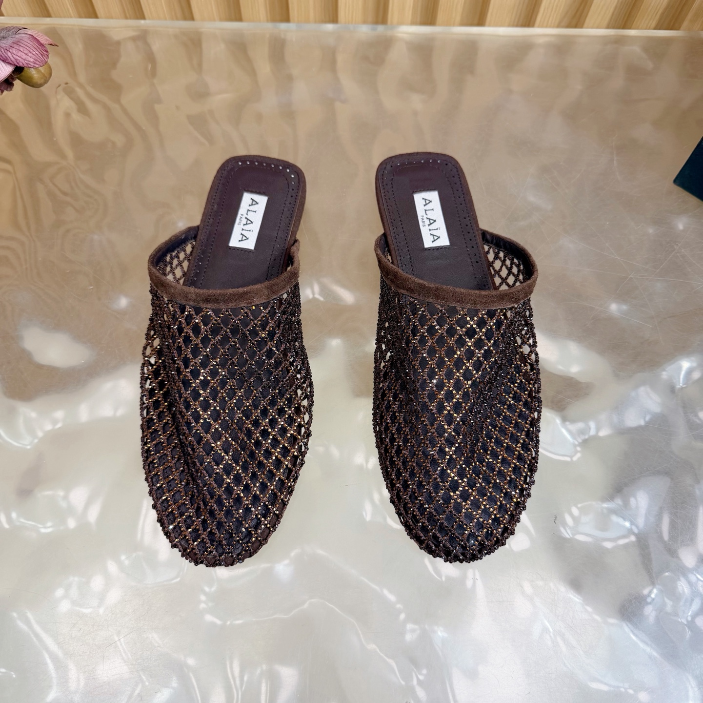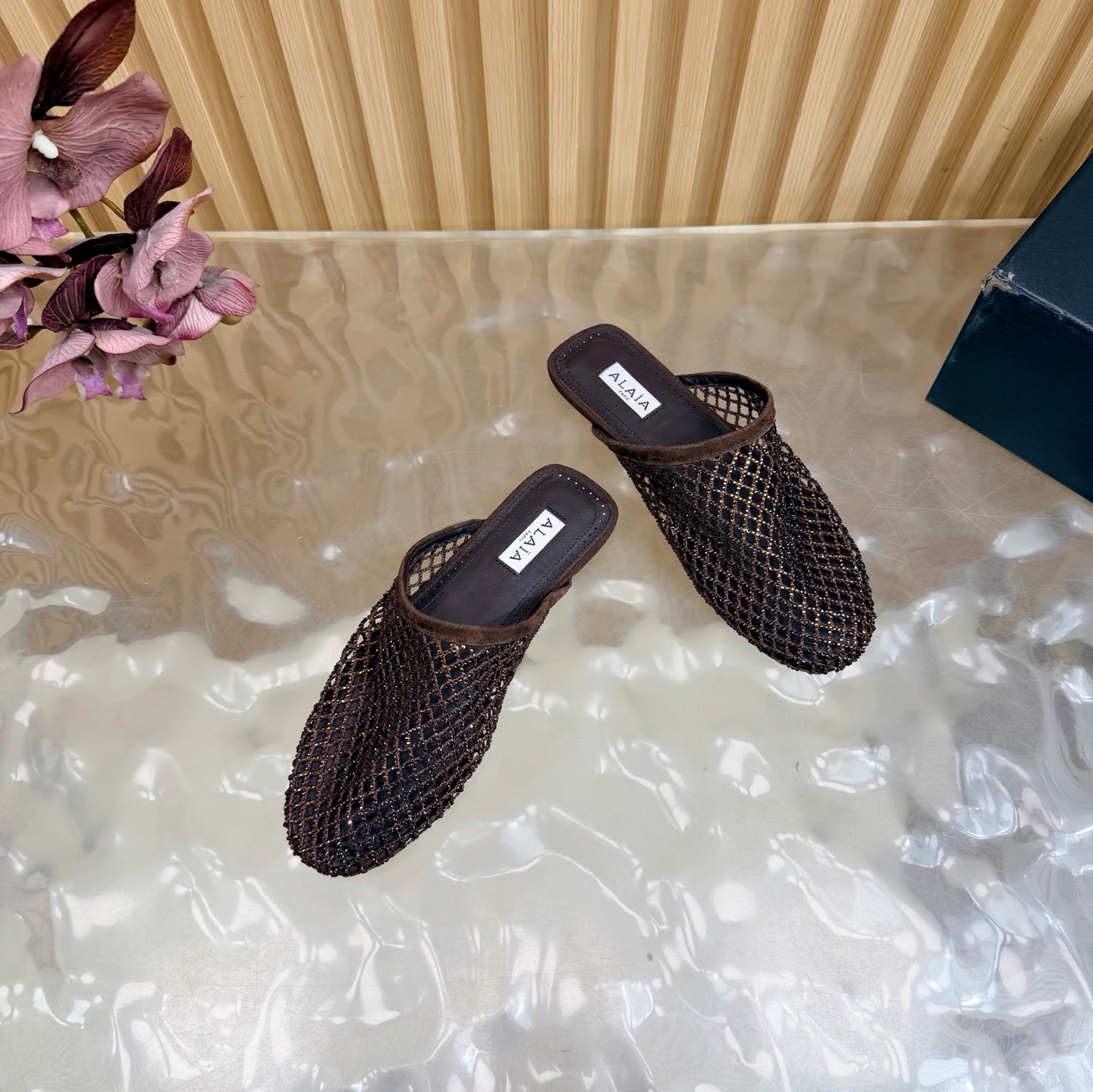 𝑨𝒍𝒂𝒊𝒂 Retro Mesh Rivet Laser-cut Slippers Size 35-43