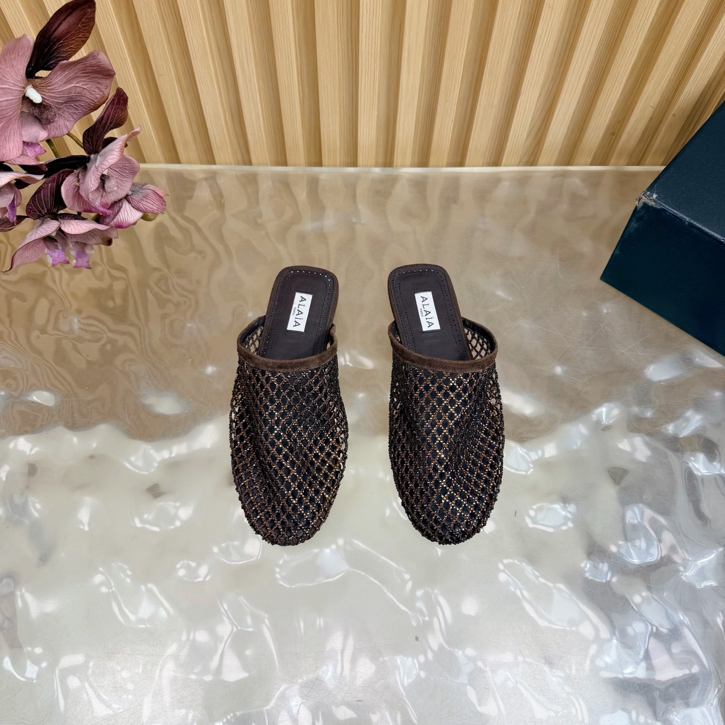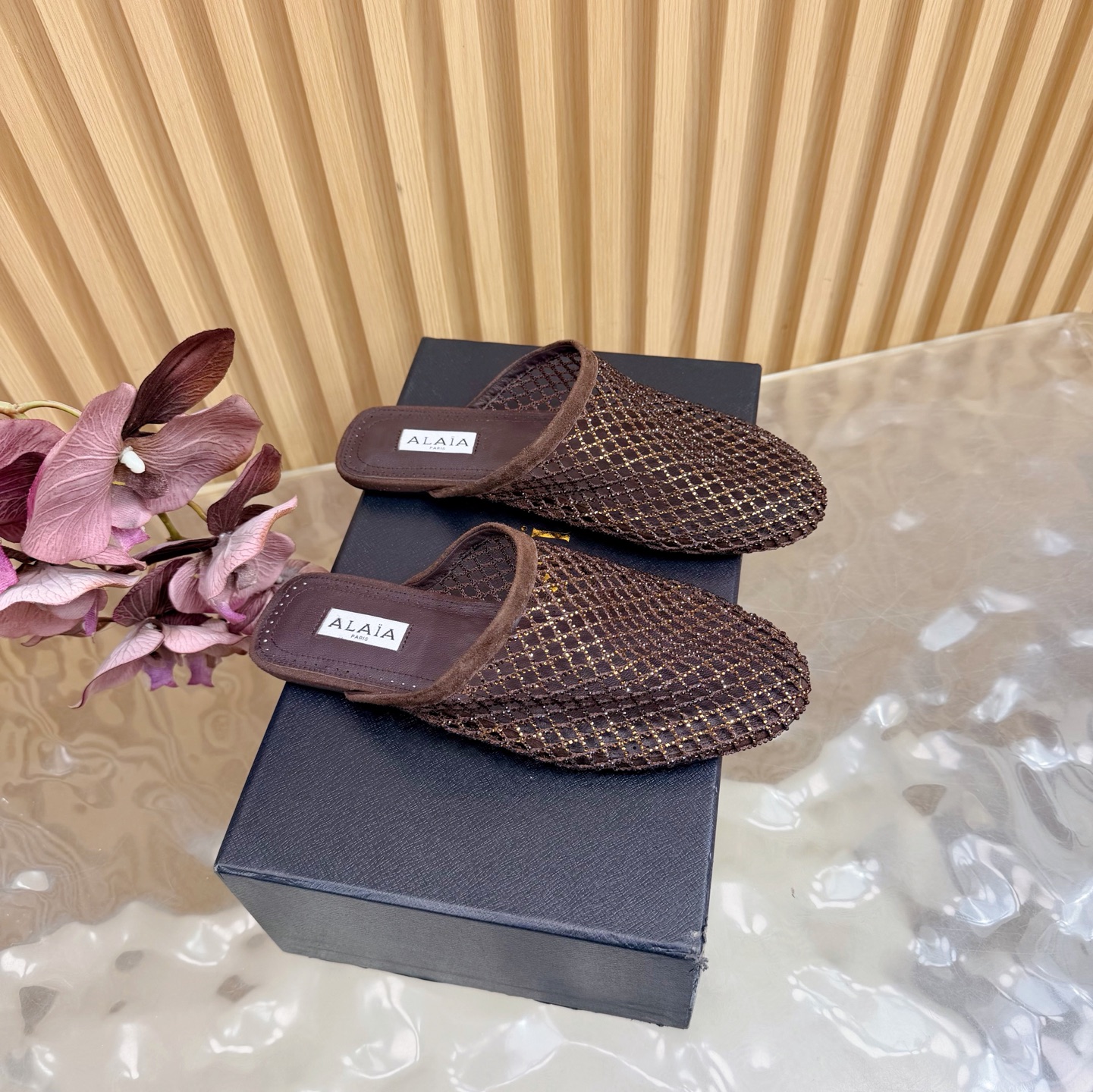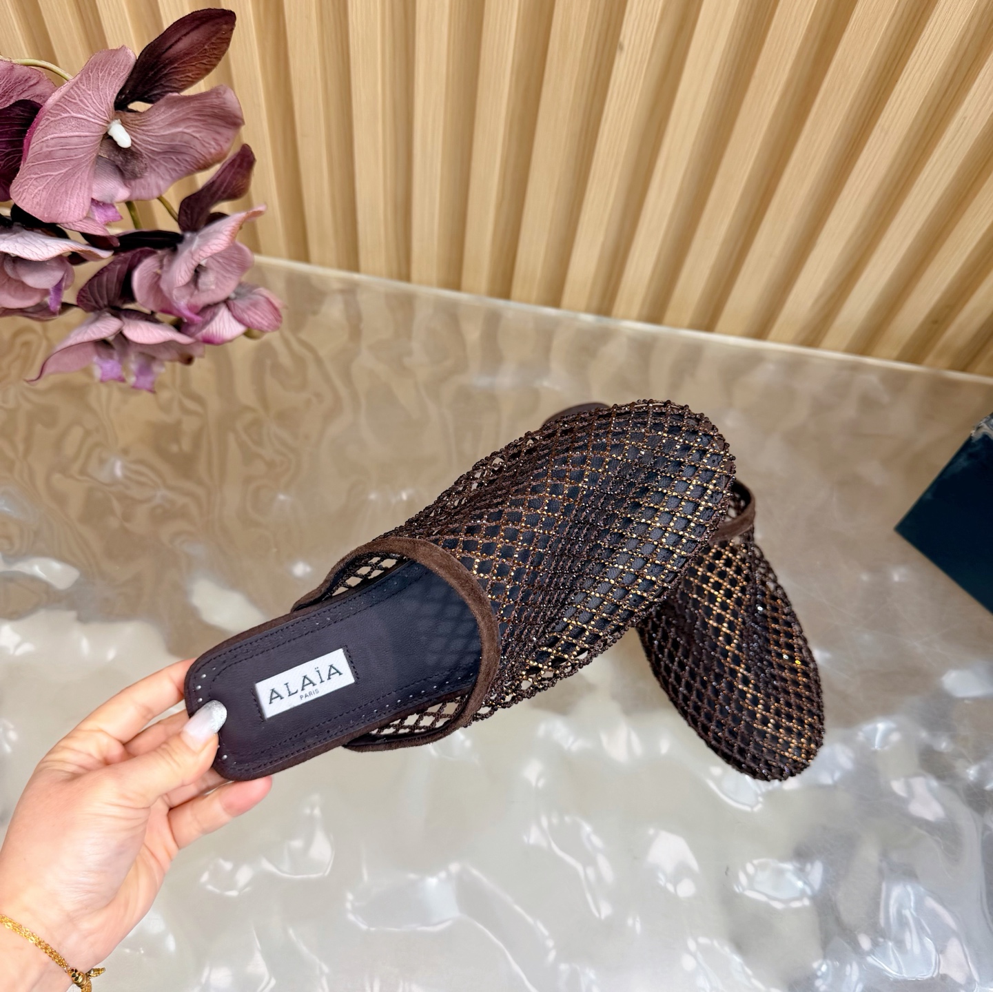 𝑨𝒍𝒂𝒊𝒂 Retro Mesh Rivet Laser-cut Slippers Size 35-43