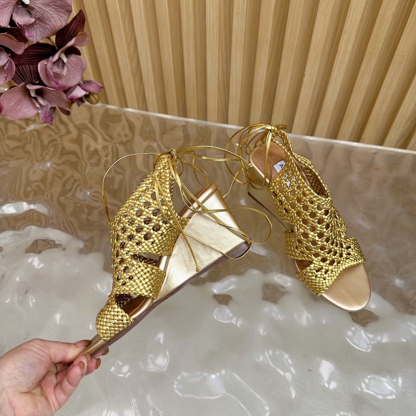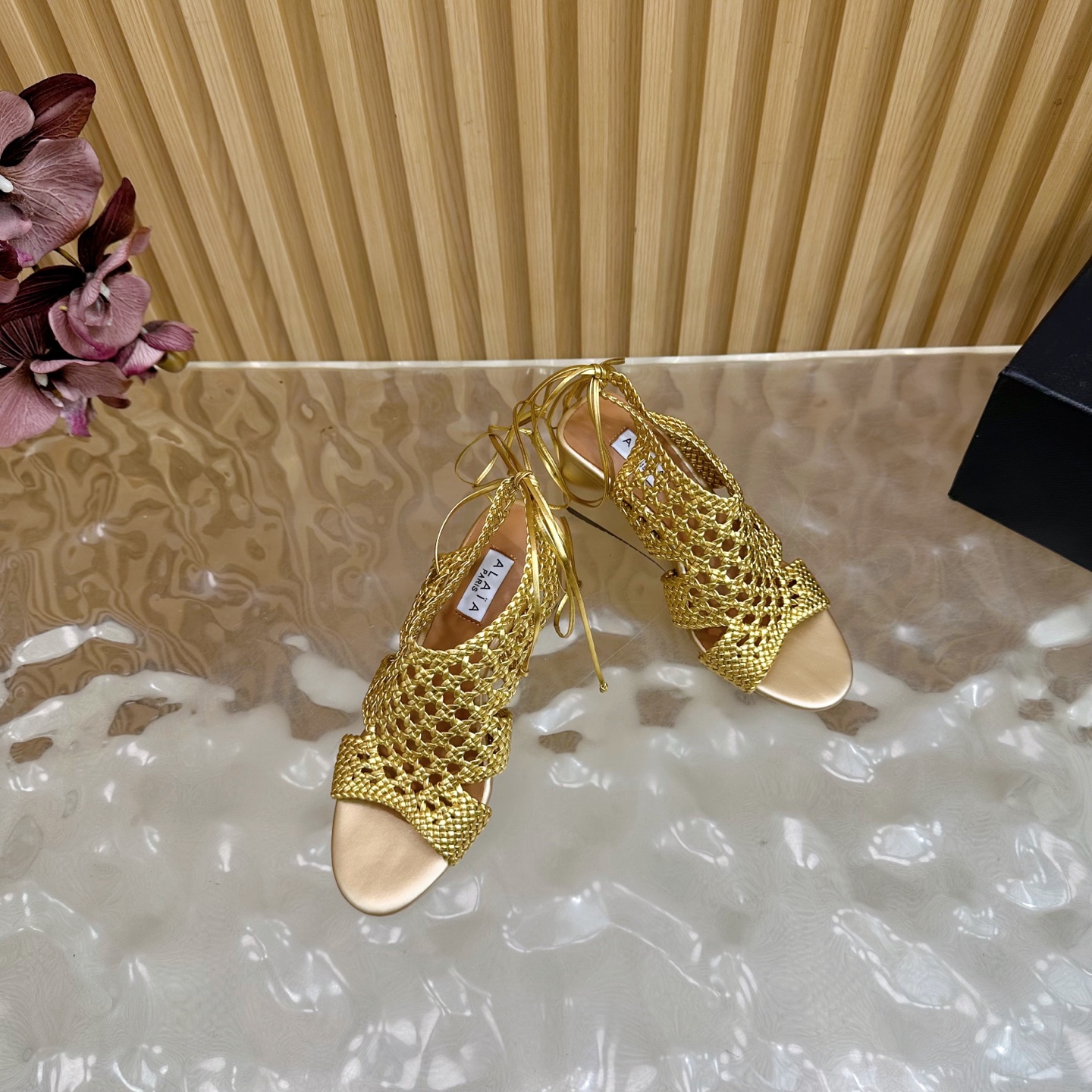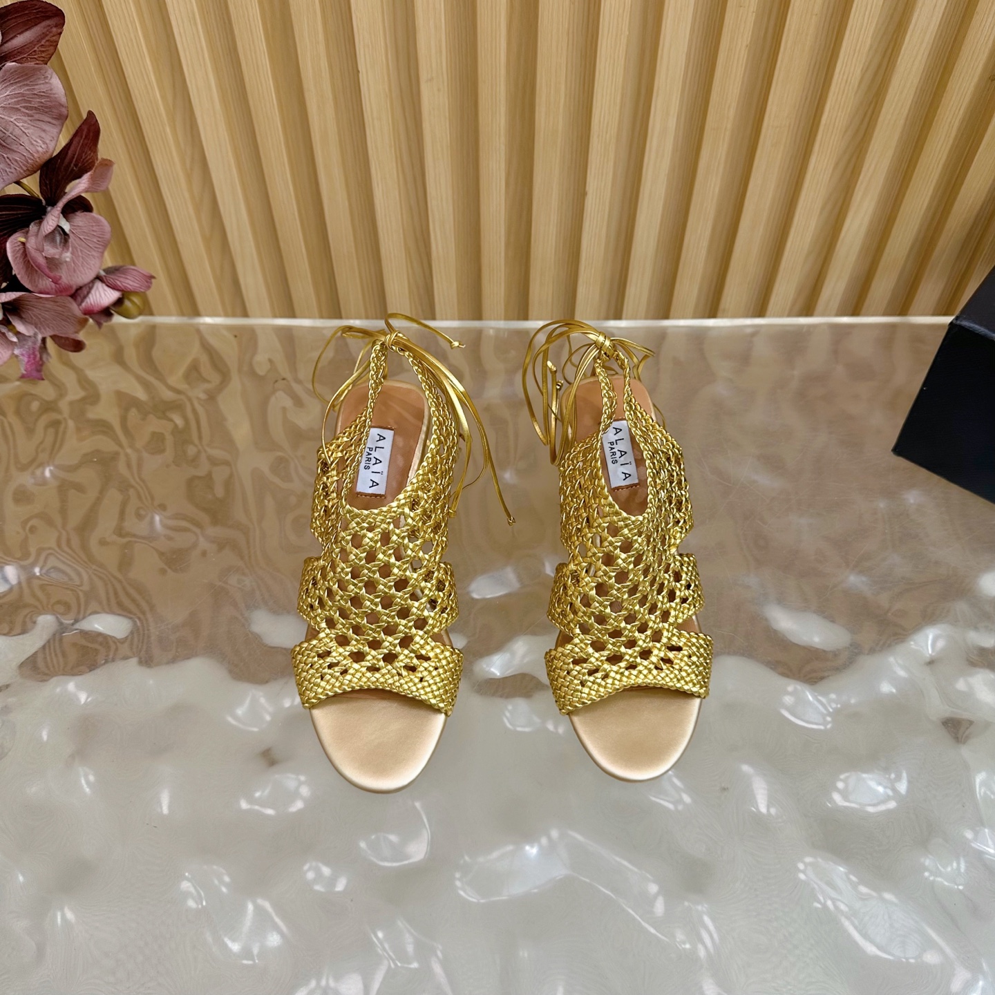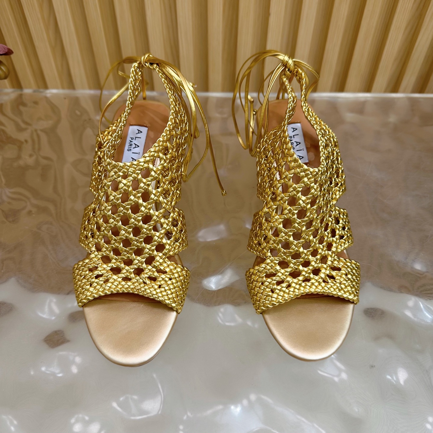 Alaia Women Hollowed-out Woven Lace-up Sandals Size 35-42