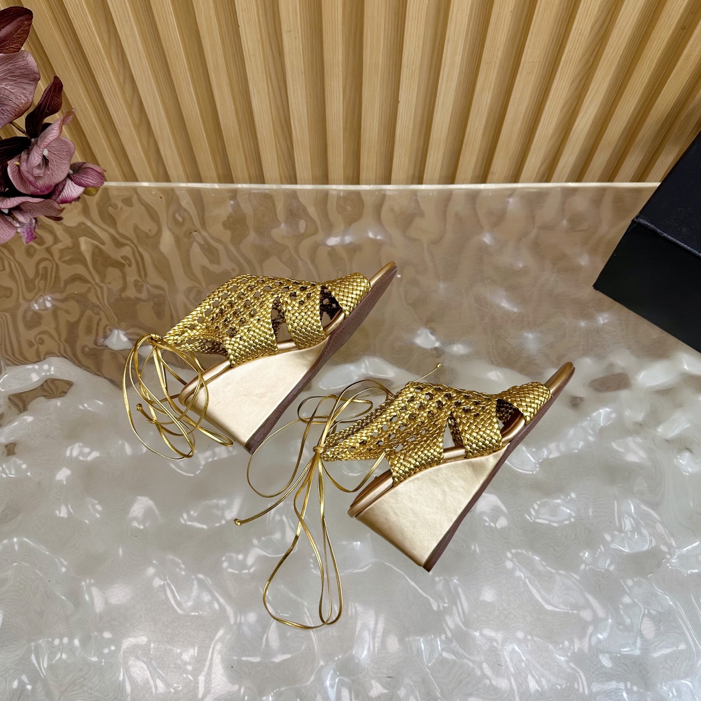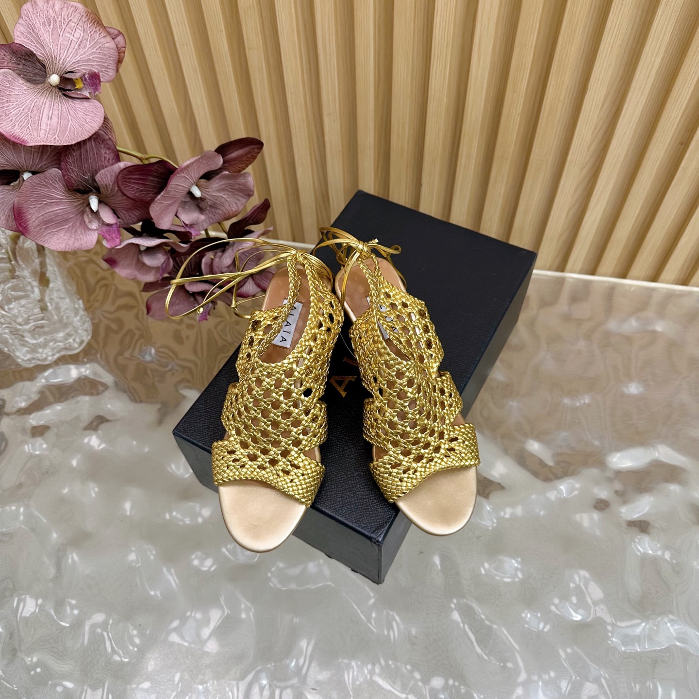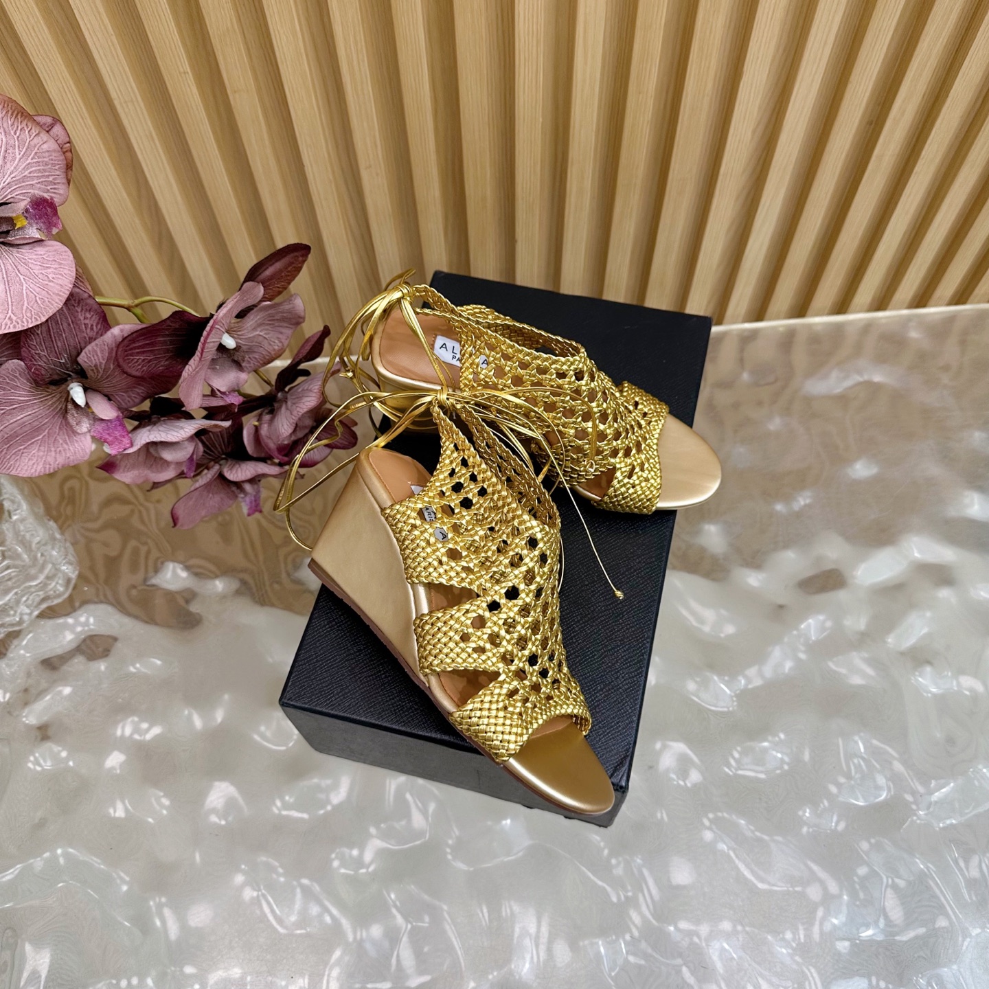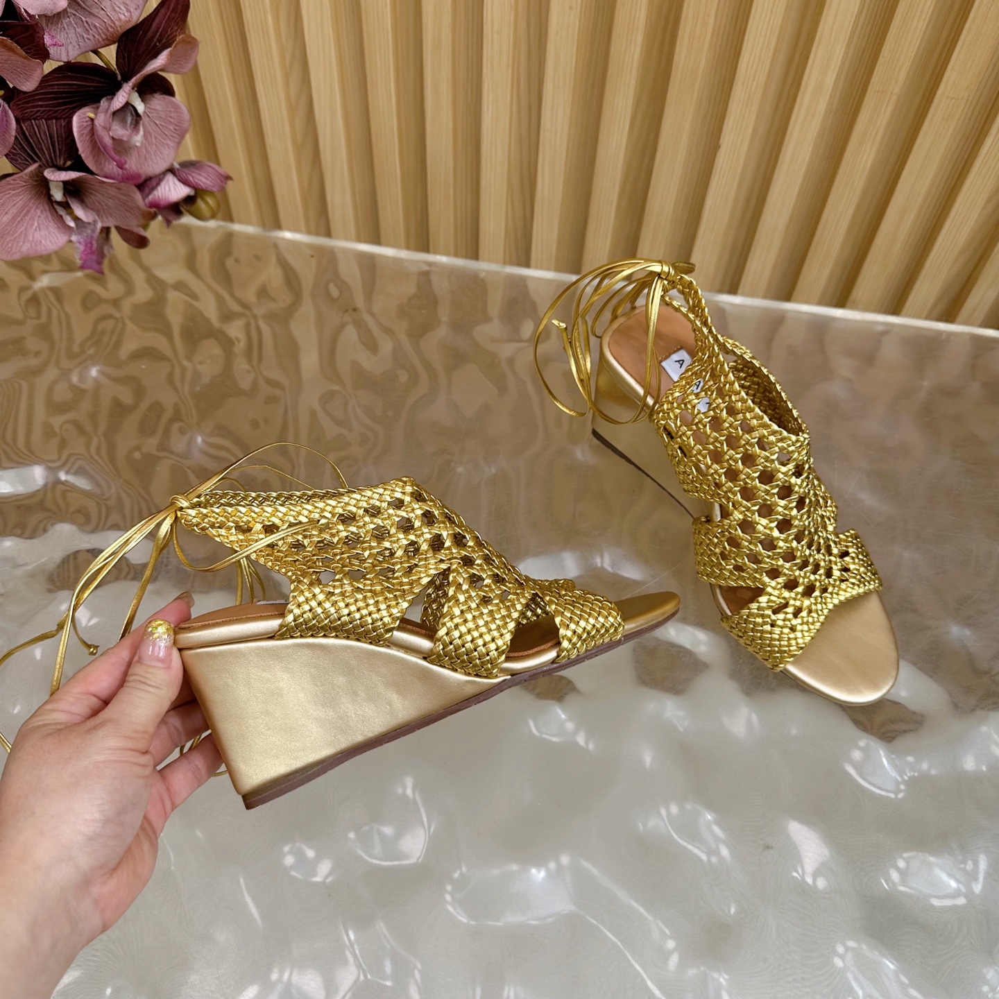 Alaia Women Hollowed-out Woven Lace-up Sandals Size 35-42