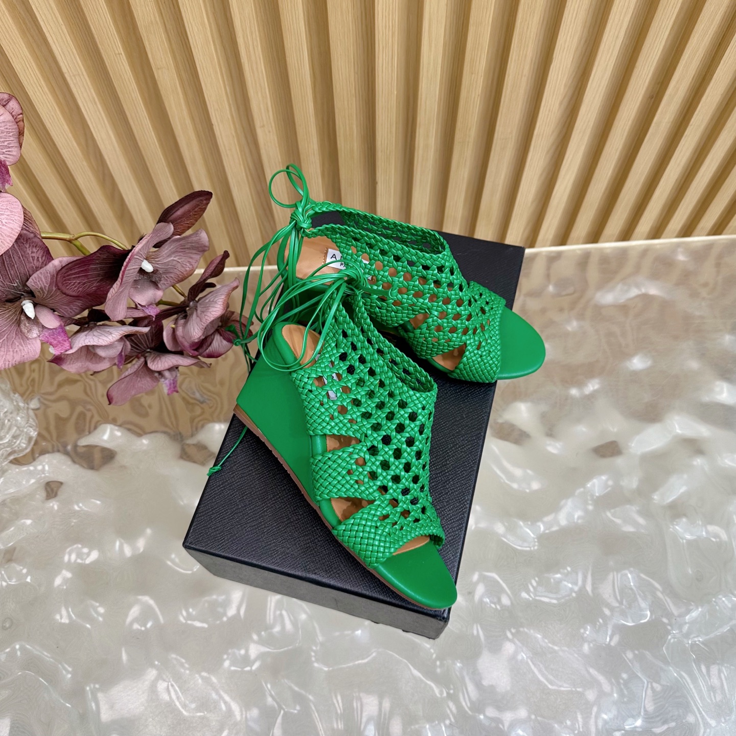 Alaia Women Hollowed-out Woven Lace-up Sandals Size 35-42