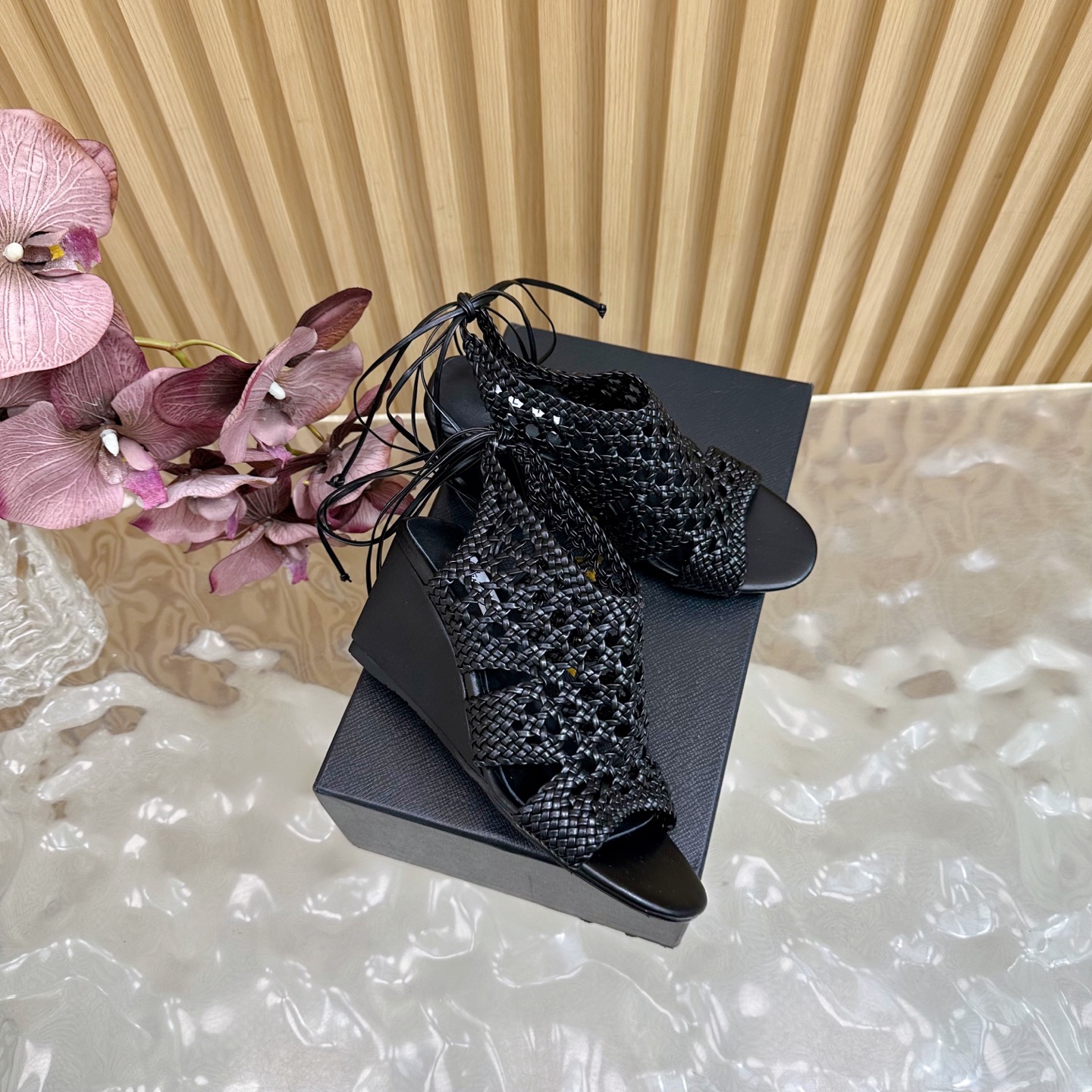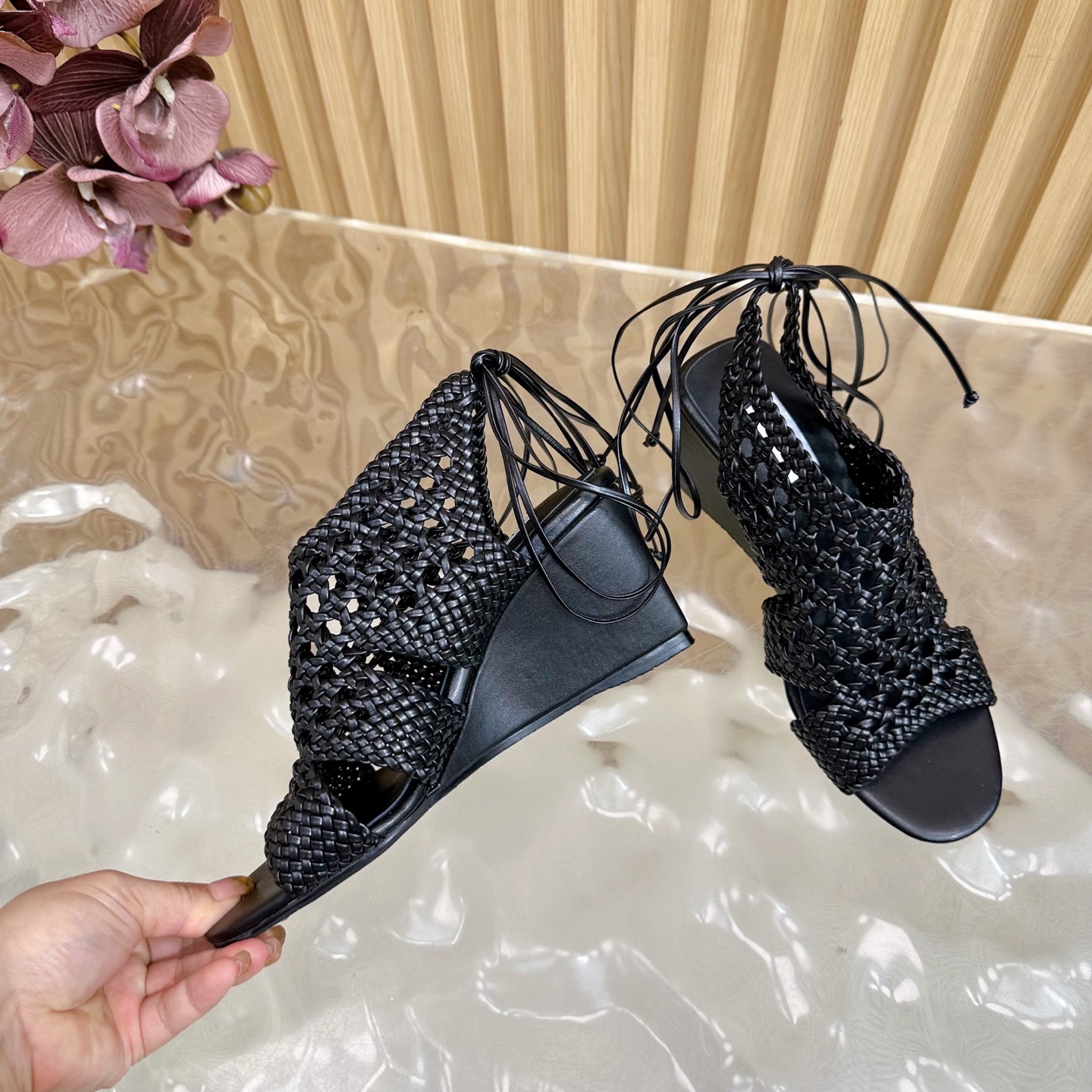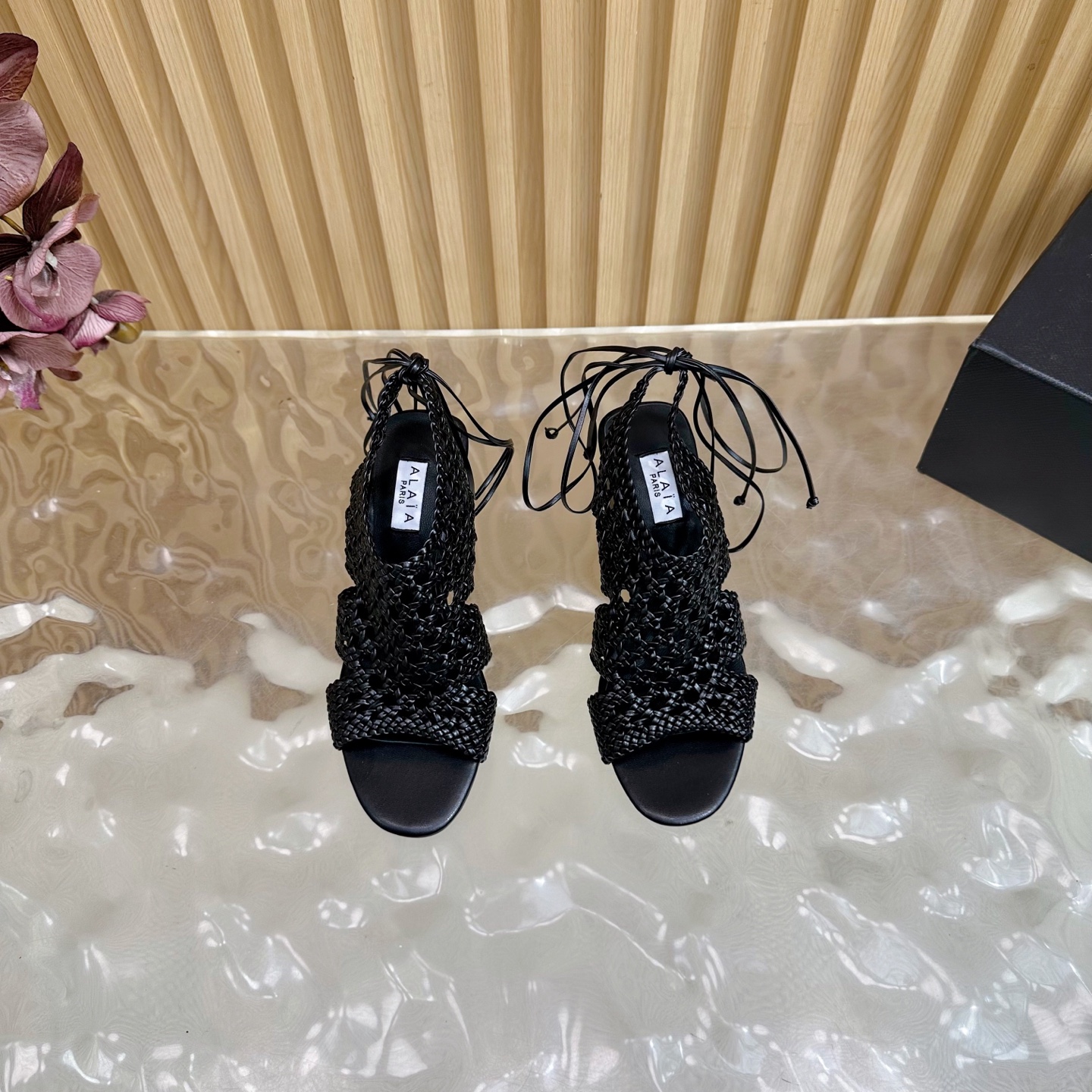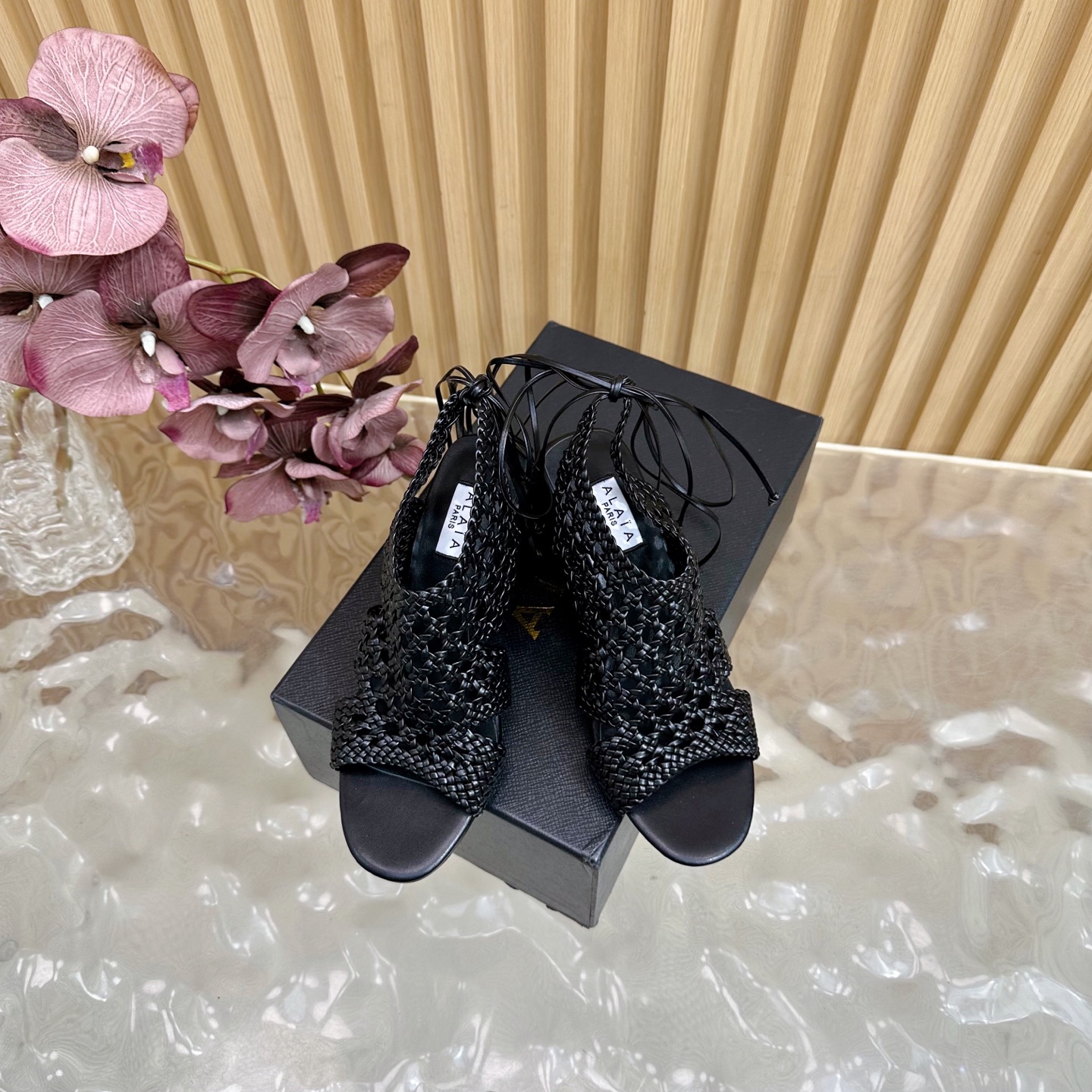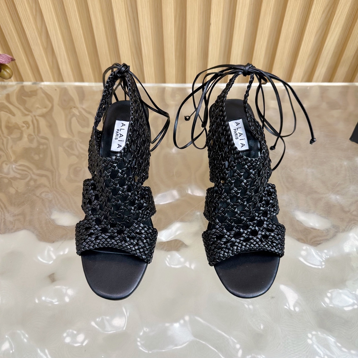 Alaia Women Hollowed-out Woven Lace-up Sandals Size 35-42