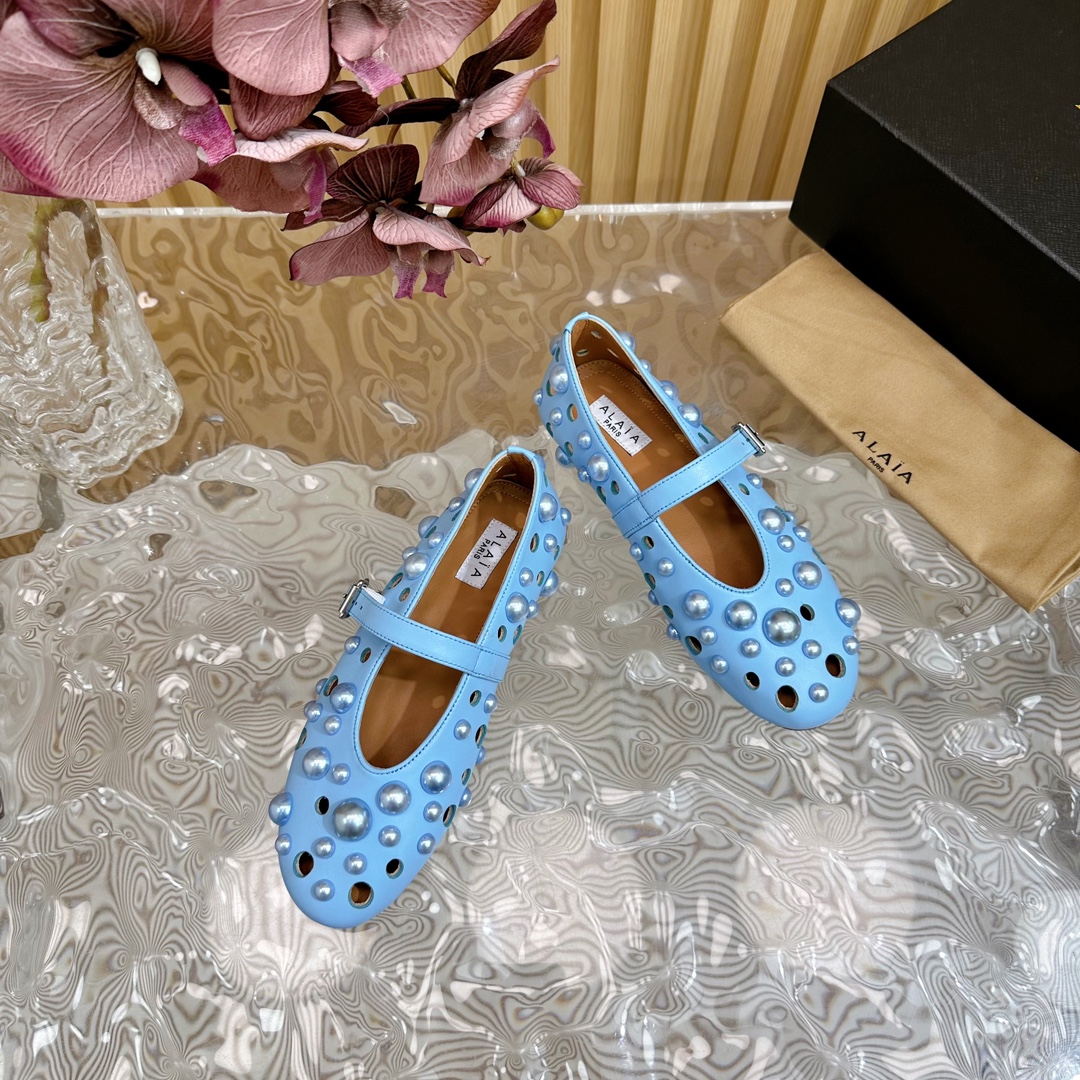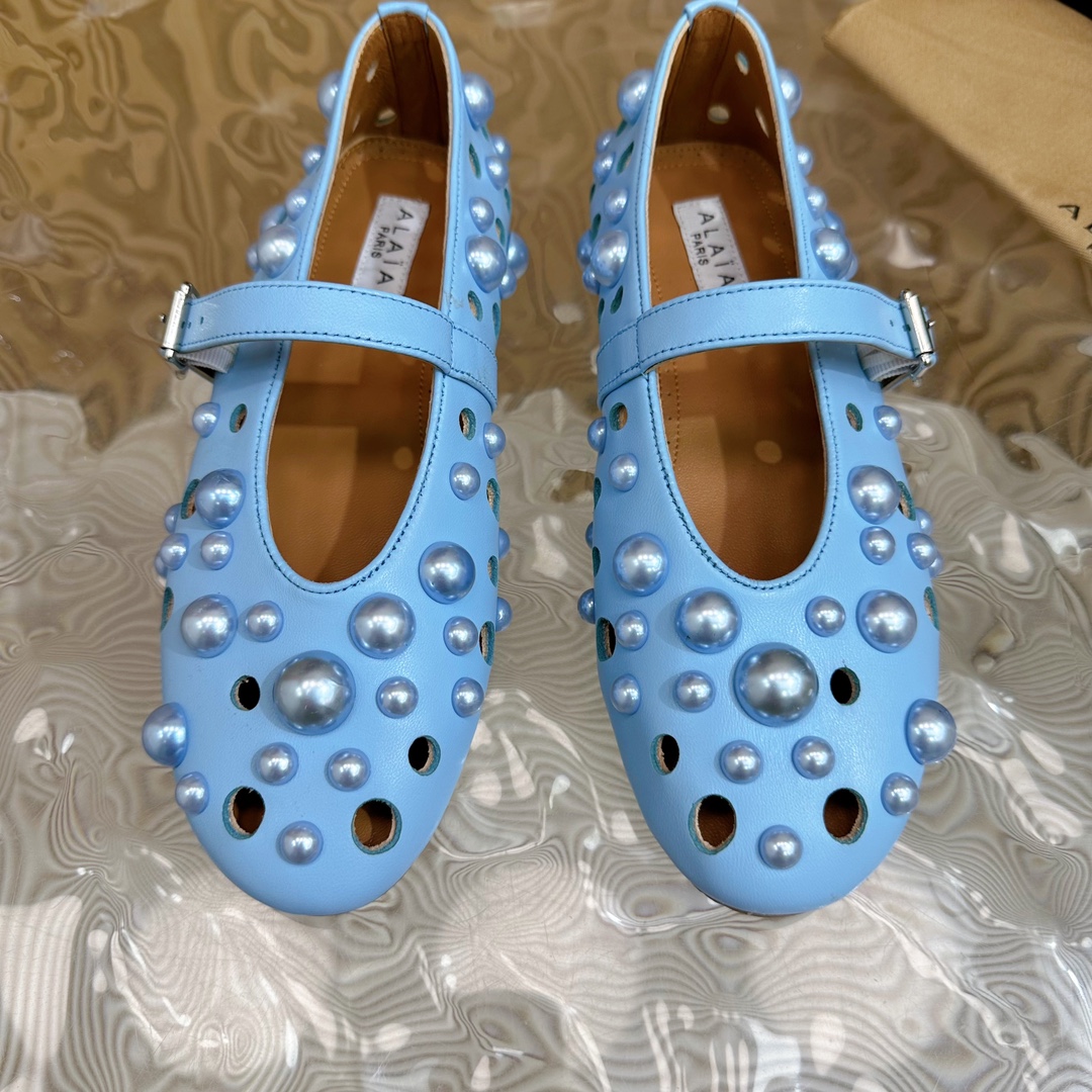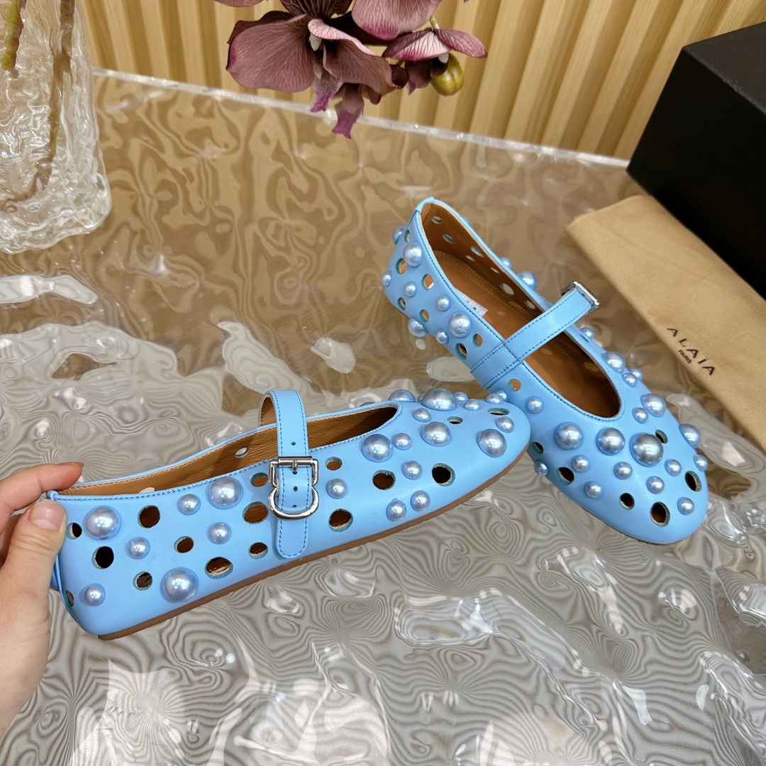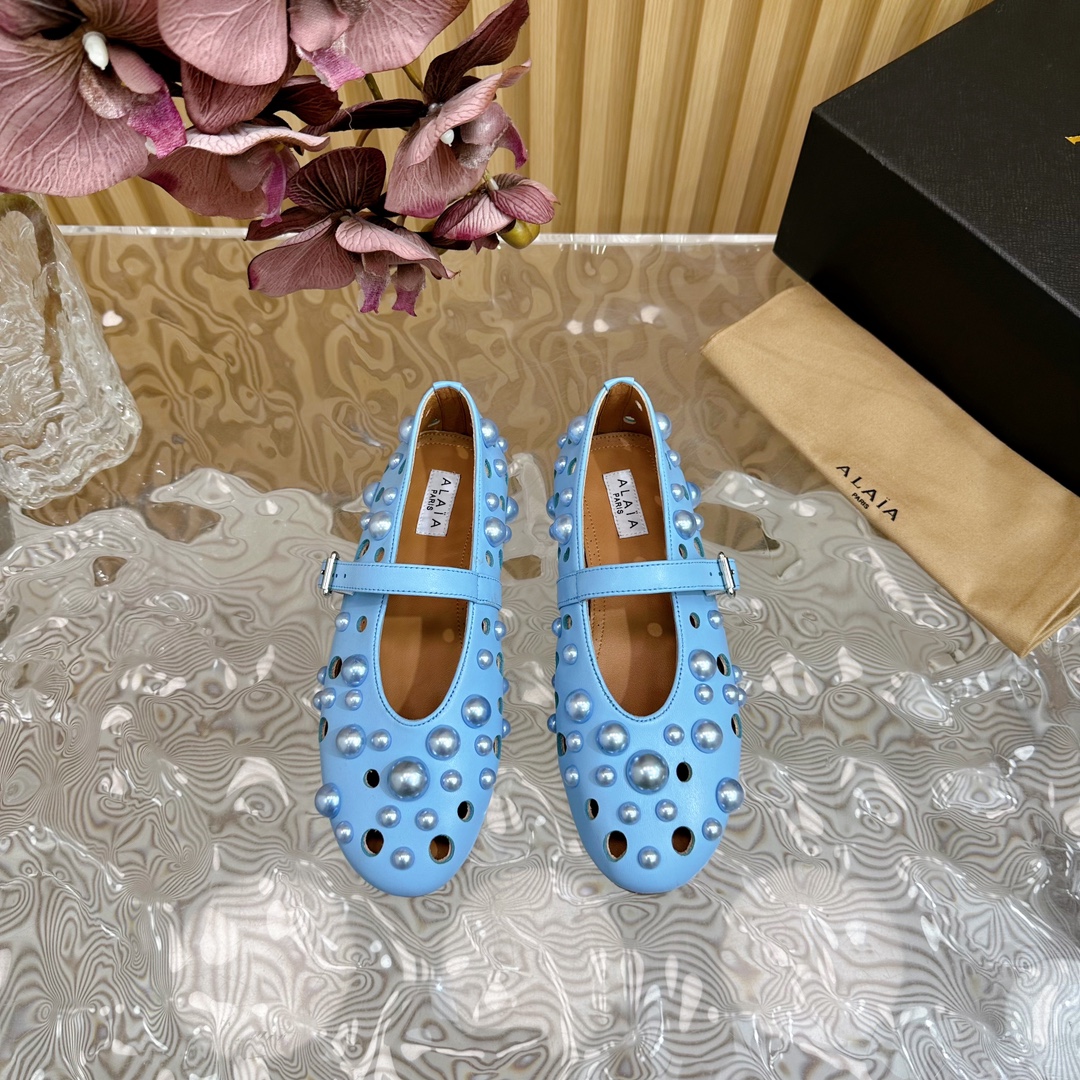 Alaia Women Leather Casual Outdoor Flats Size 35-41 (Blue)
