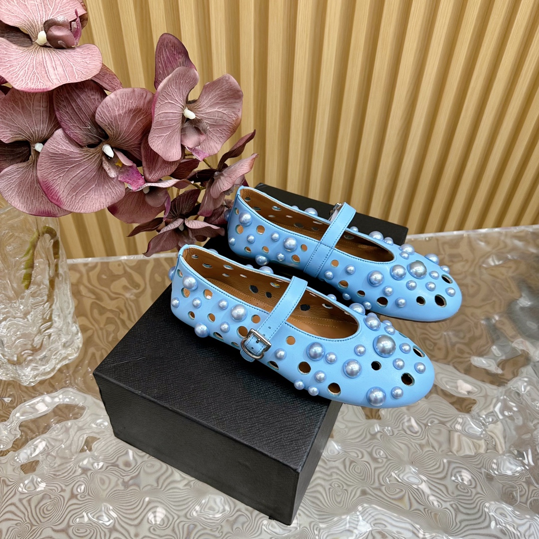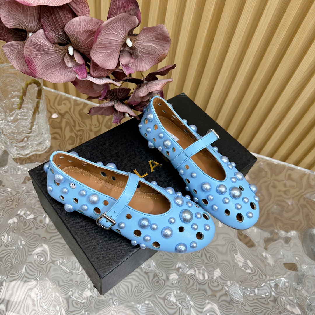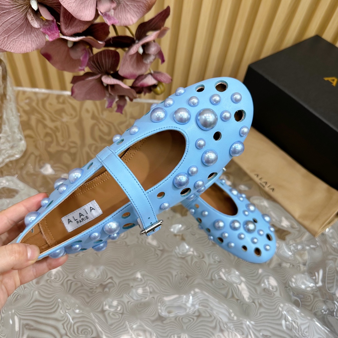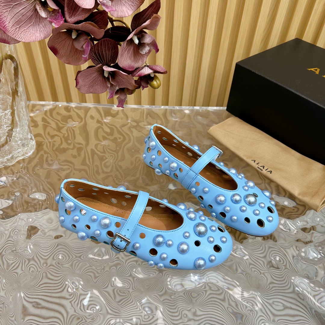 Alaia Women Leather Casual Outdoor Flats Size 35-41 (Blue)