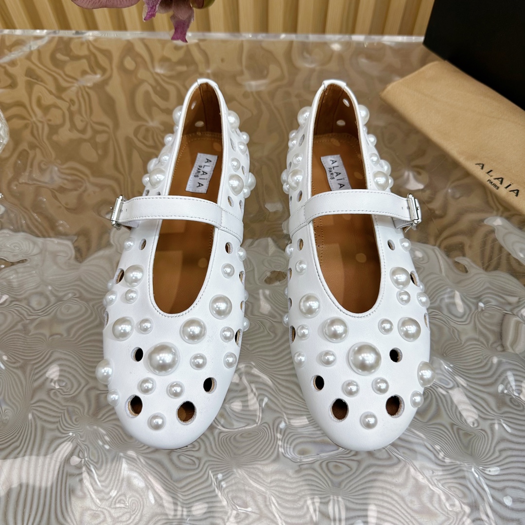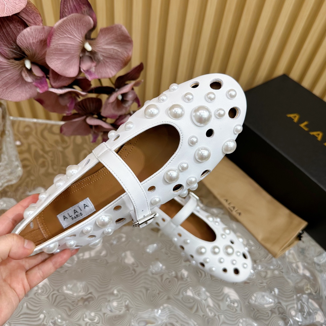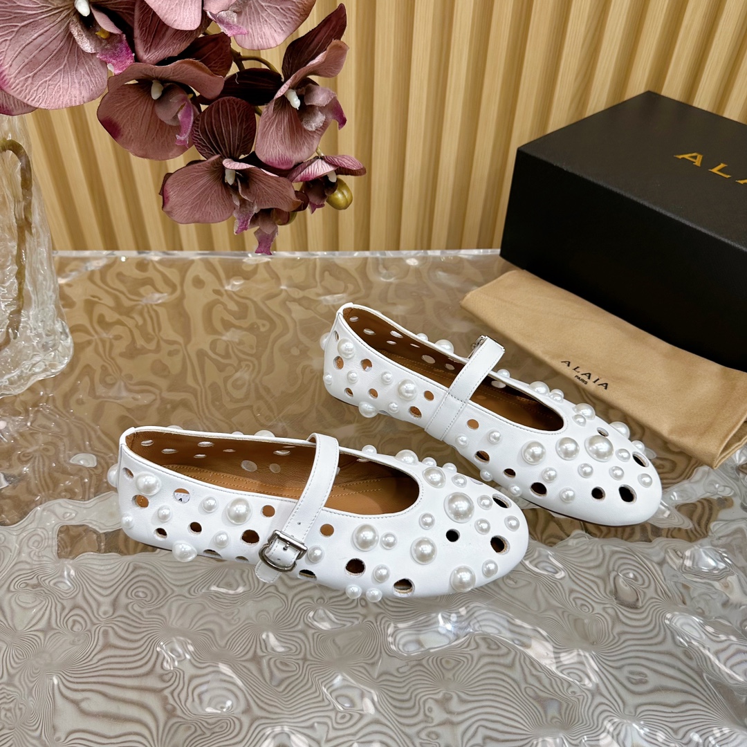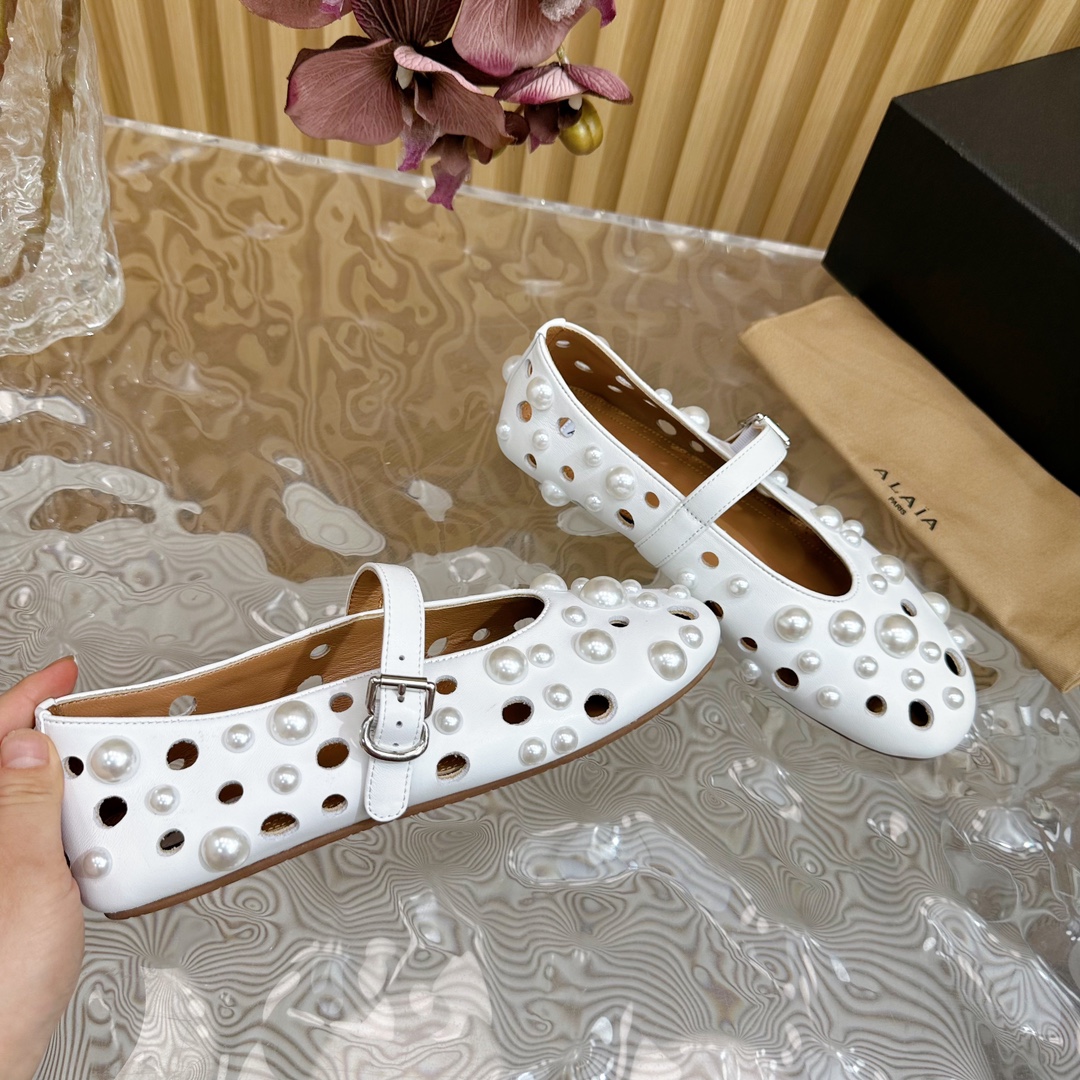ALAIA Fashion Metal Ballet Flats Size 35-41 White