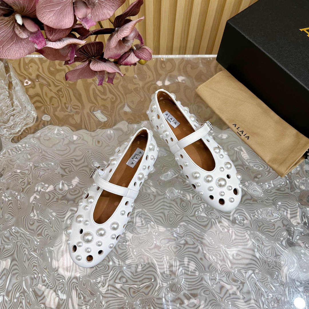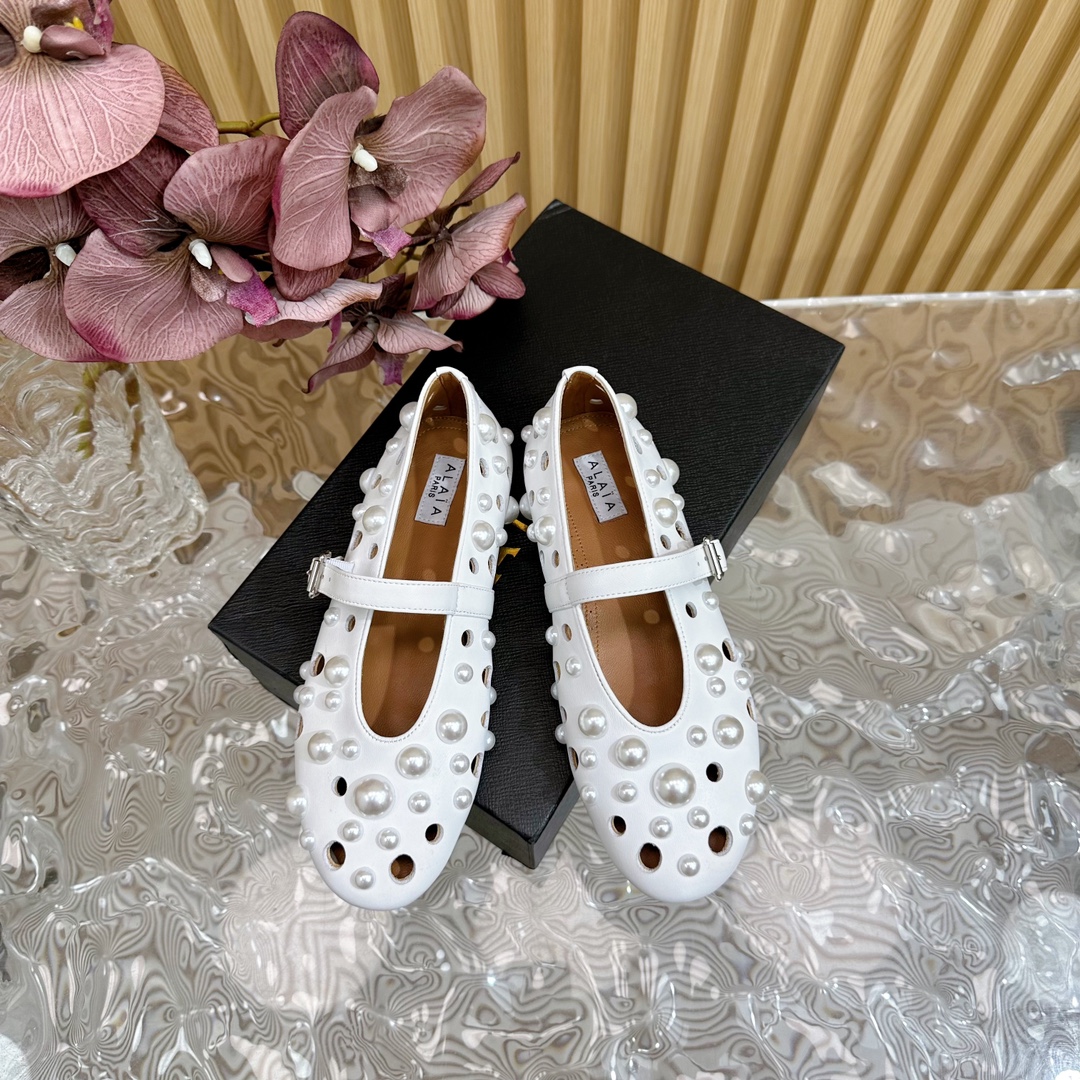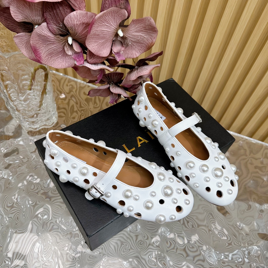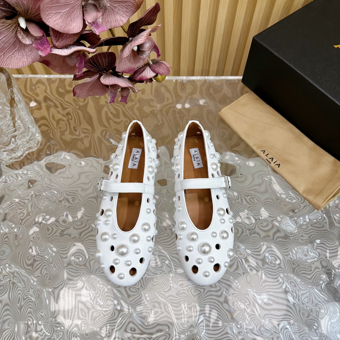 ALAIA Fashion Metal Ballet Flats Size 35-41 White