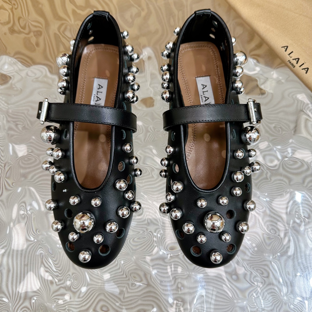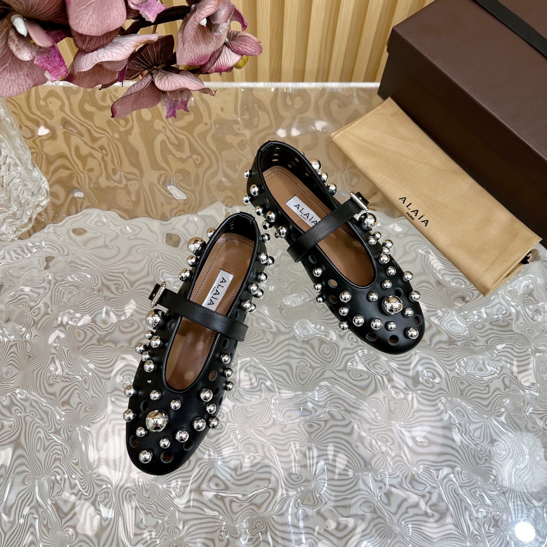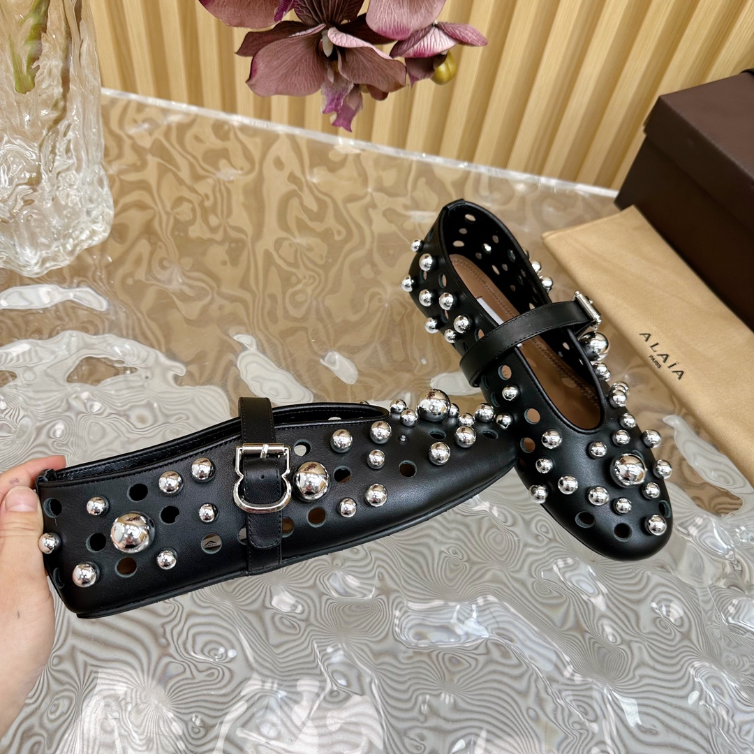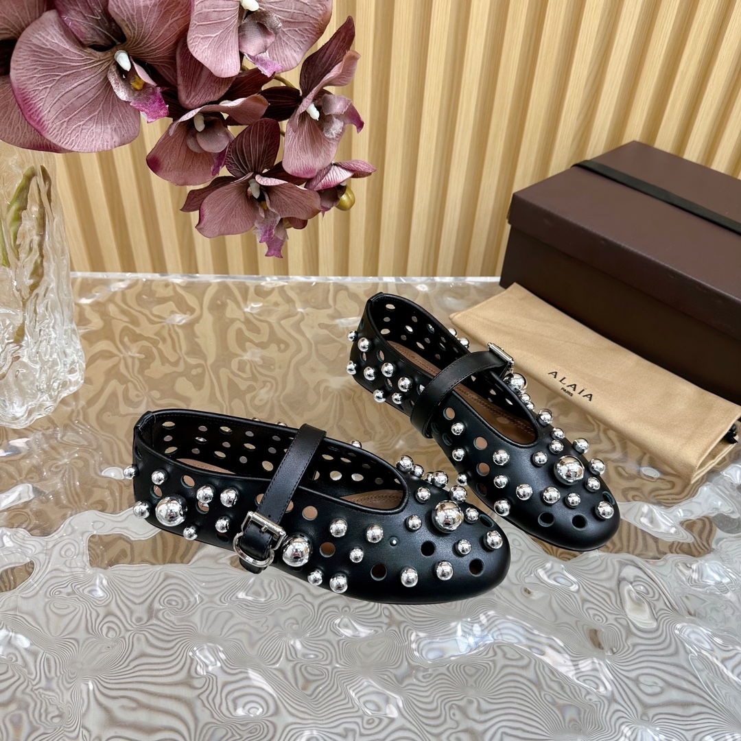Alaia Women Leather Casual Outdoor Flats Size 35-42 (Black)