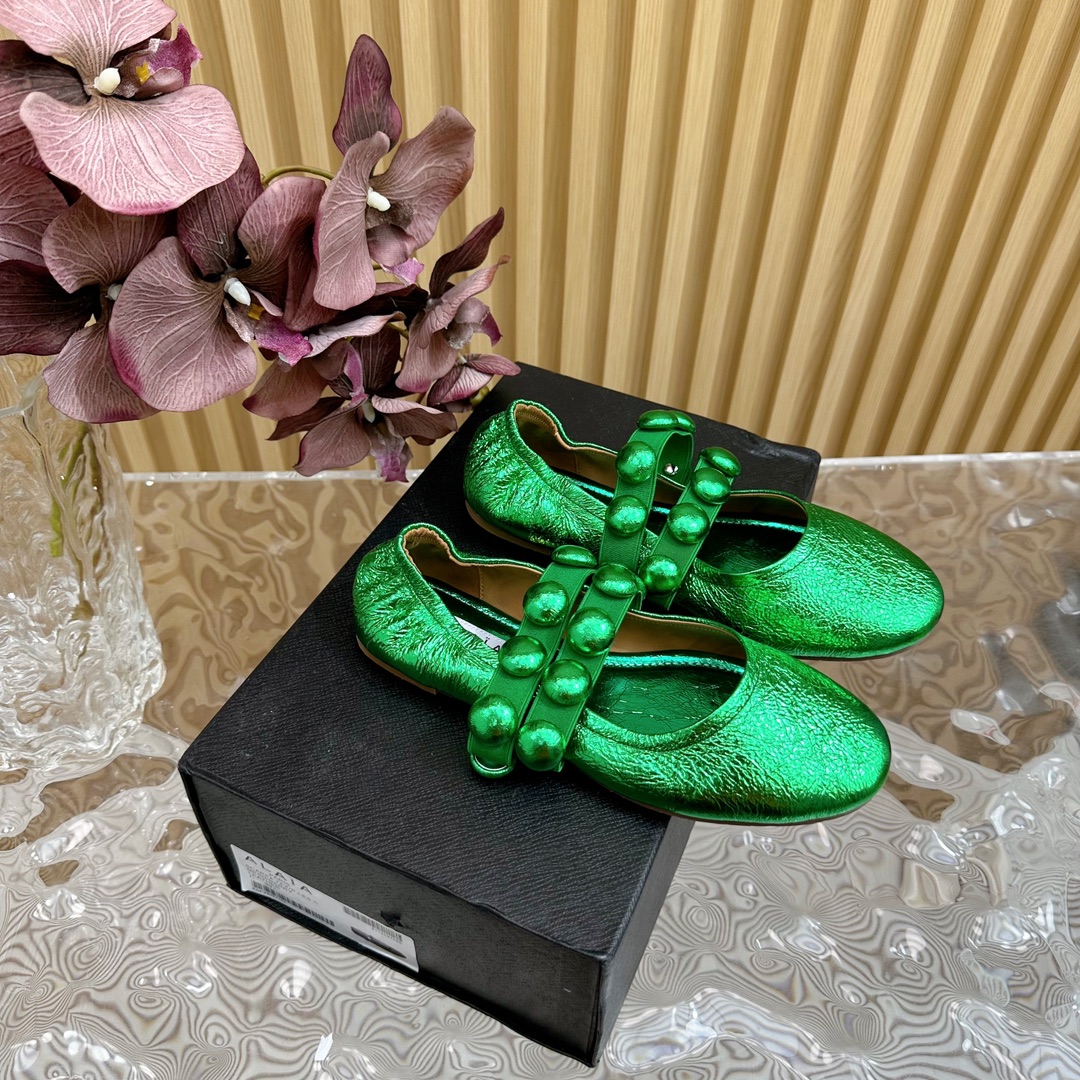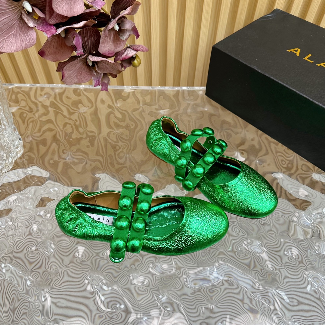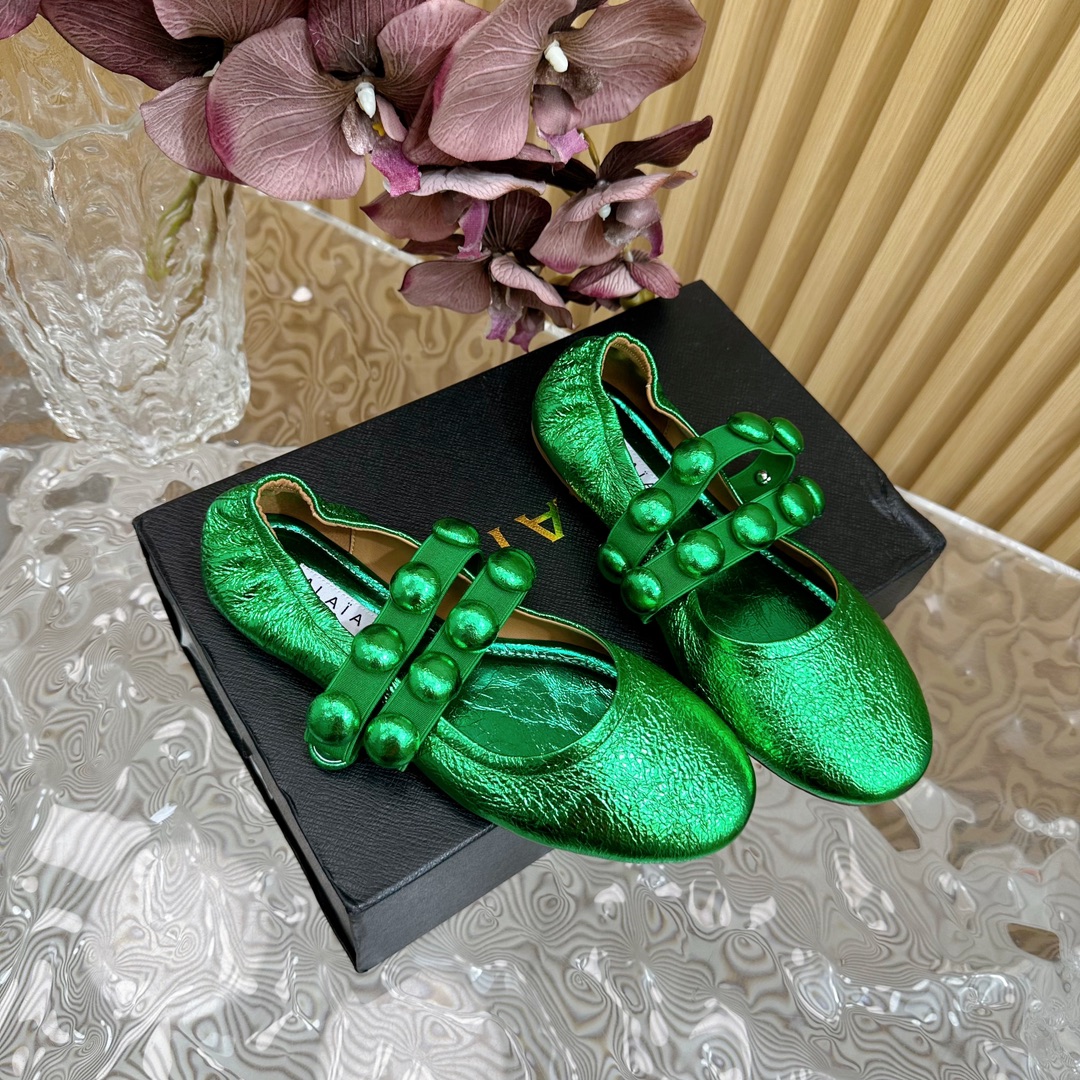 Alaia Women Leather Comfort Ballet Shoes Size 35-42(Green)