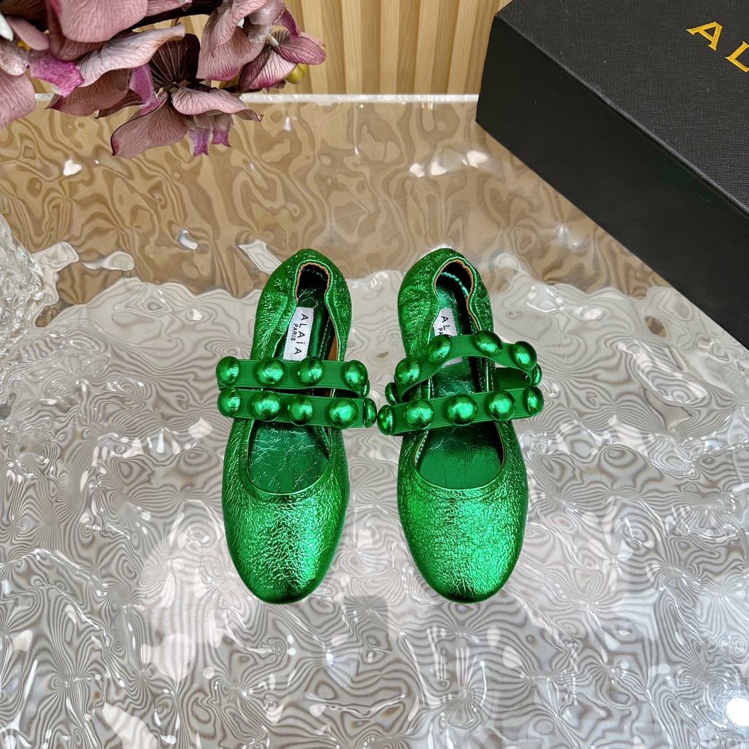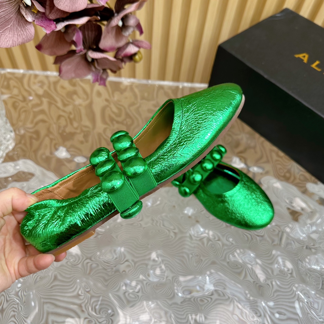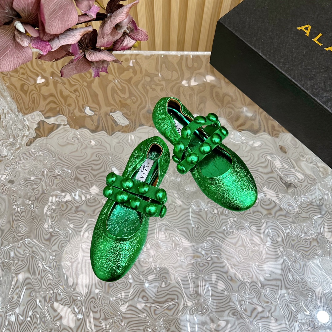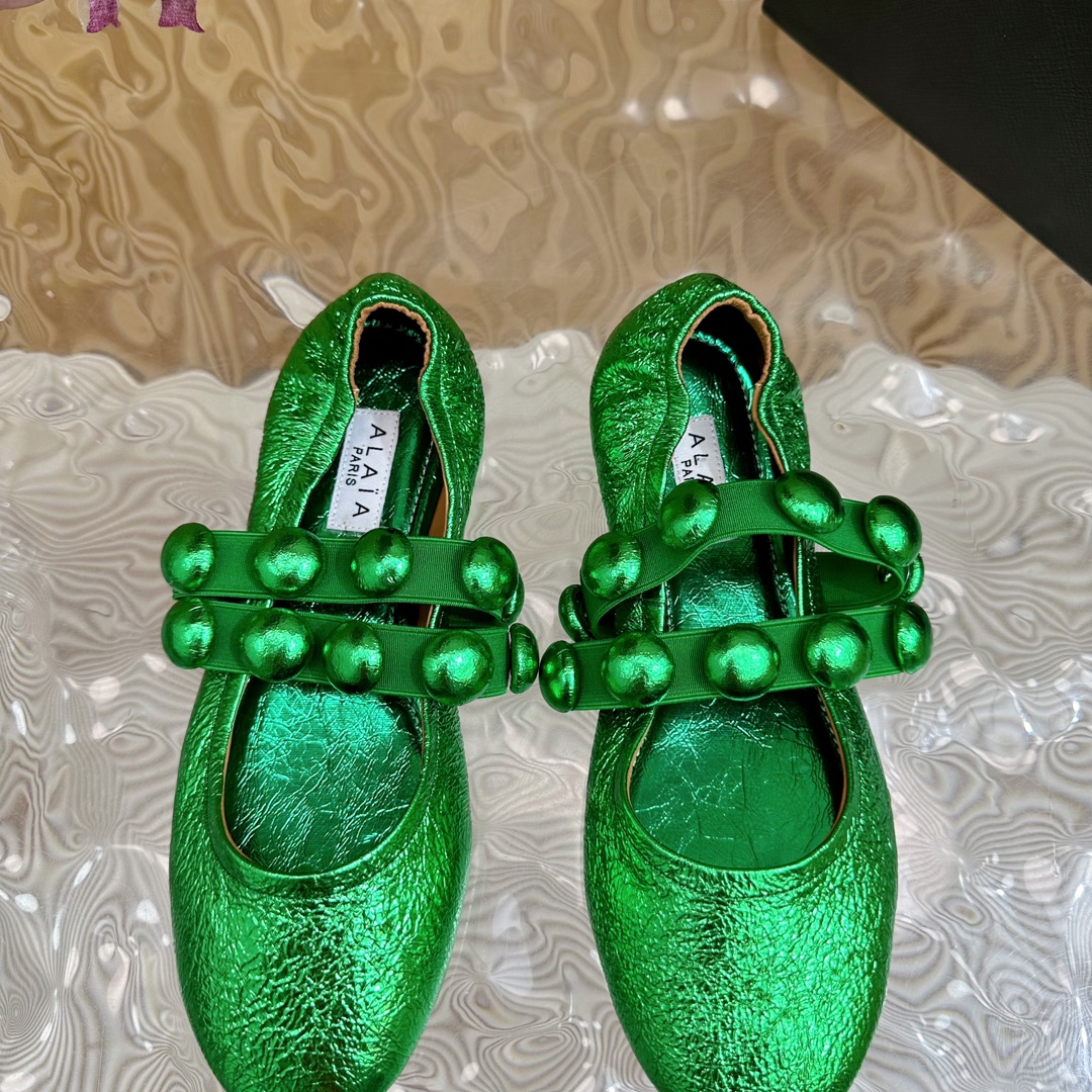 Alaia Women Leather Comfort Ballet Shoes Size 35-42(Green)