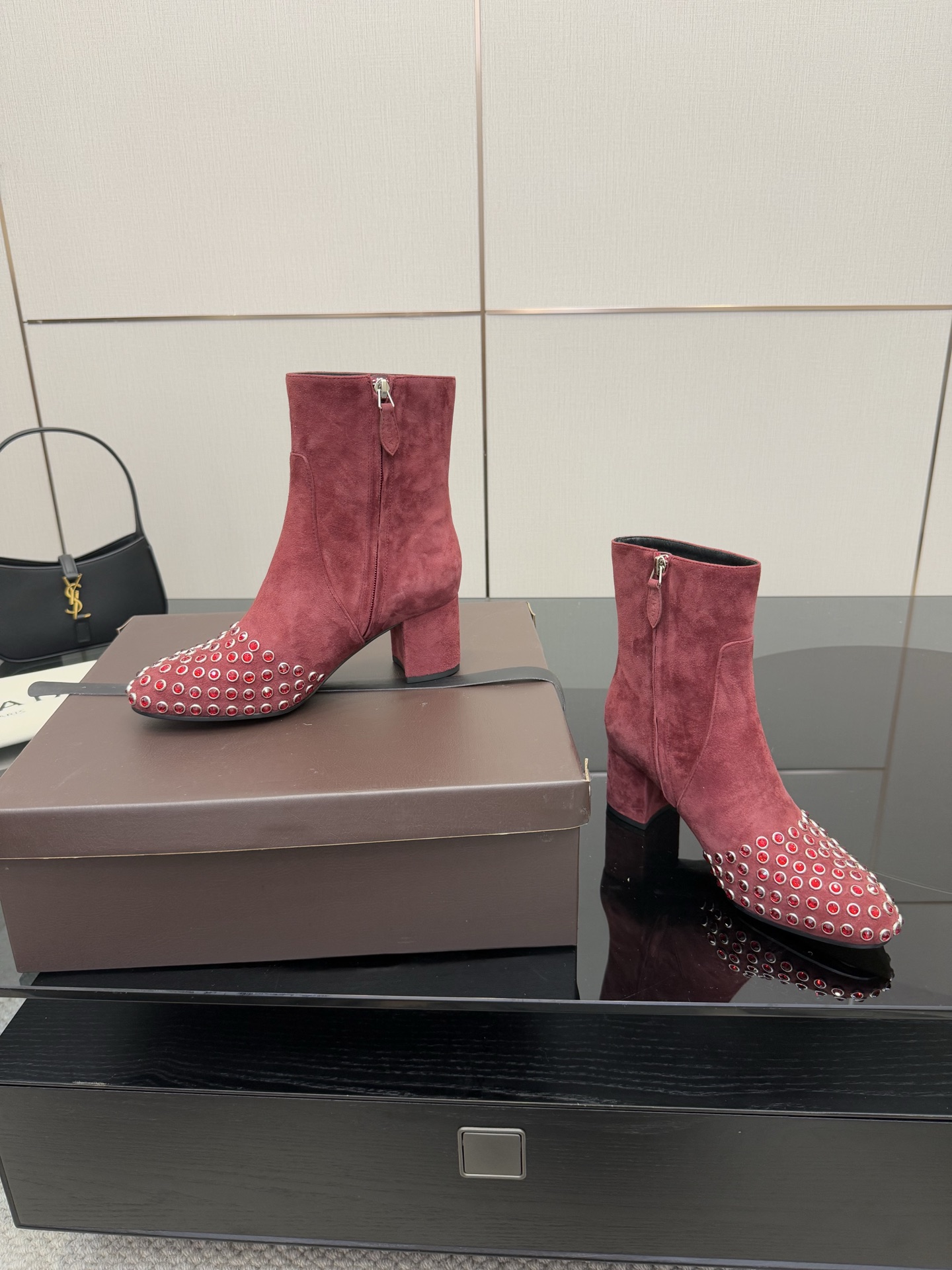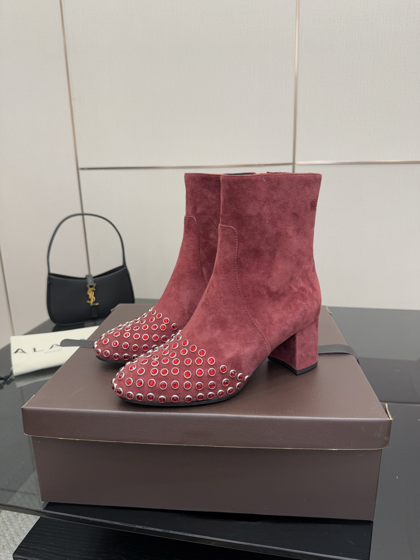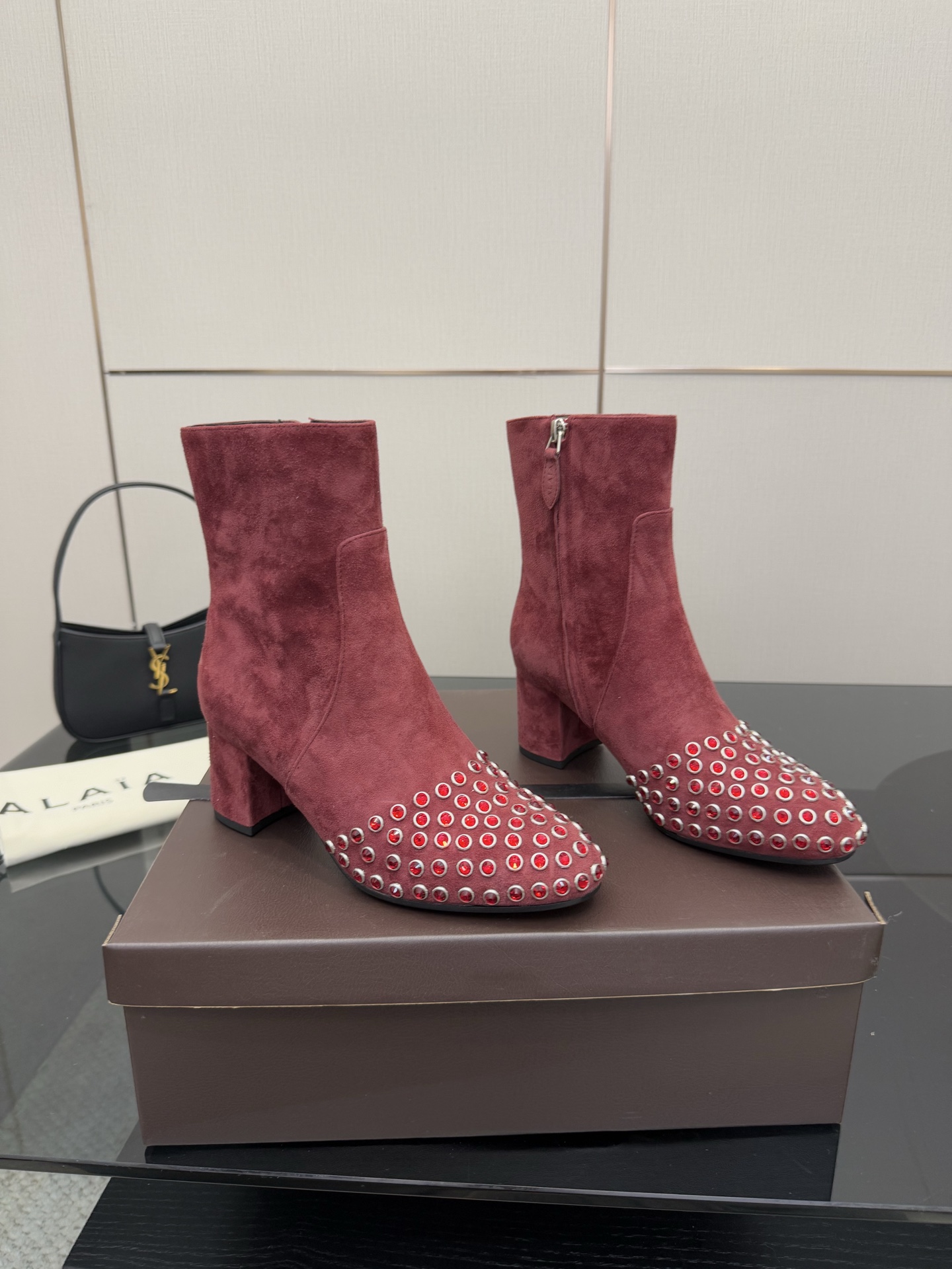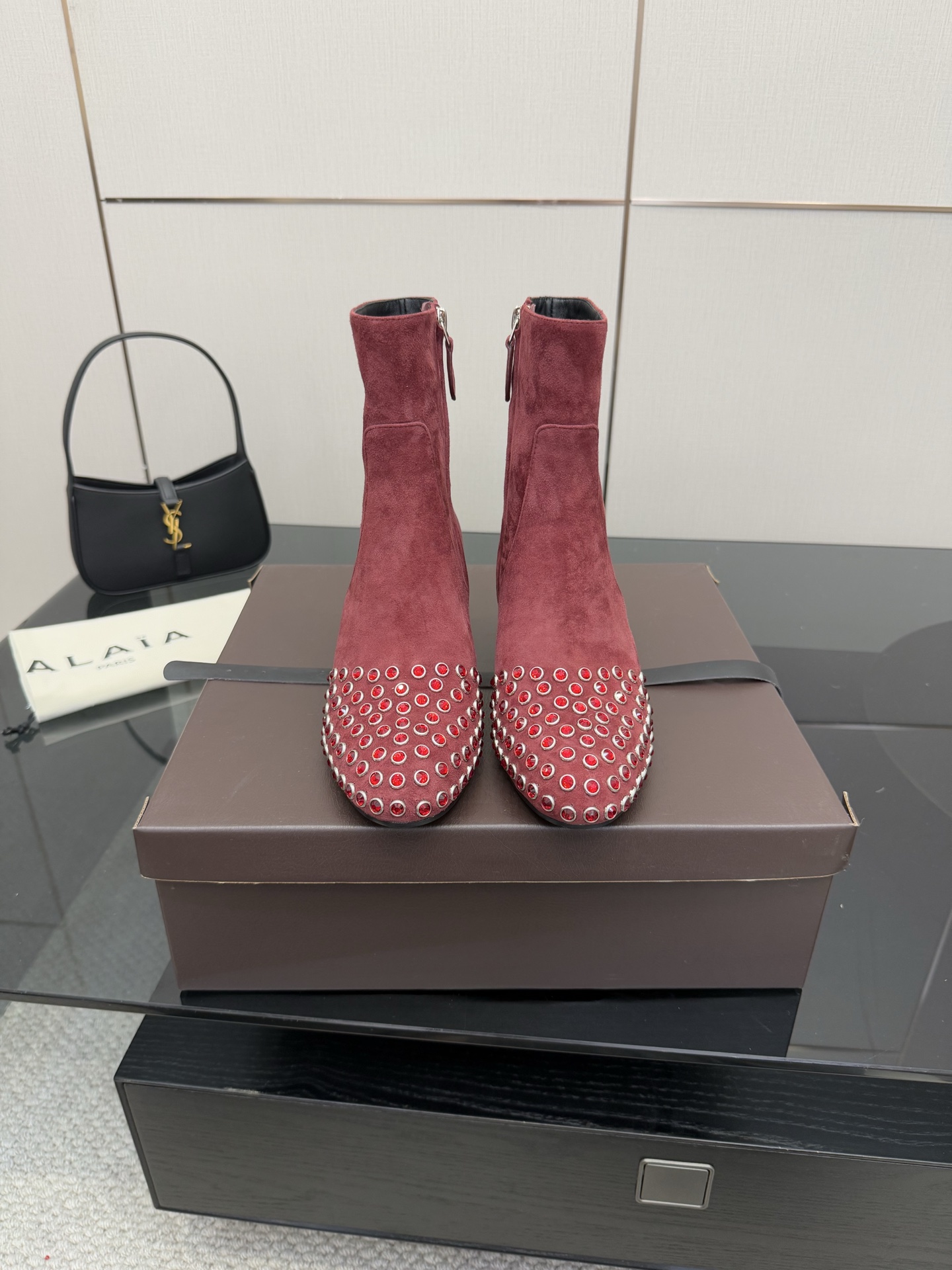 alaia Women Leather Crystal Ankle Boots Size 35-41