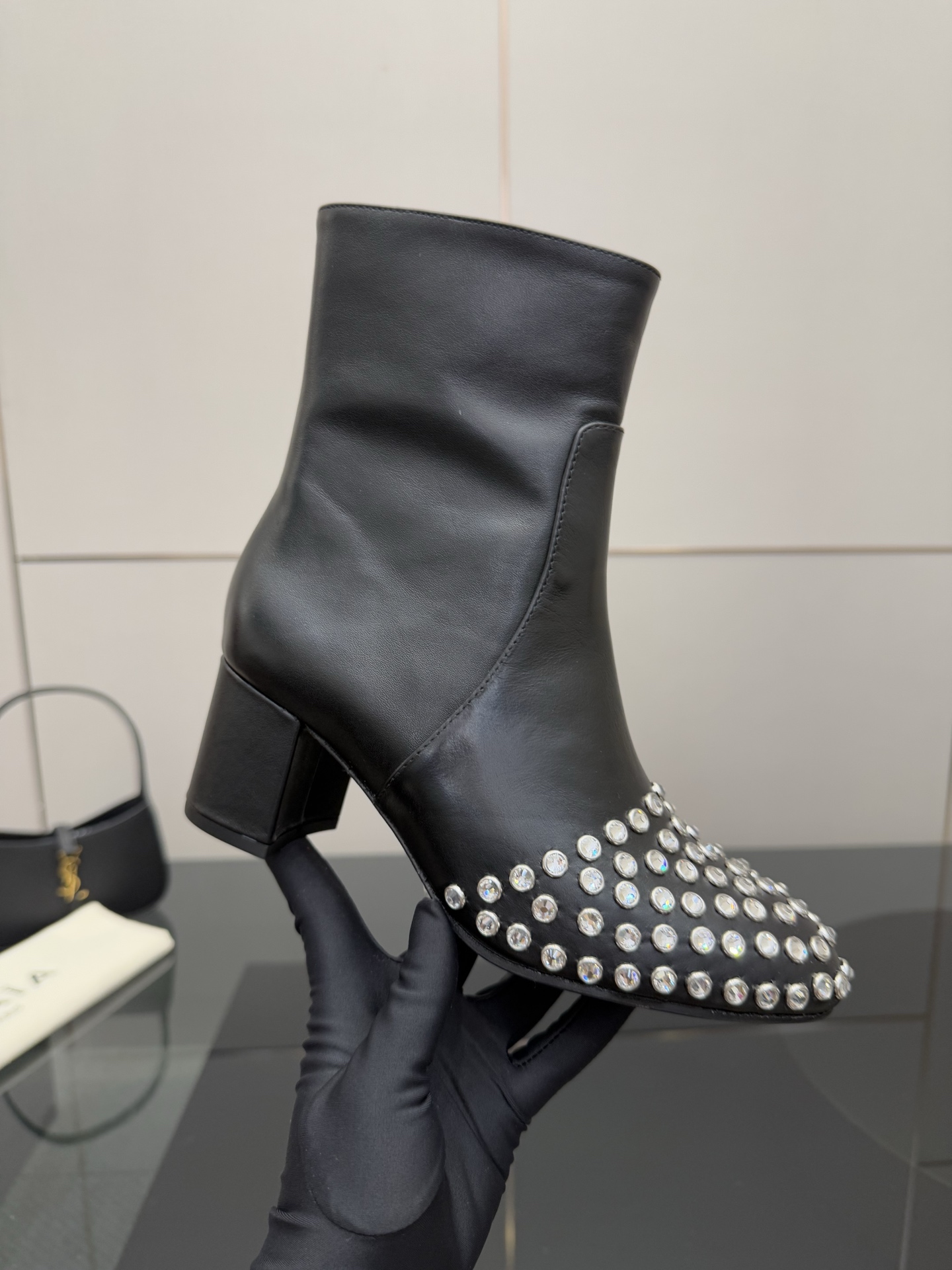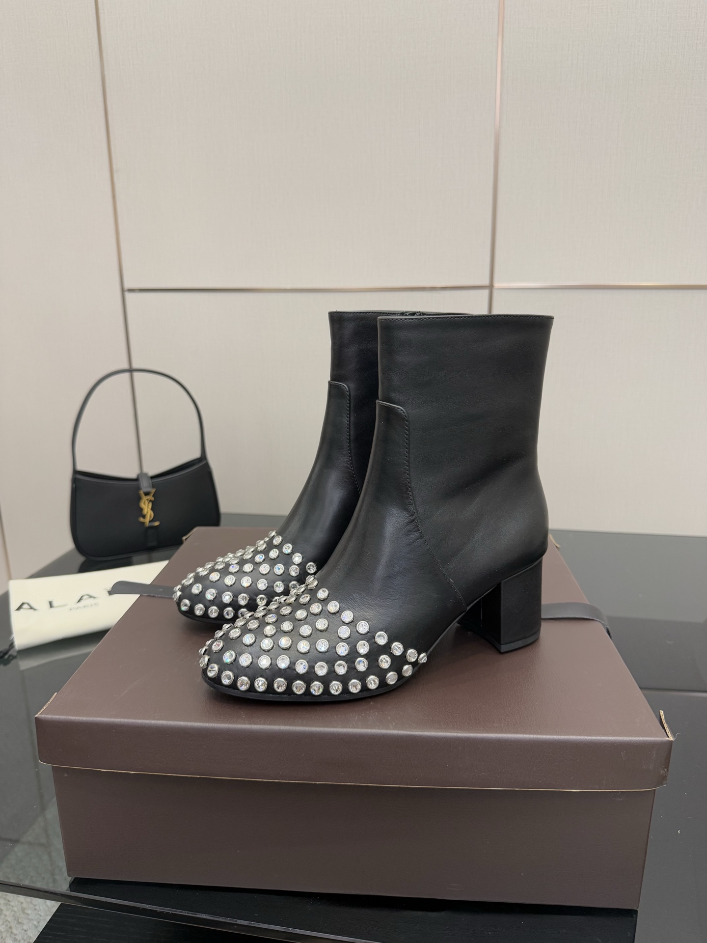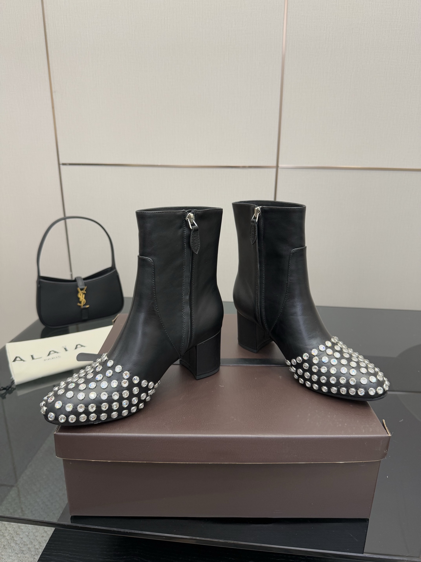 alaia Women Leather Crystal Ankle Boots Size 35-41
