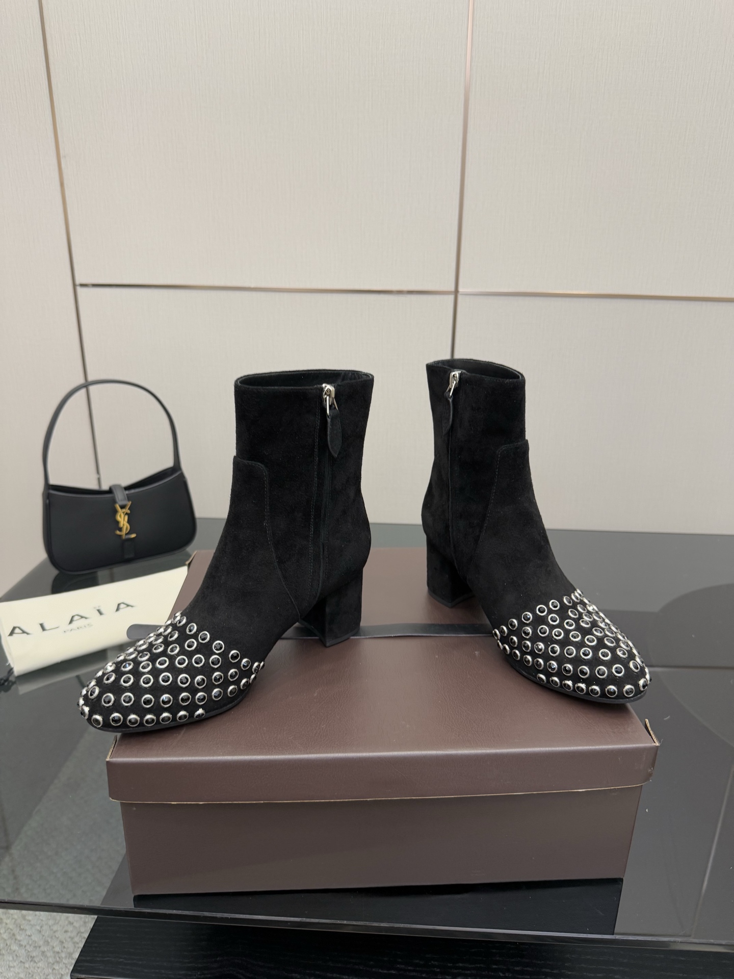 alaia Women Leather Crystal Ankle Boots Size 35-41