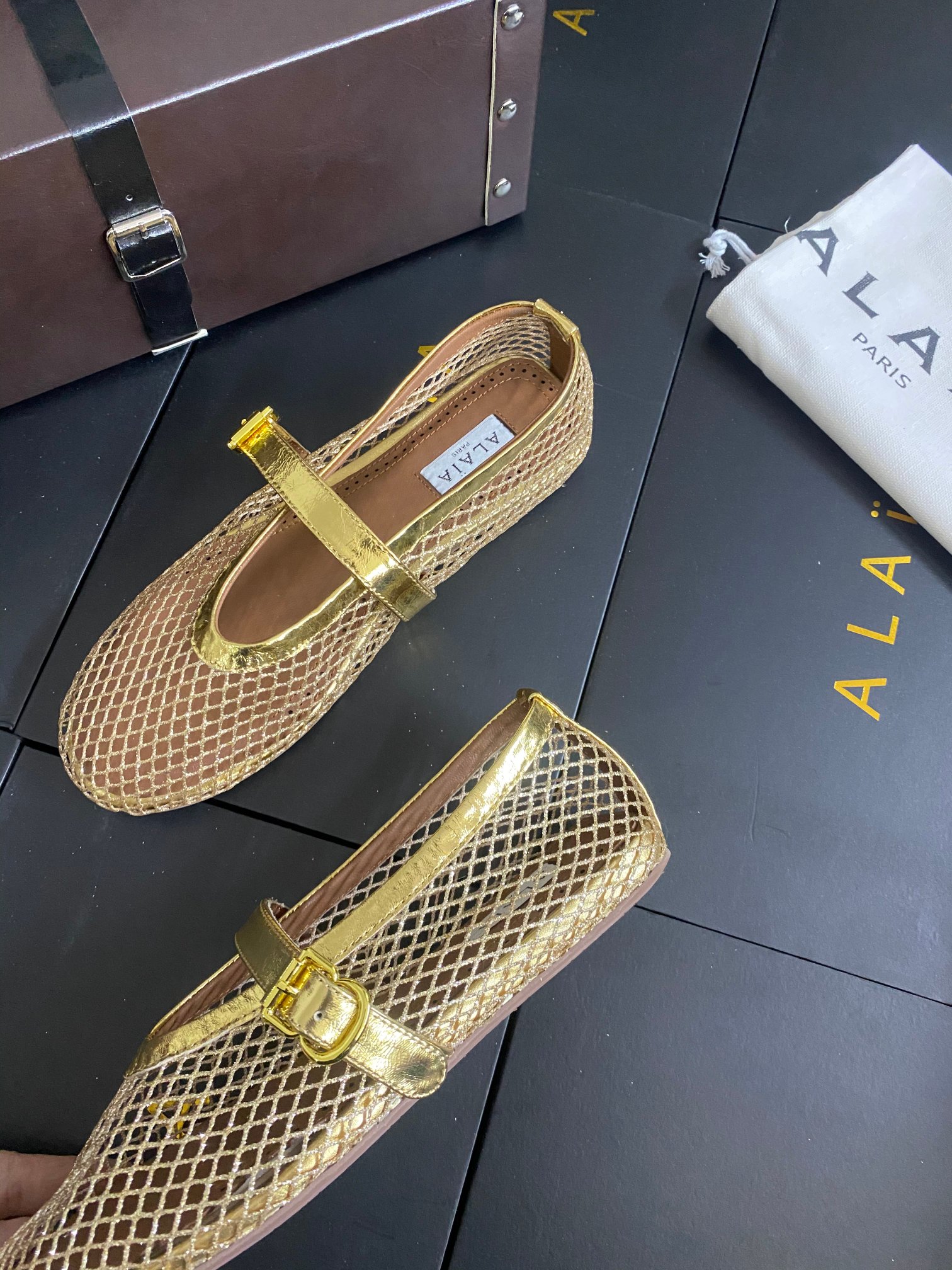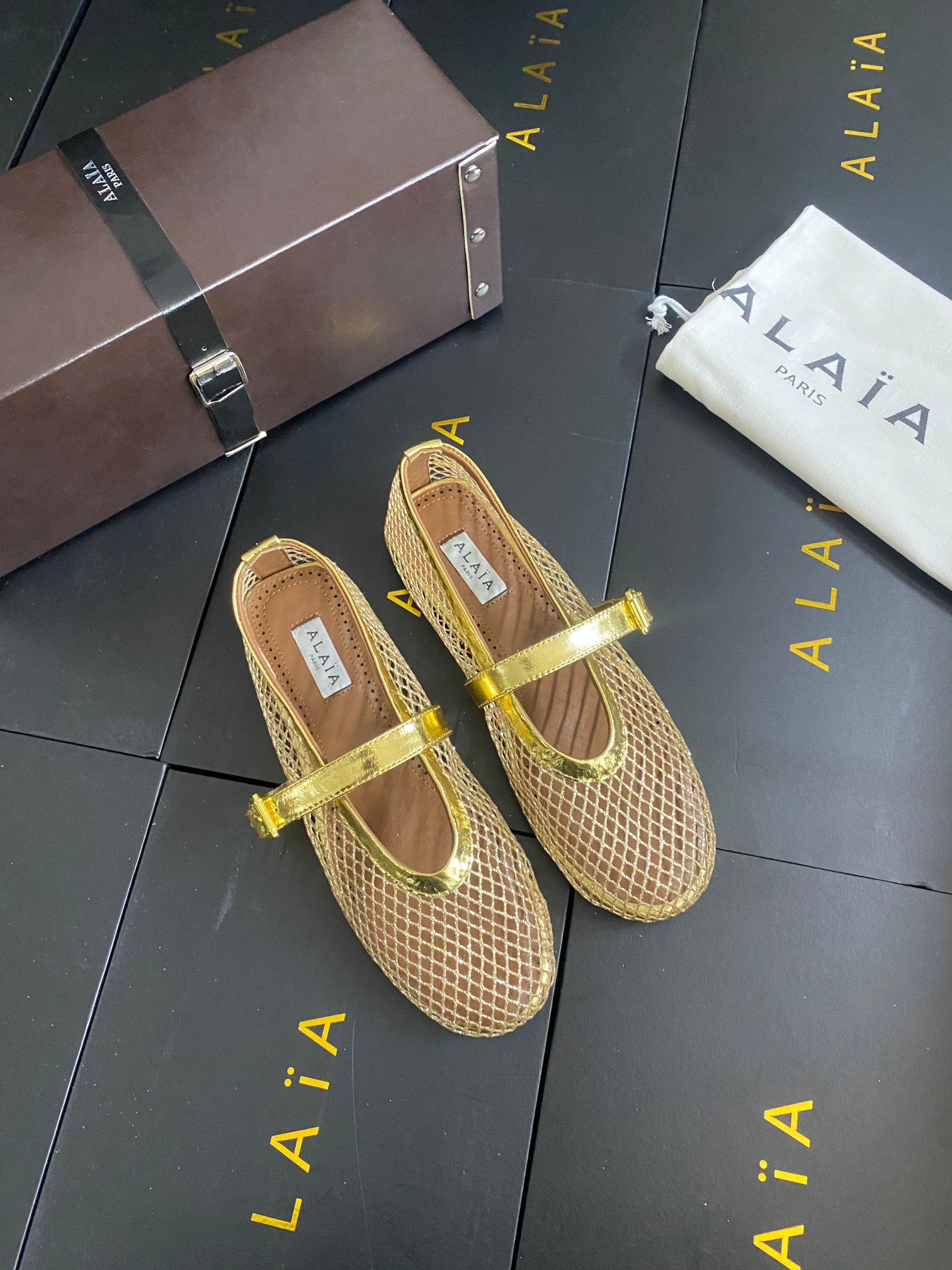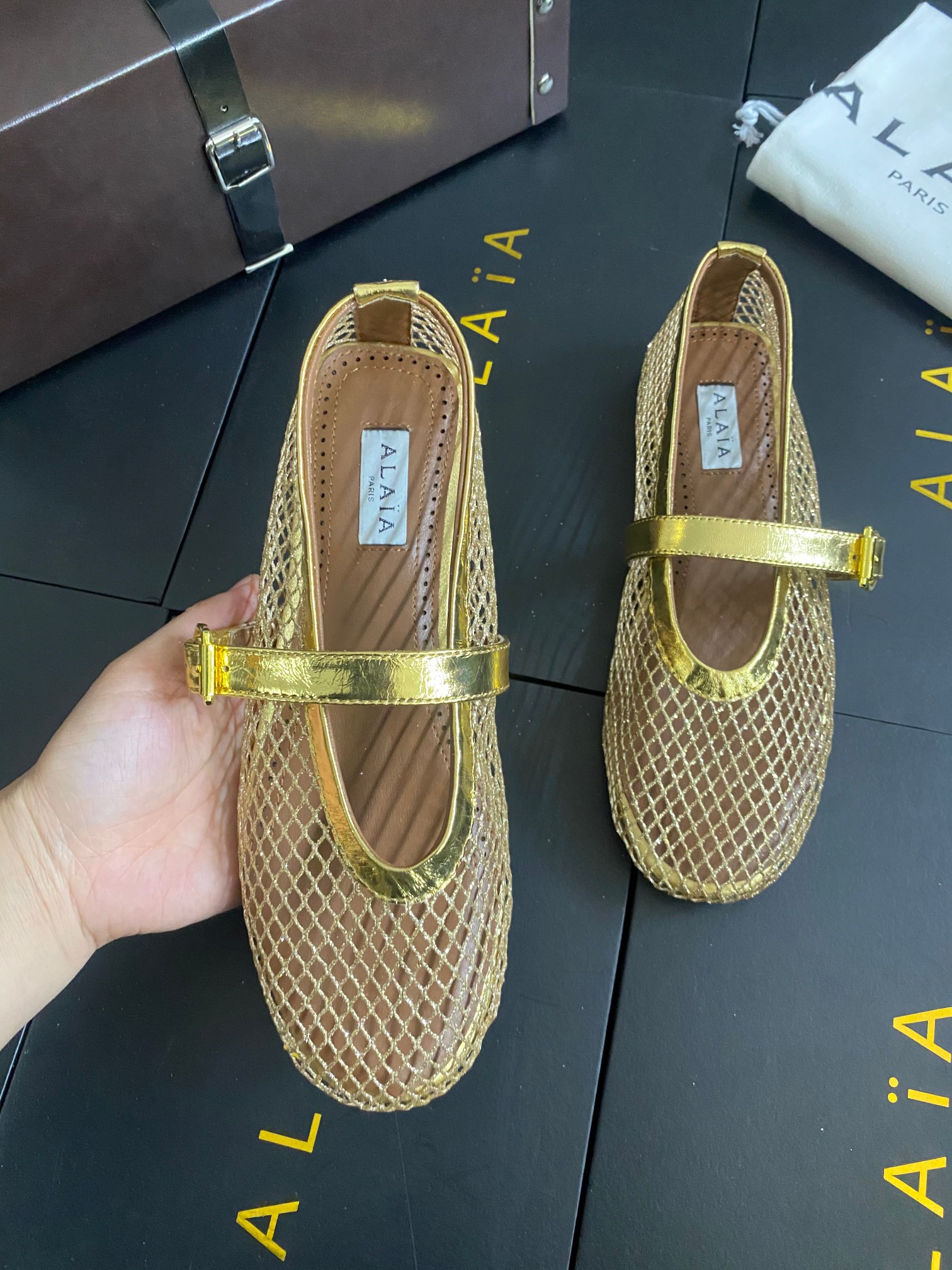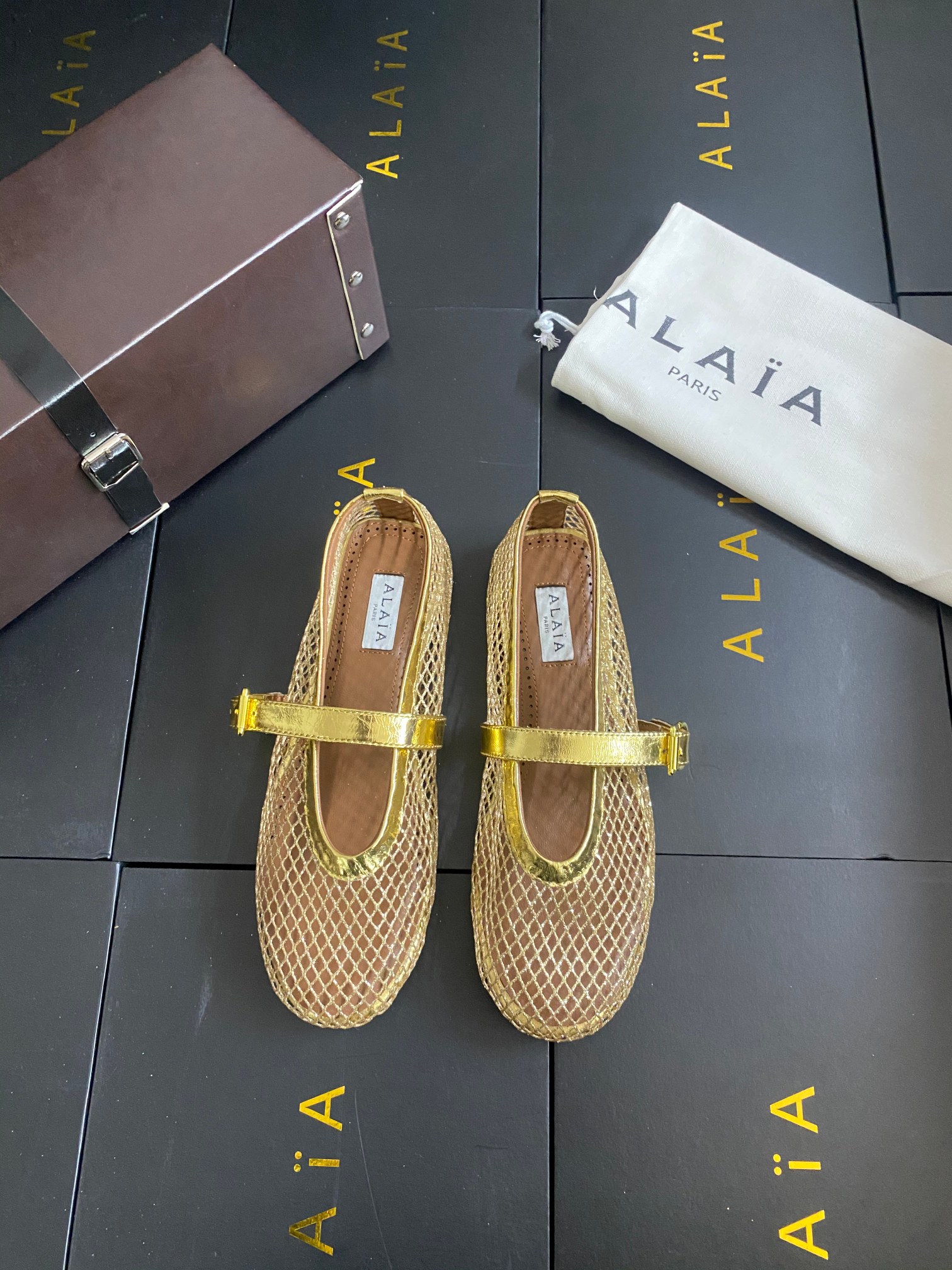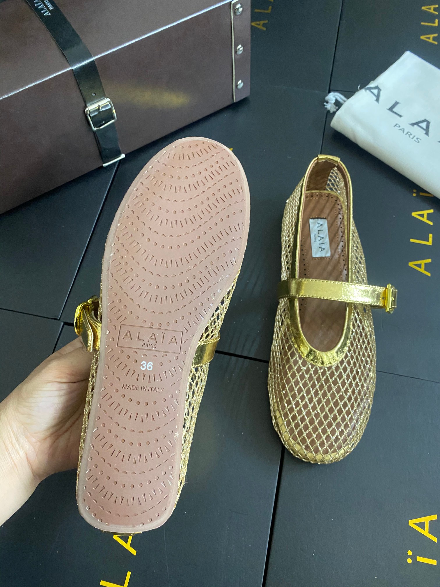 ALAIA Women Leather Mesh Ballet Shoes Size 35-42