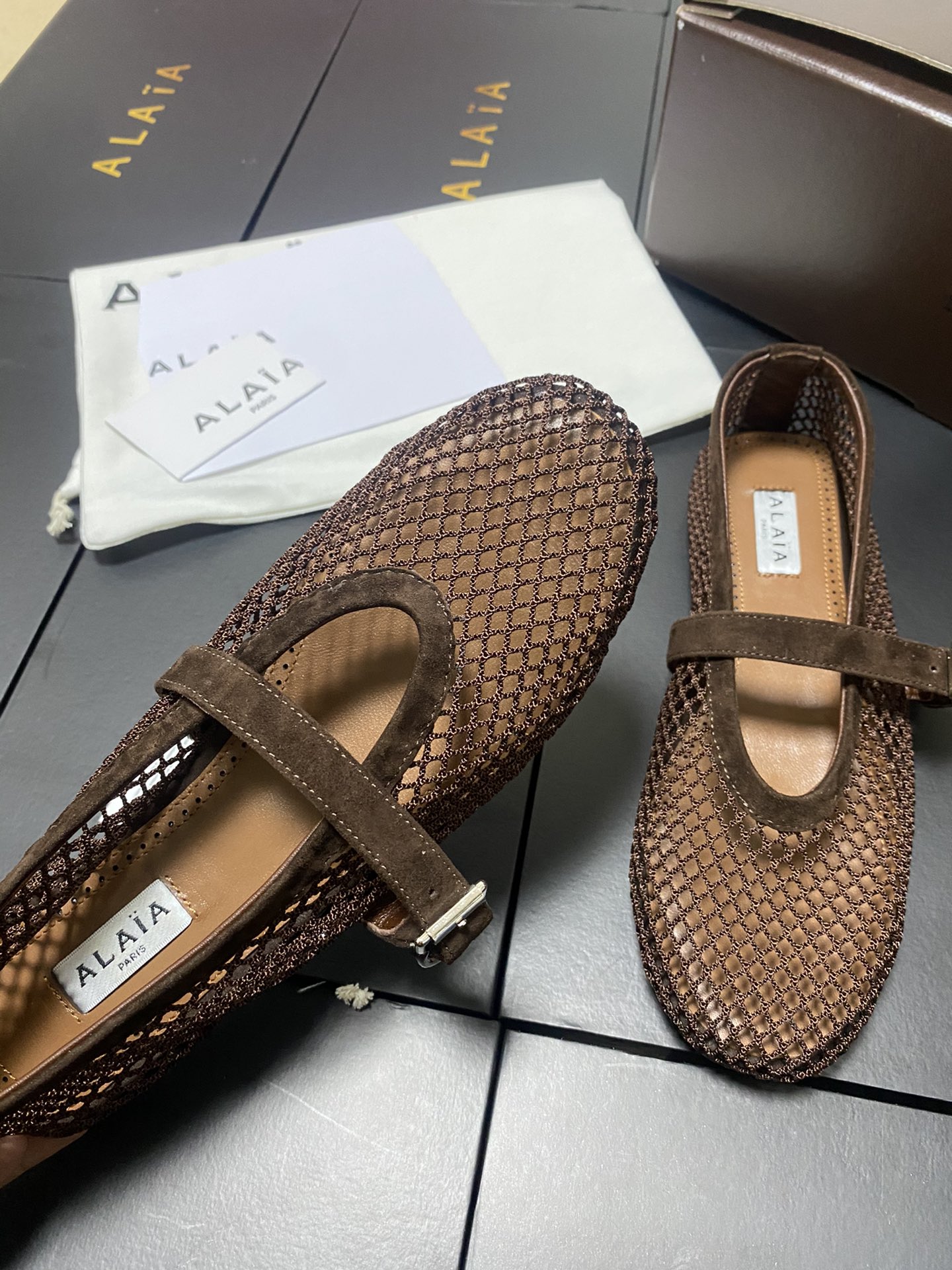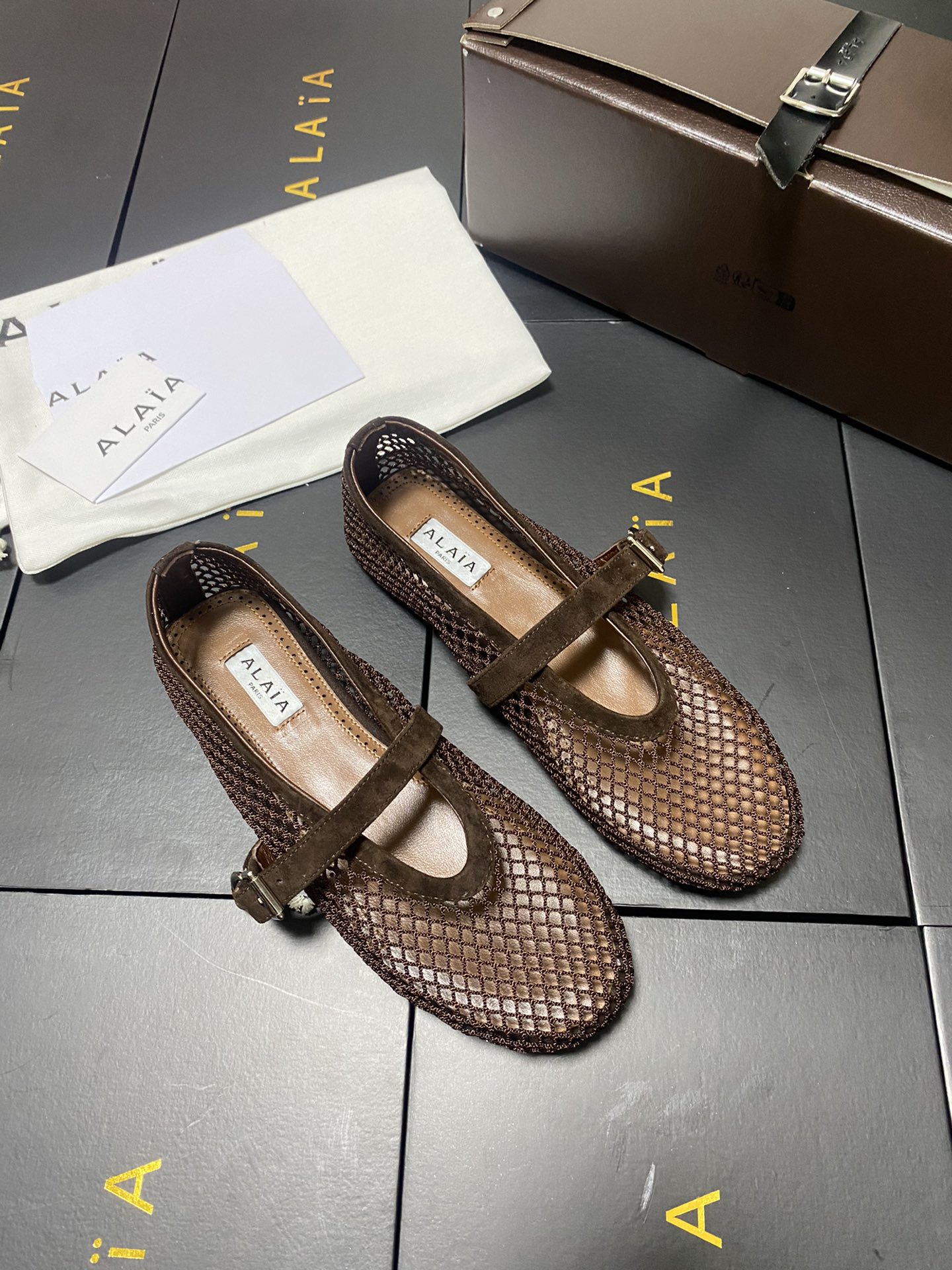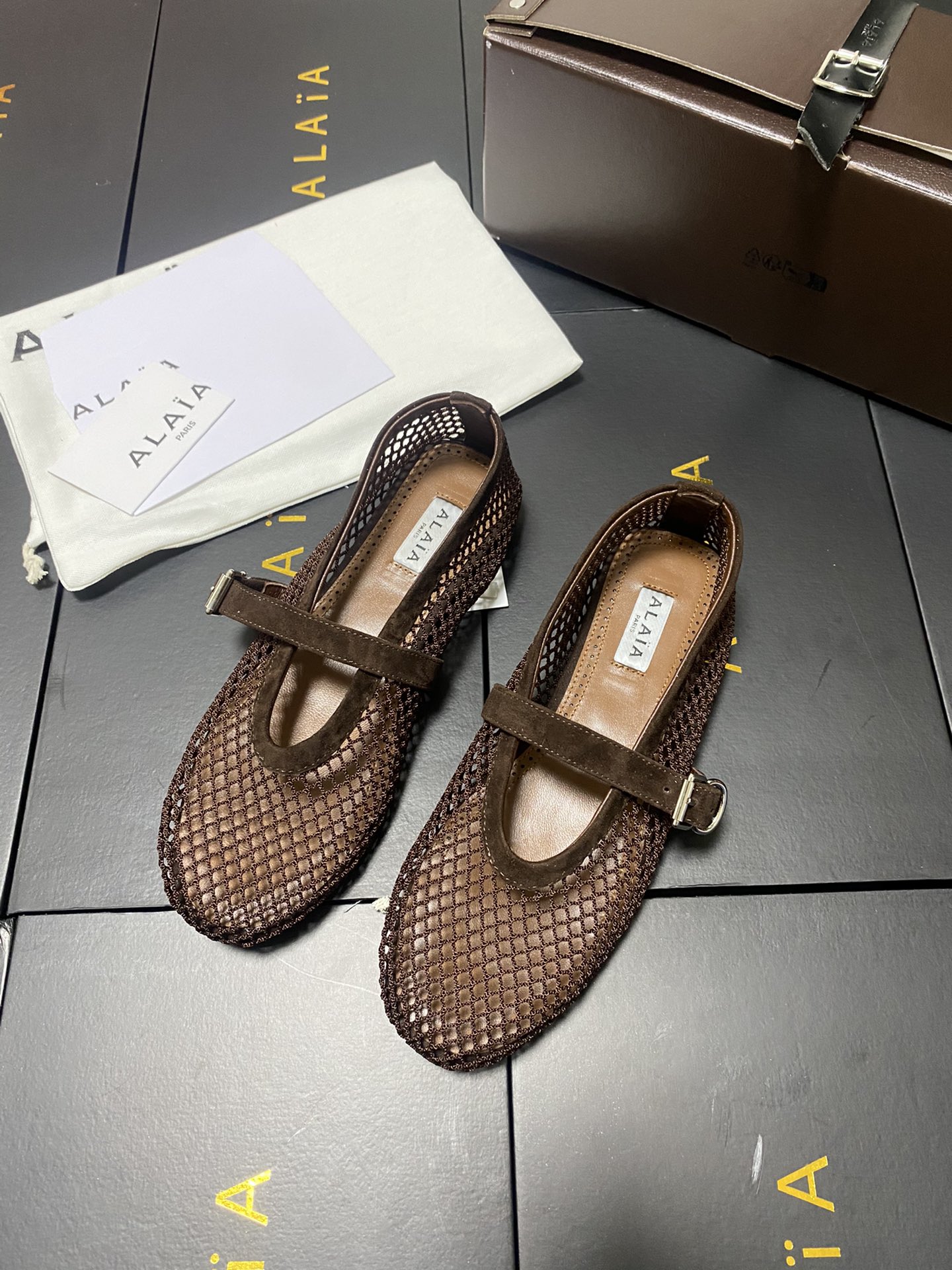 ALAIA Women Leather Mesh Ballet Shoes Size 35-42