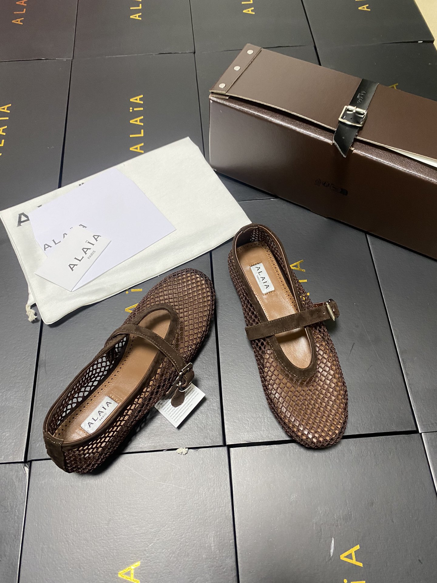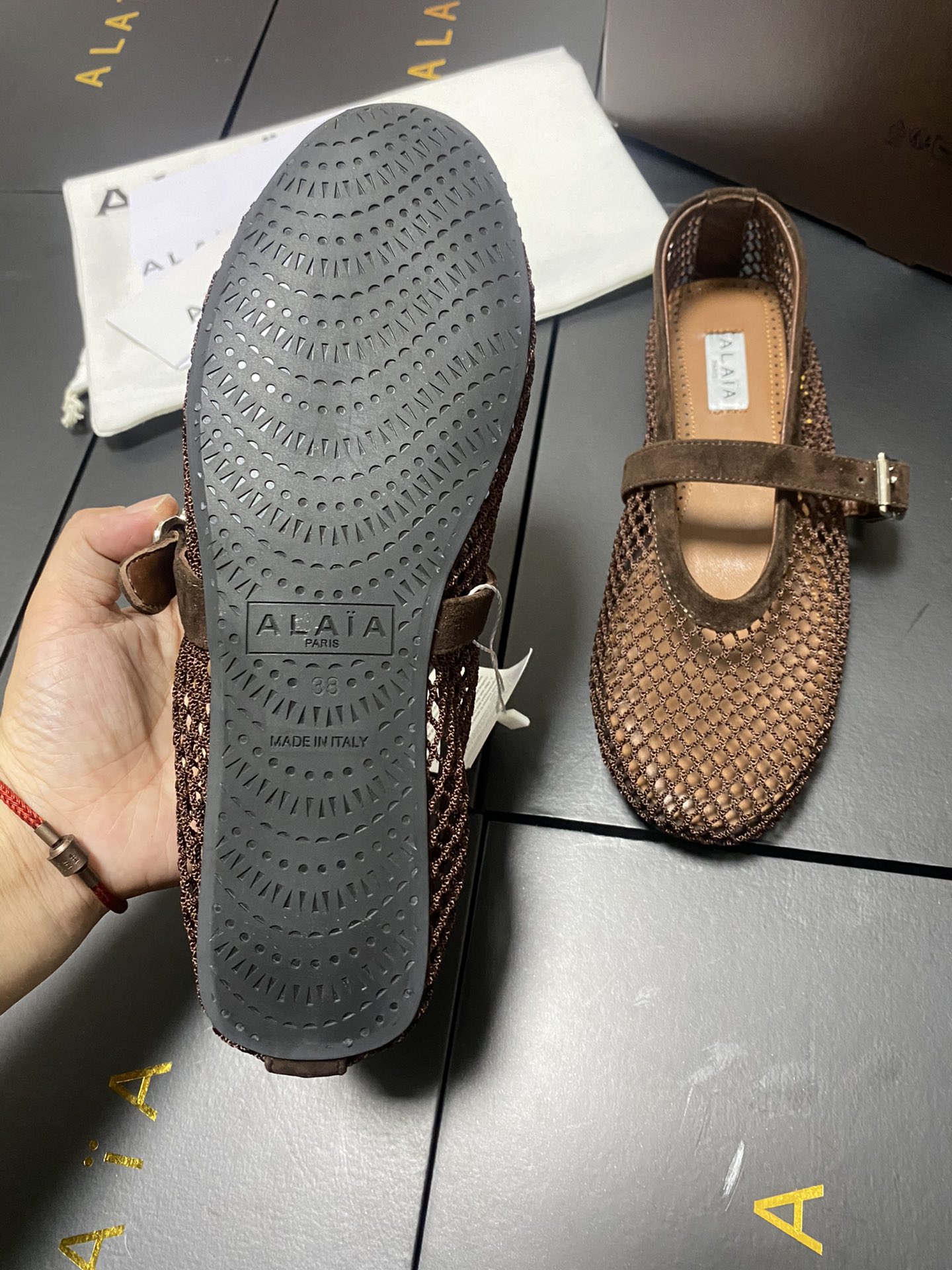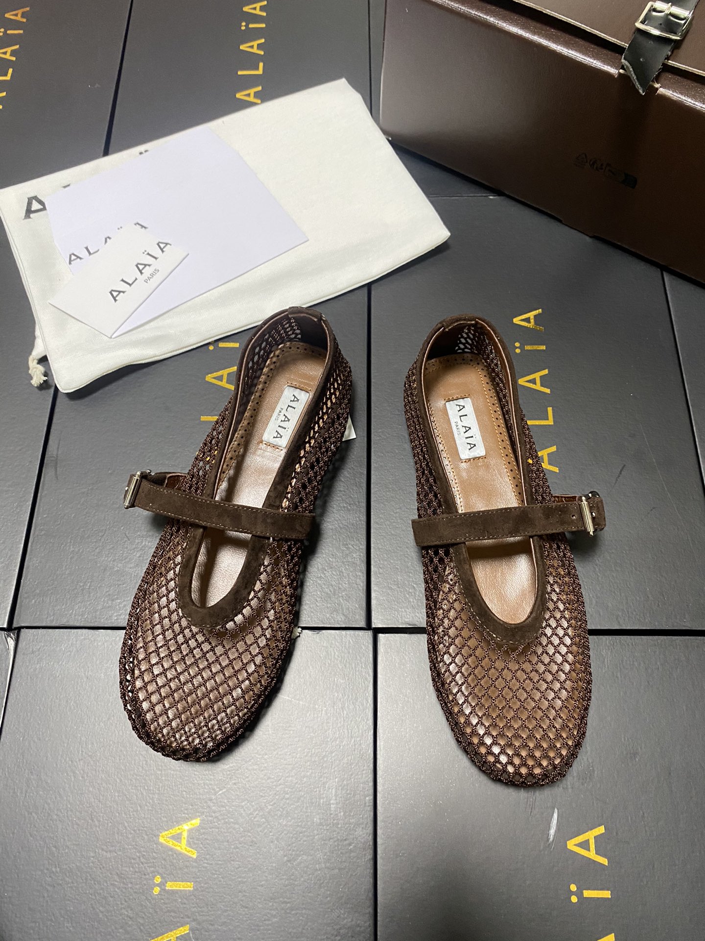 ALAIA Women Leather Mesh Ballet Shoes Size 35-42