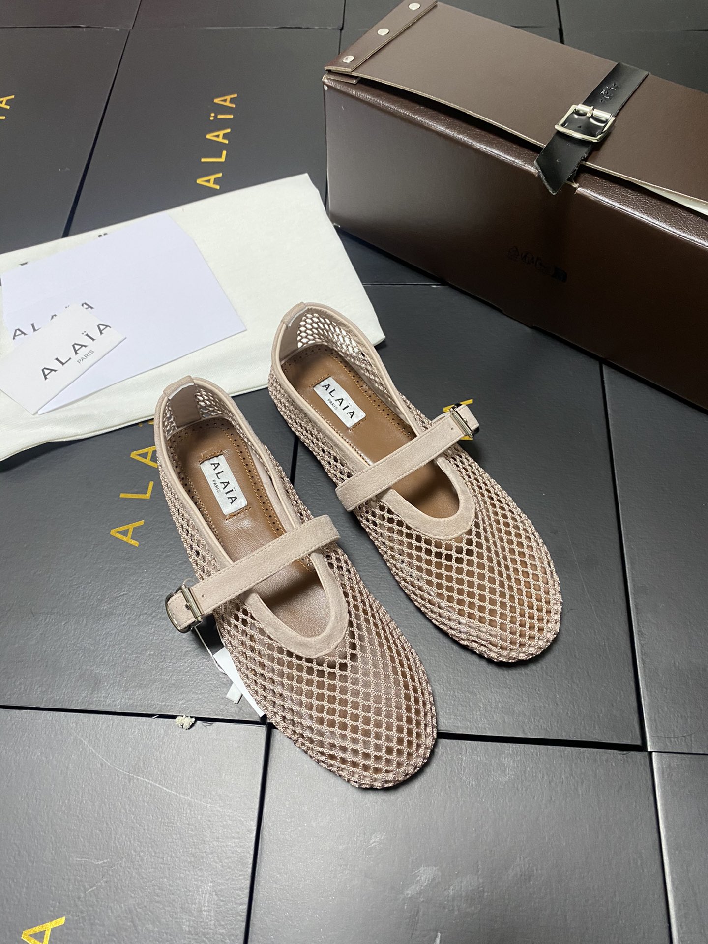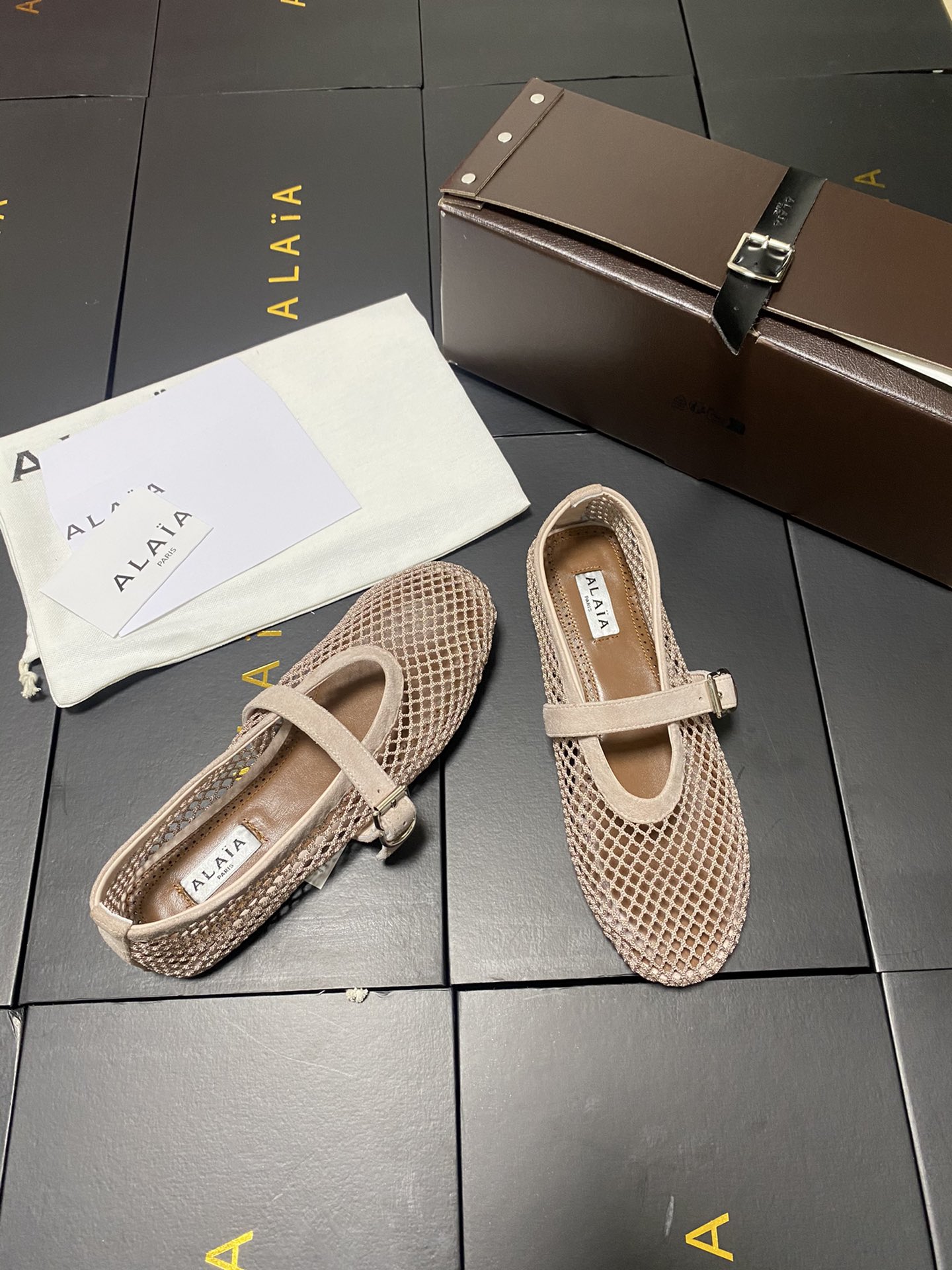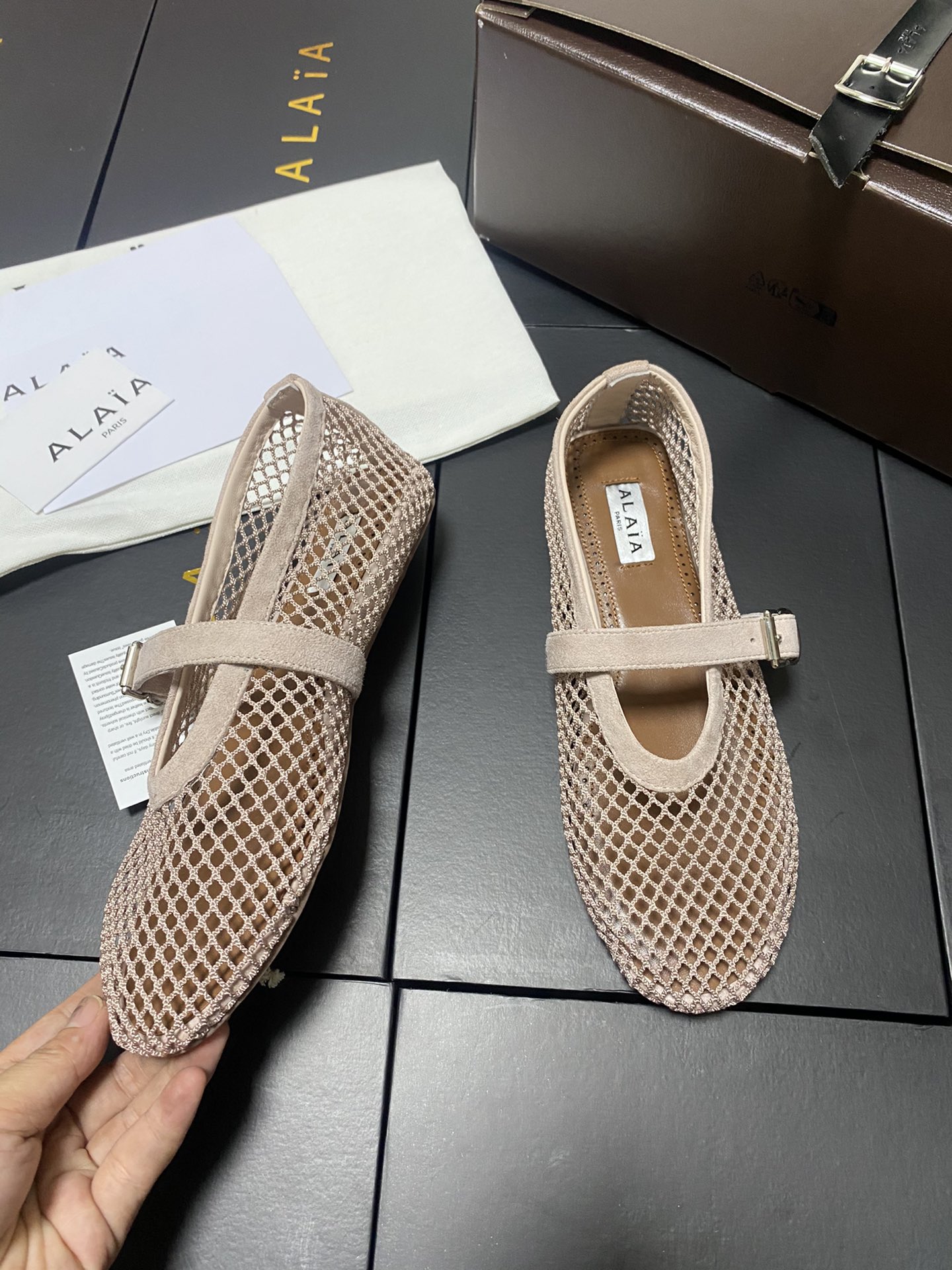 ALAIA Women Leather Mesh Ballet Shoes Size 35-42