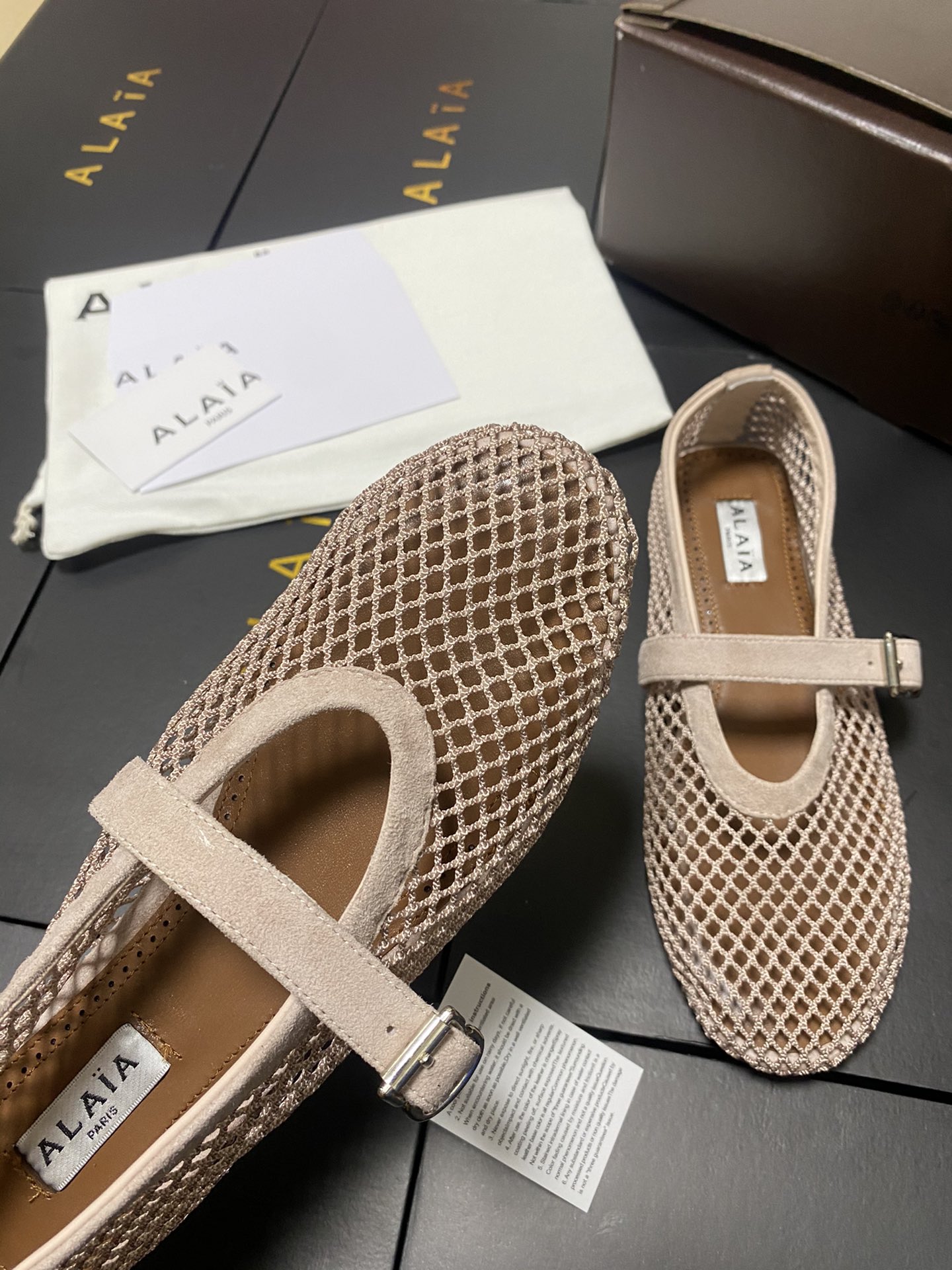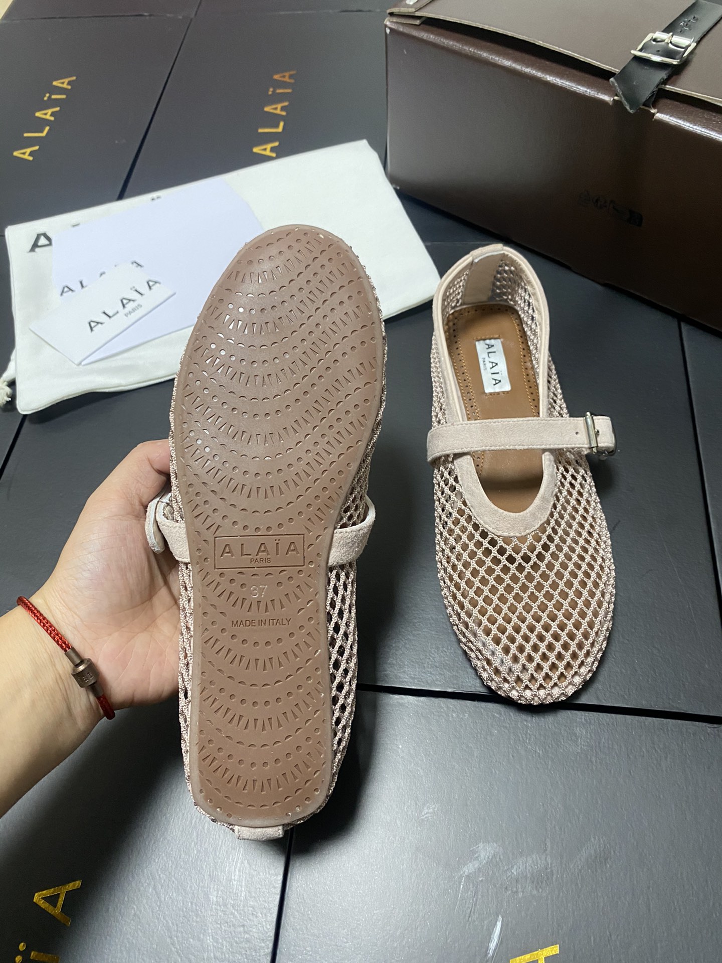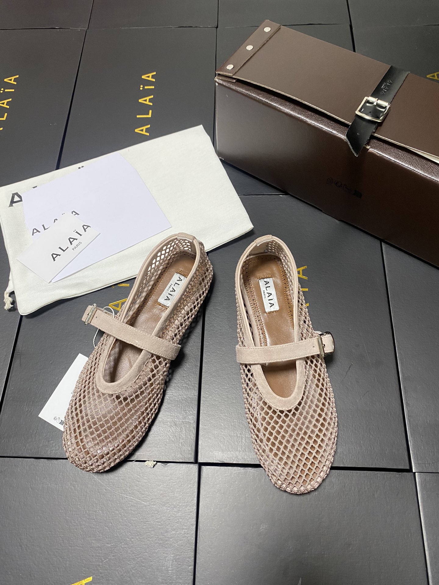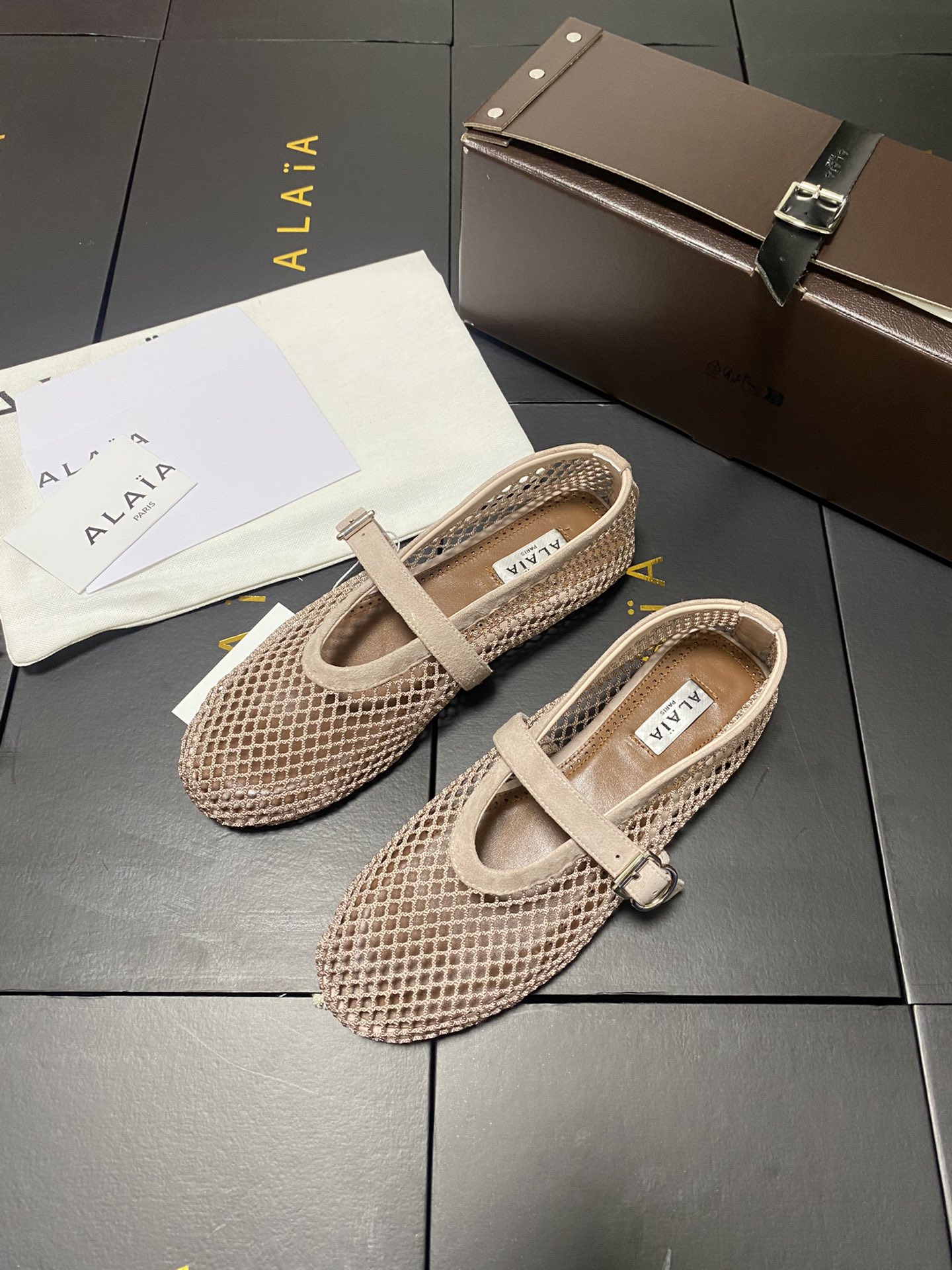 ALAIA Women Leather Mesh Ballet Shoes Size 35-42