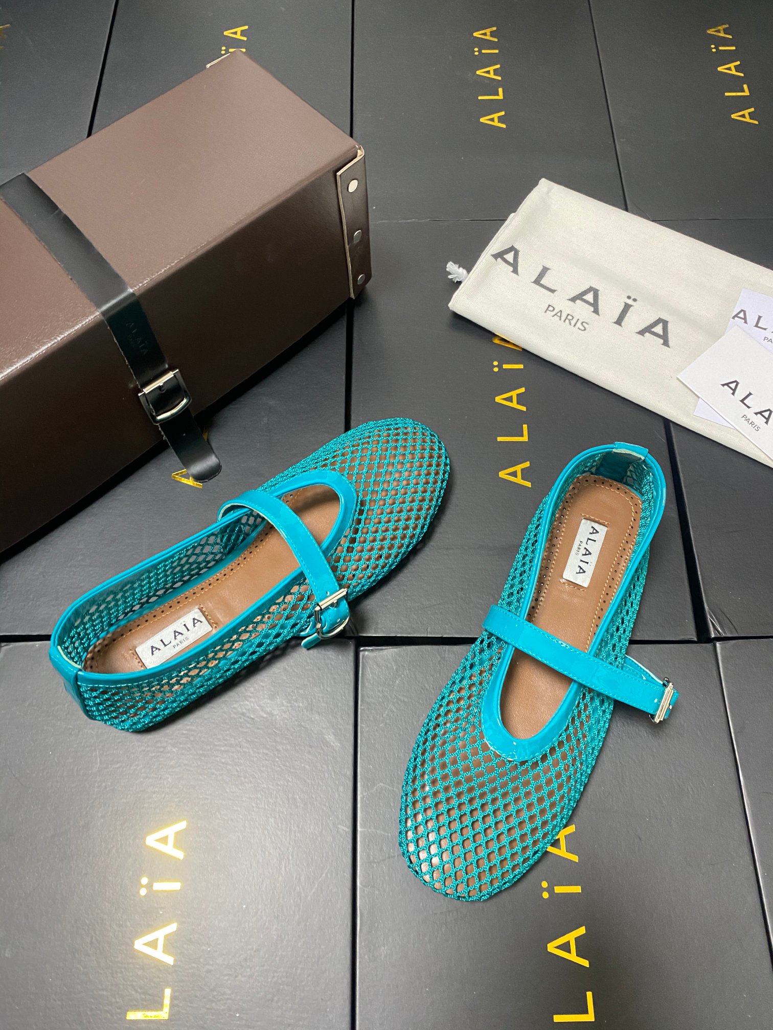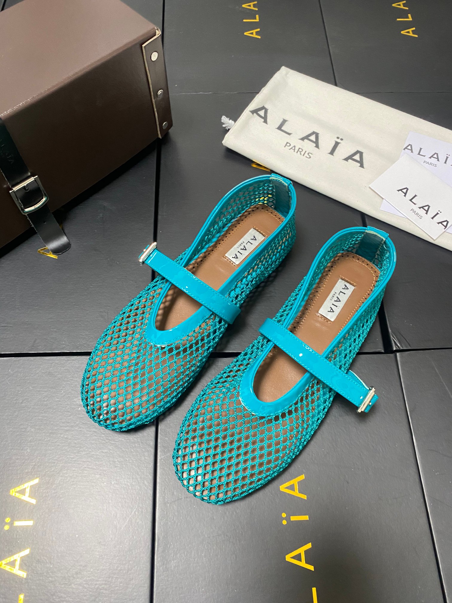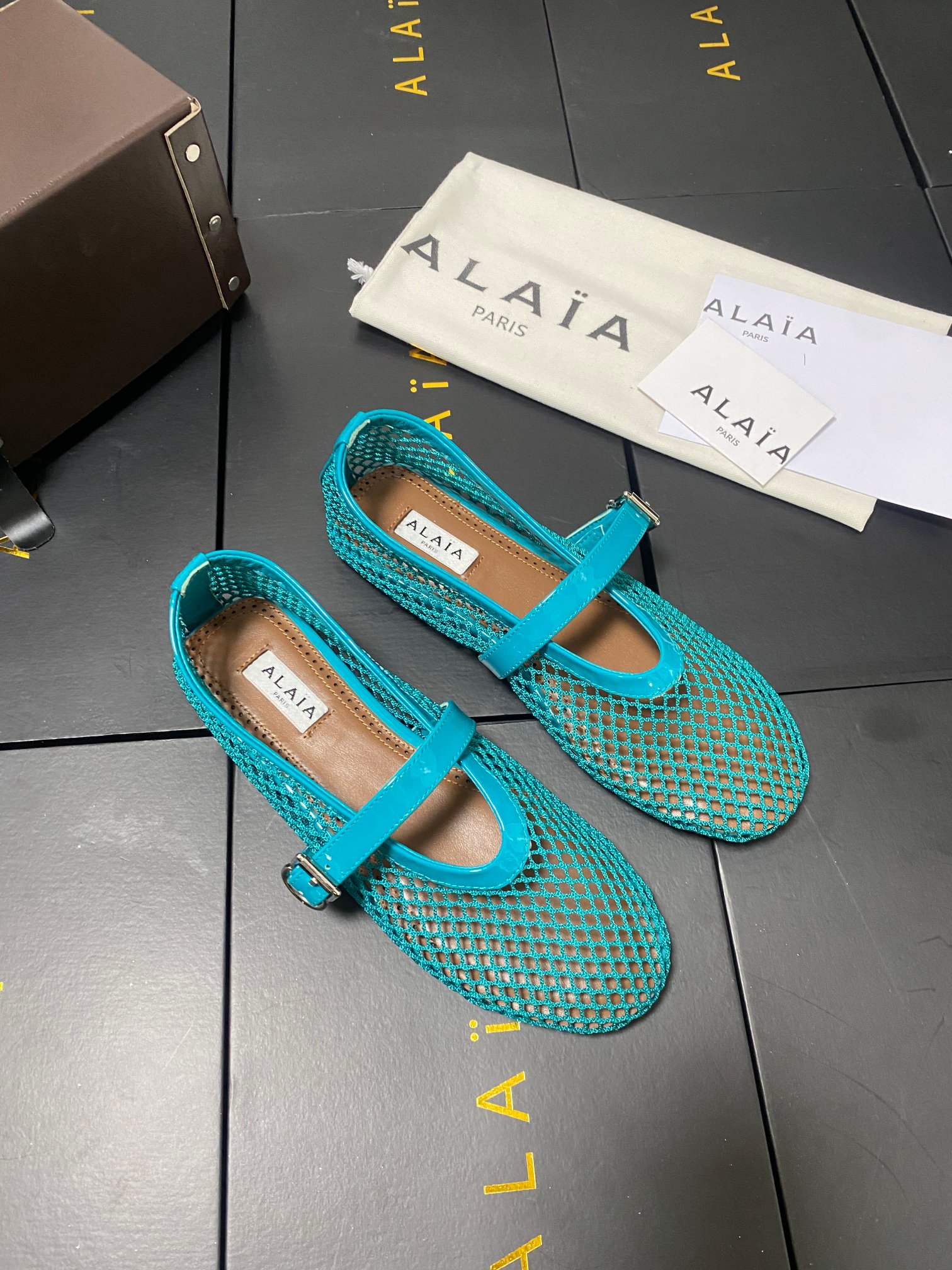 ALAIA Women Leather Mesh Ballet Shoes Size 35-42