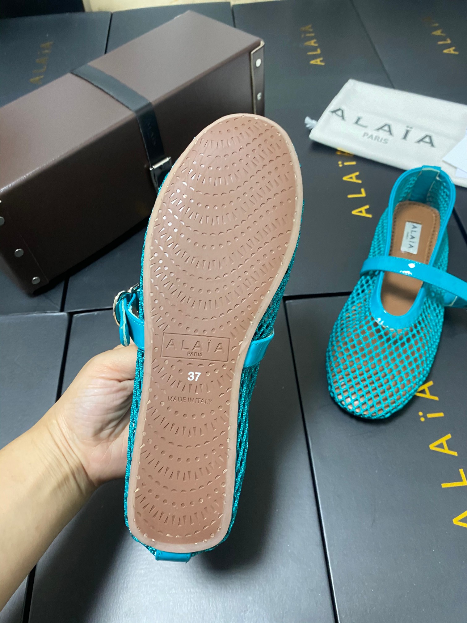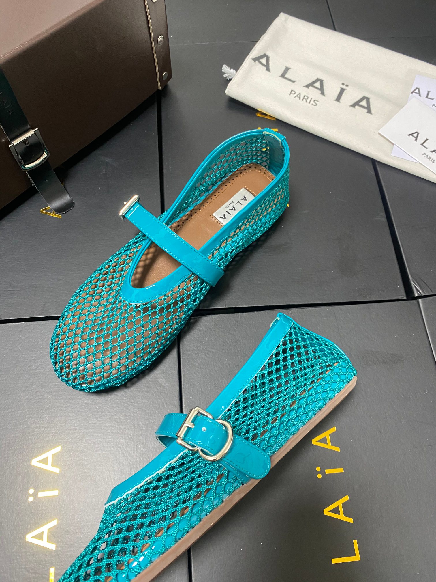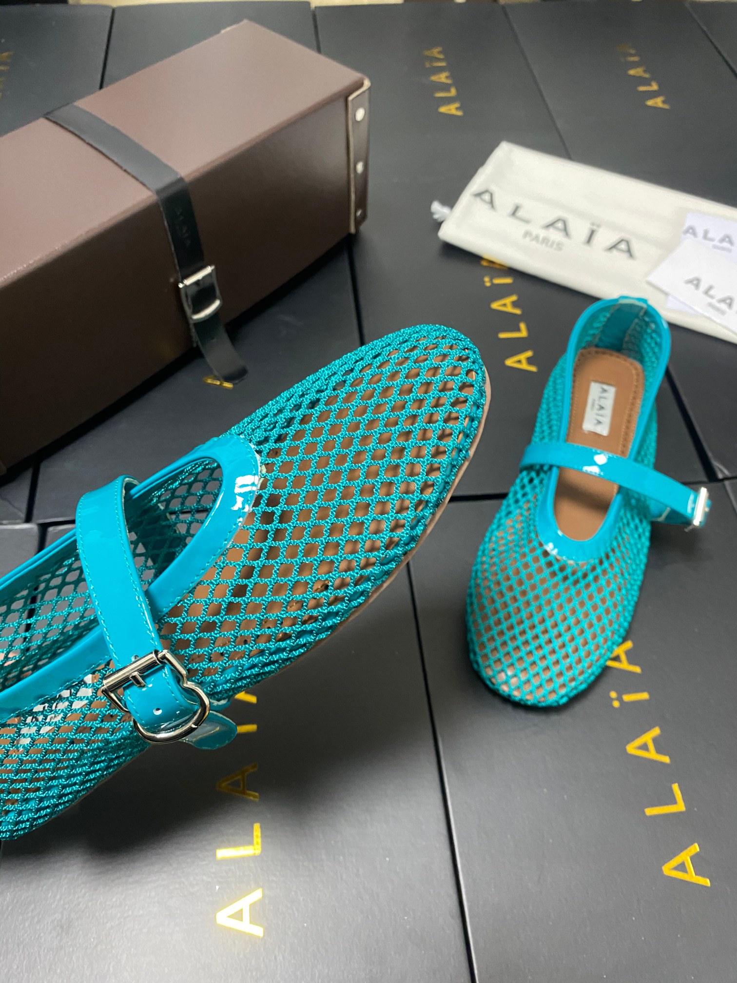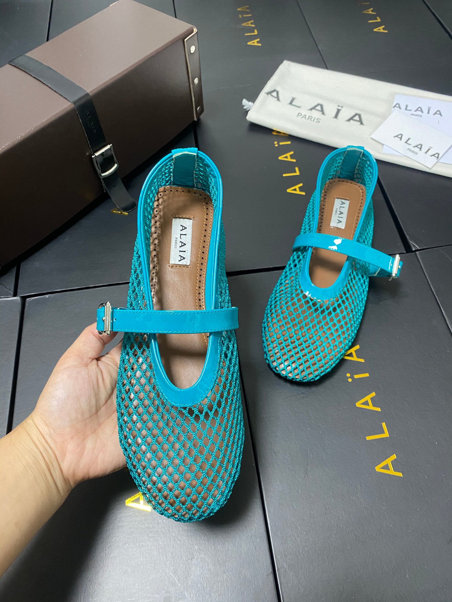 ALAIA Women Leather Mesh Ballet Shoes Size 35-42
