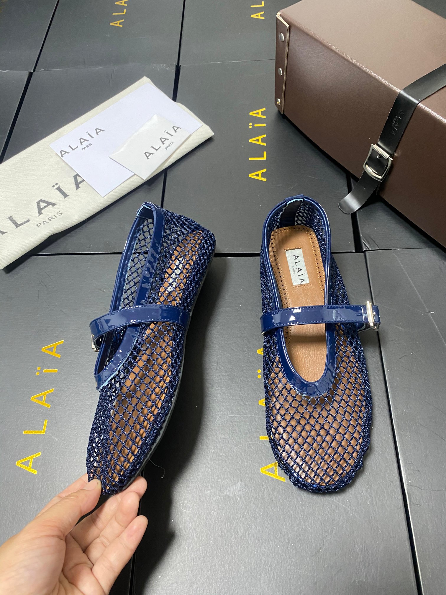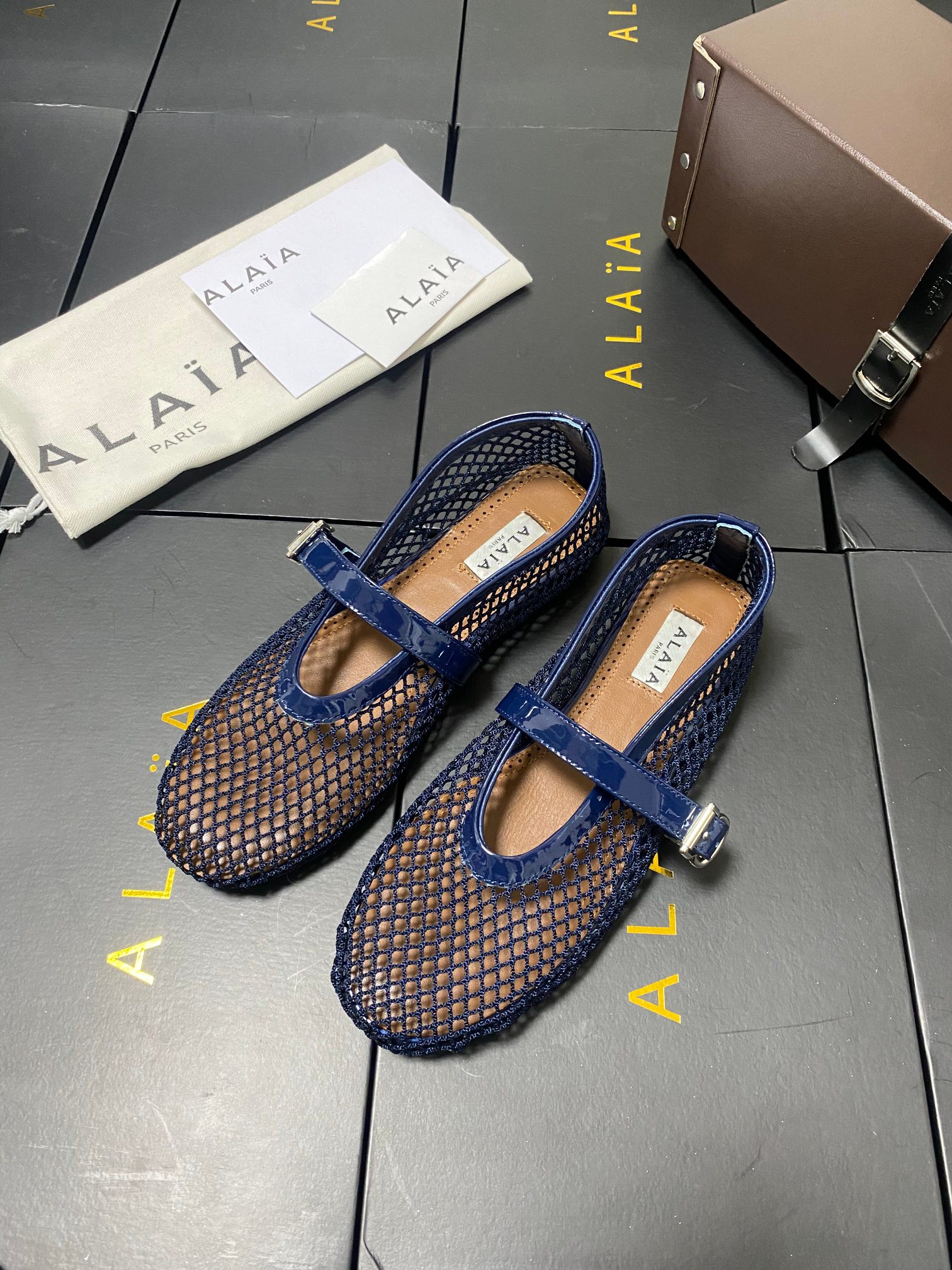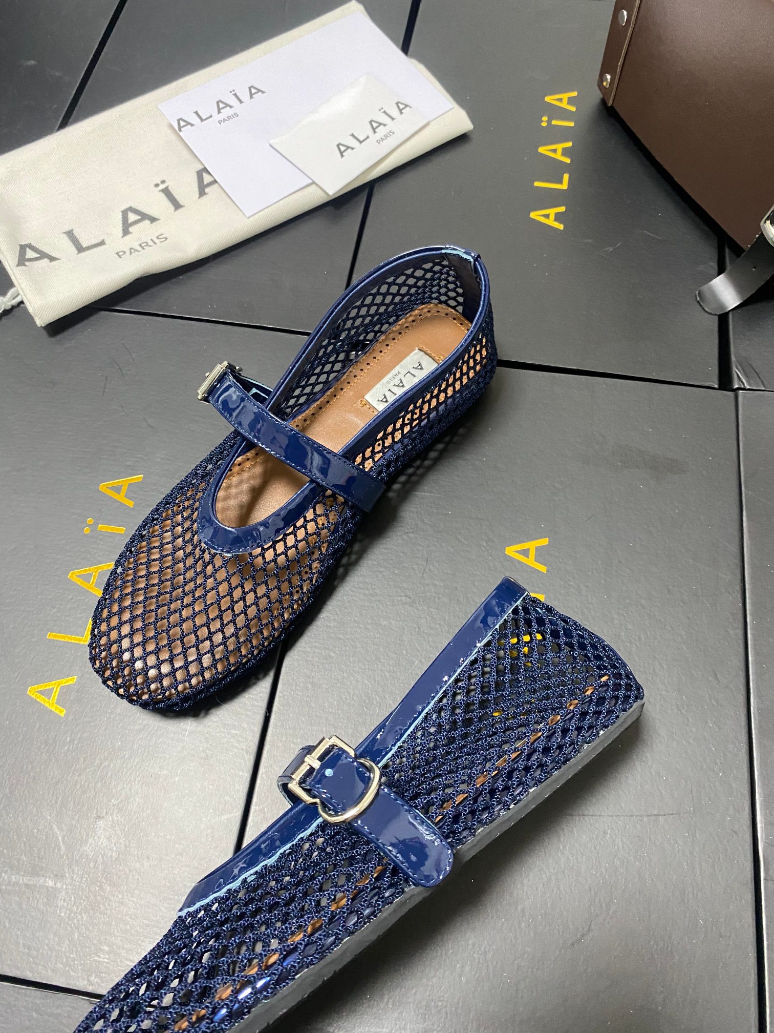 ALAIA Women Leather Mesh Ballet Shoes Size 35-42