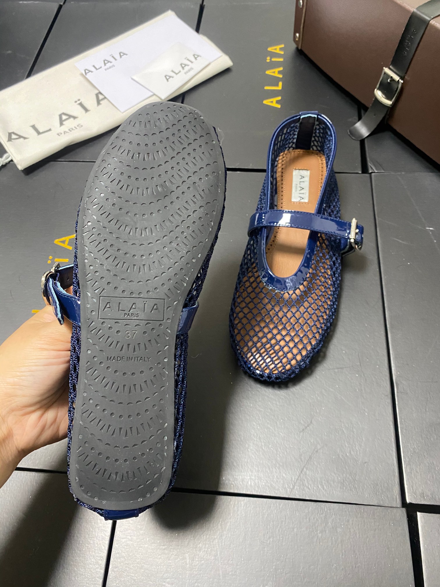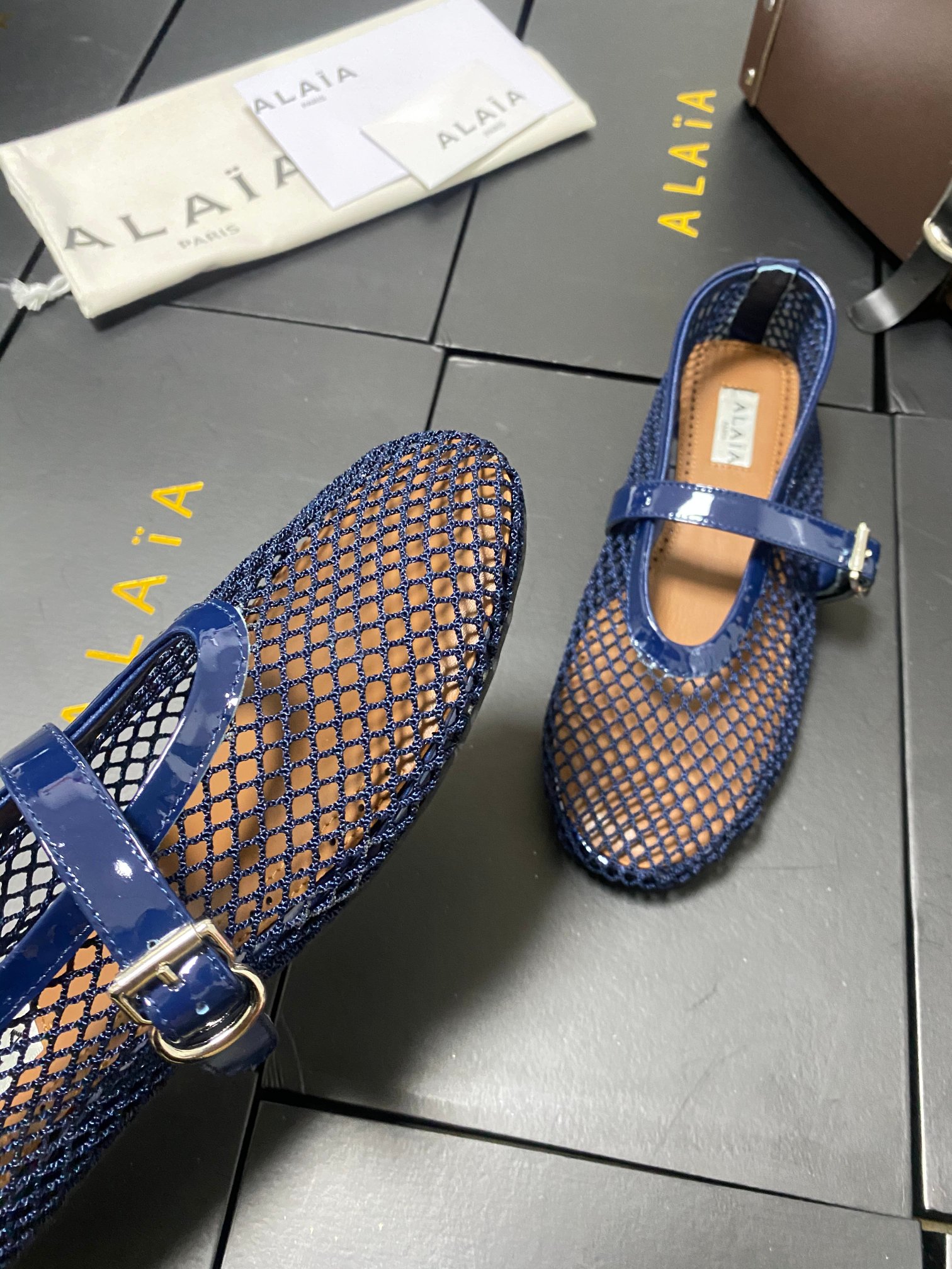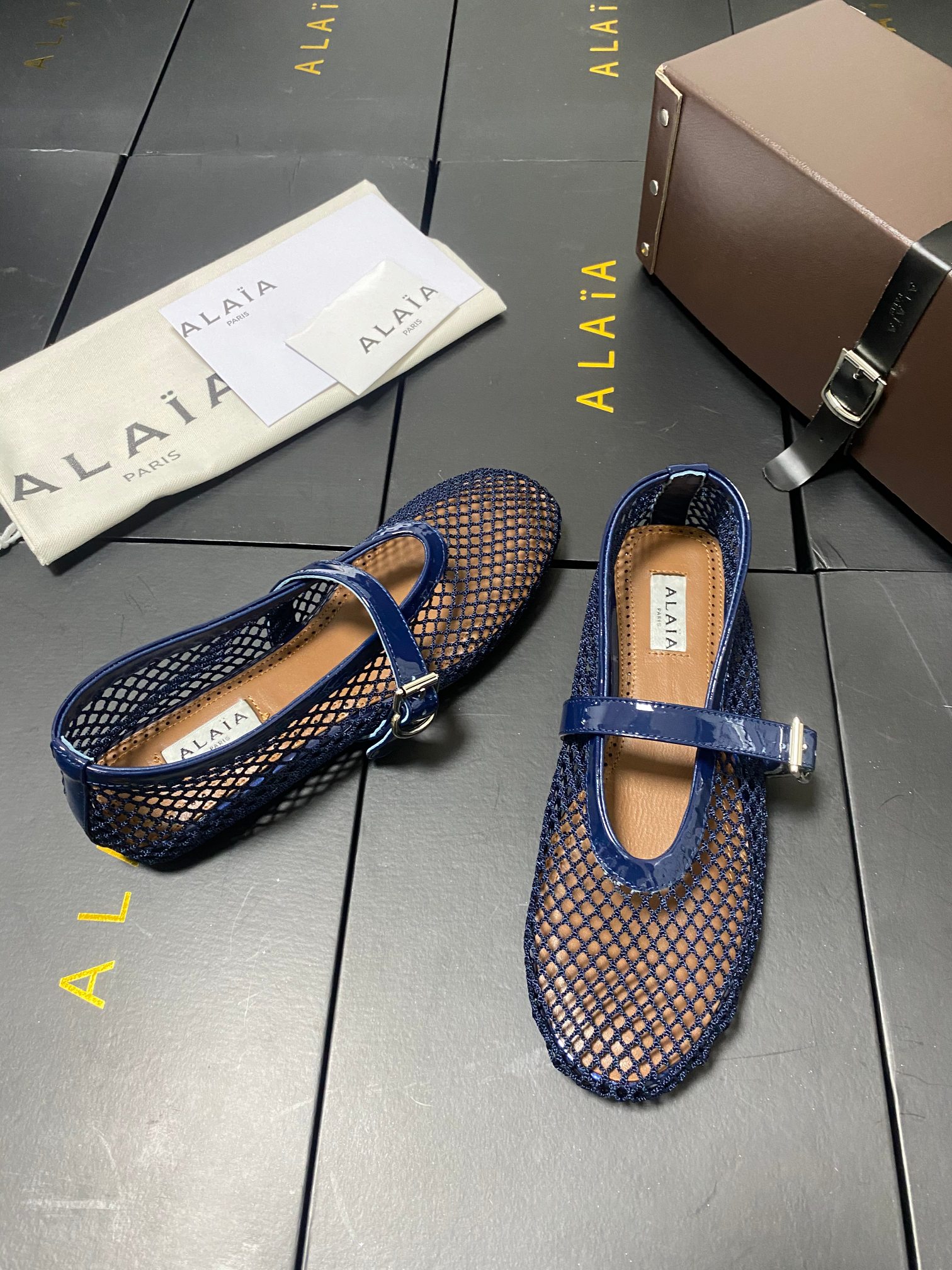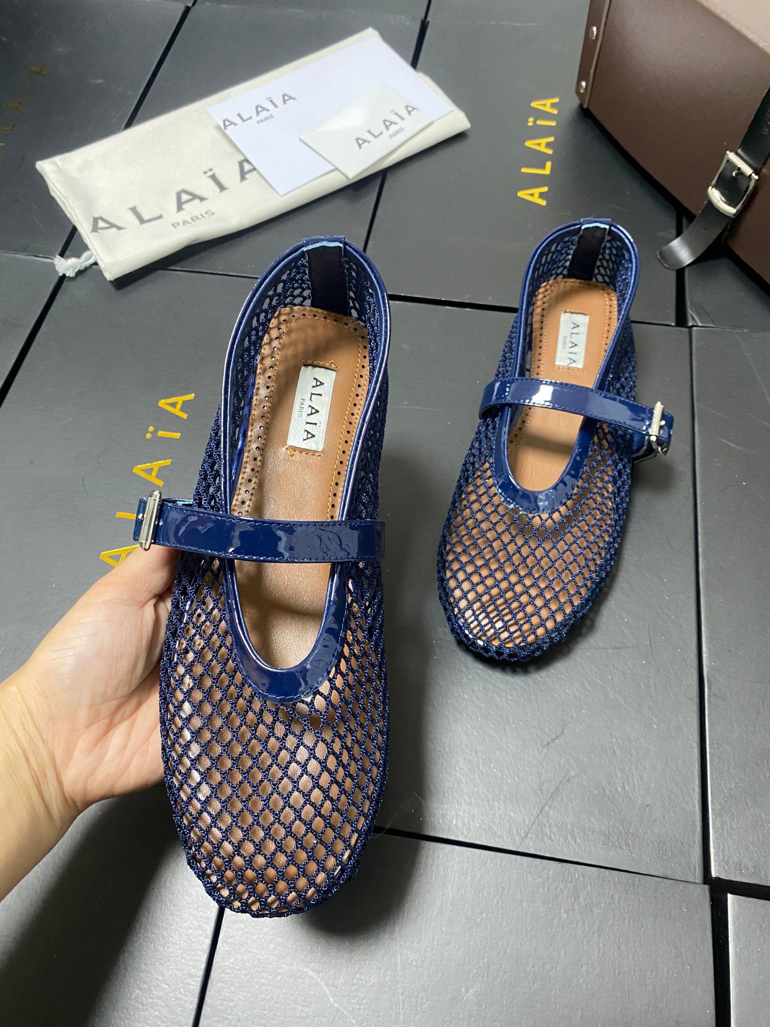ALAIA Women Leather Mesh Ballet Shoes Size 35-42