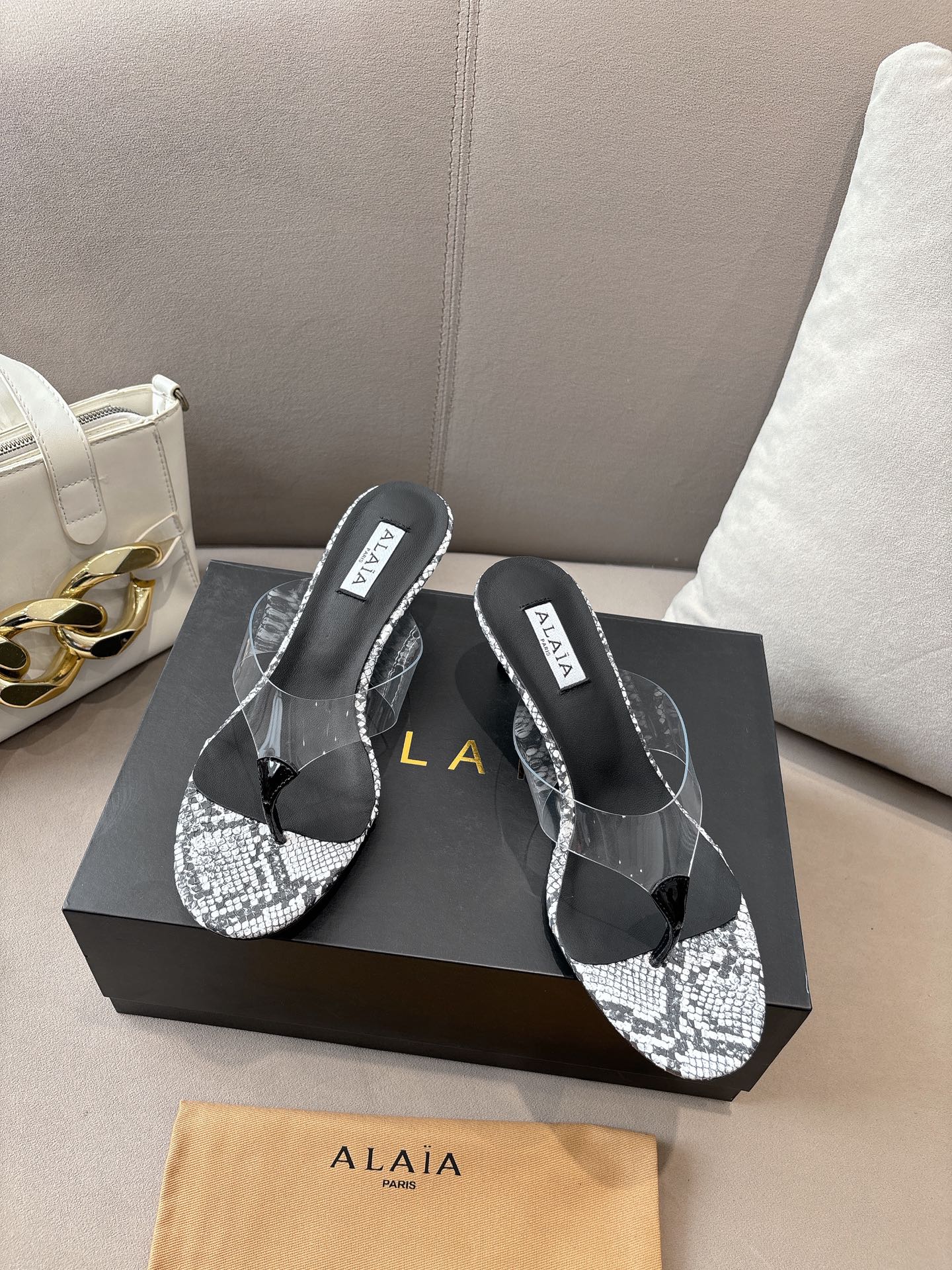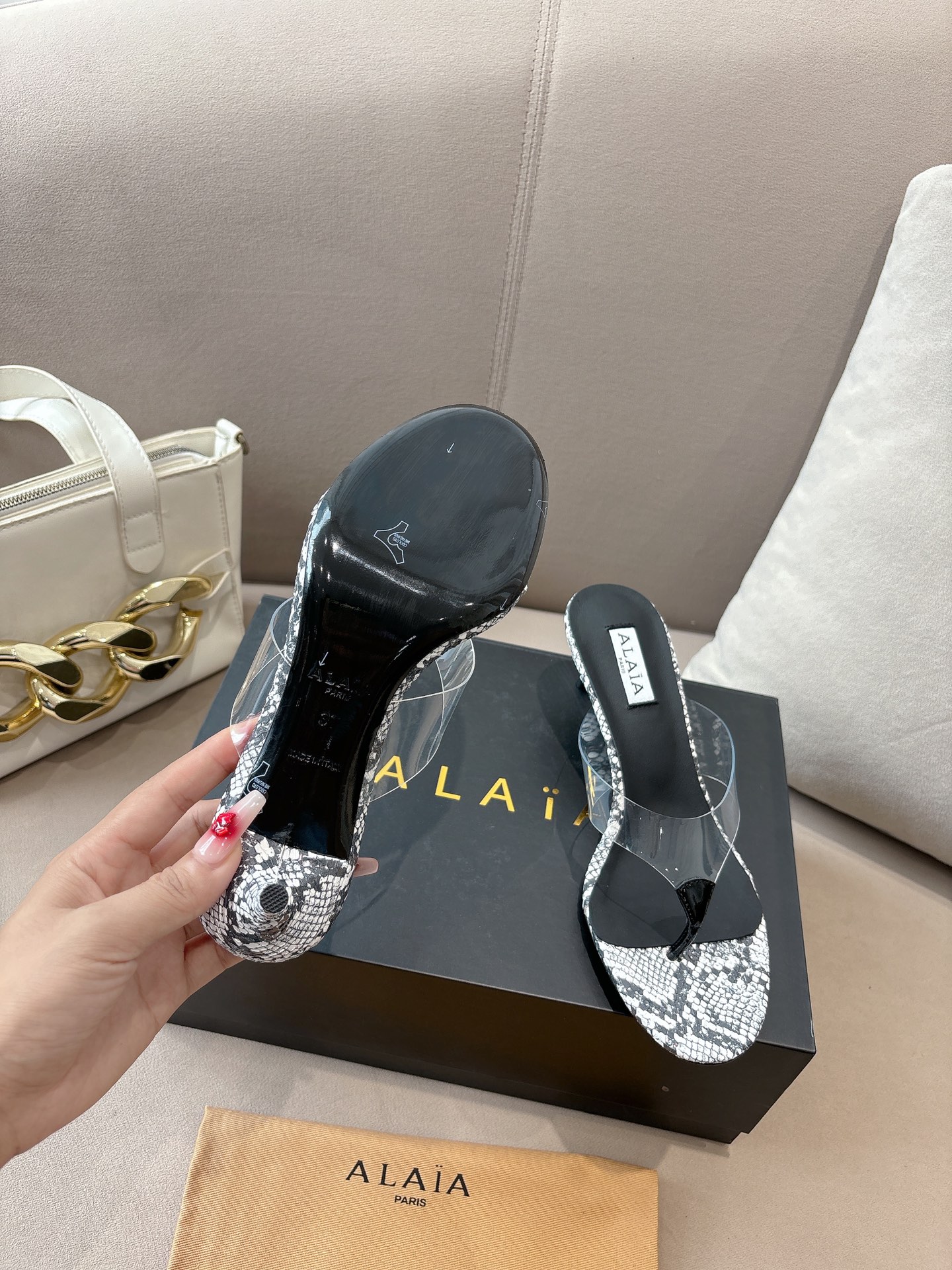ALAIA Real Leather Love Patchwork Sandals Size 35-43 White 10.5cm