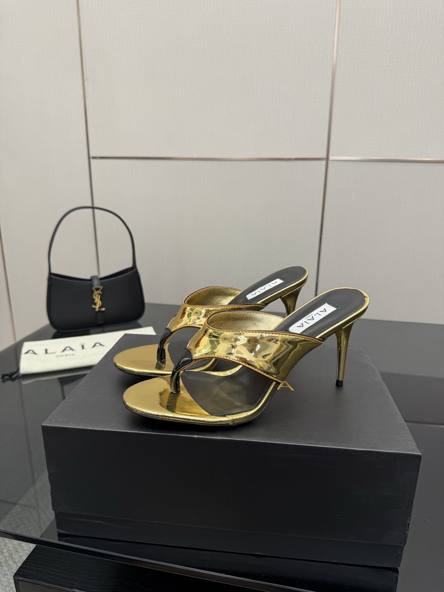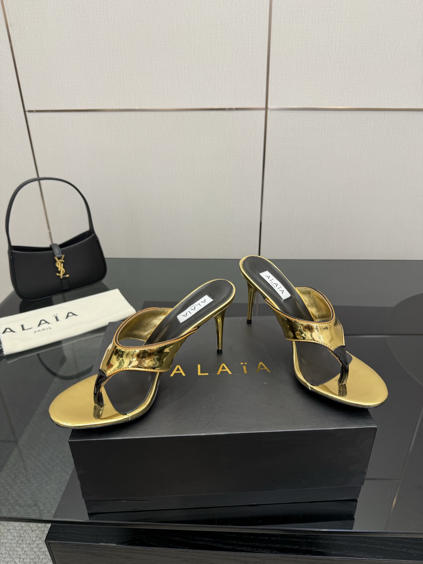 ALAIA Real Leather Love Patchwork Sandals Size 35-43 Black 10.5cm