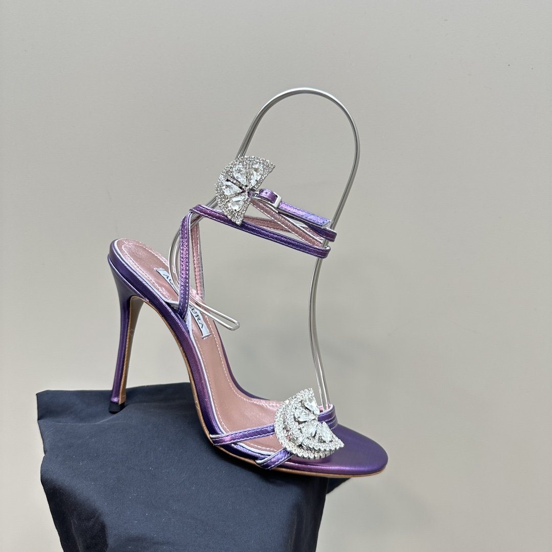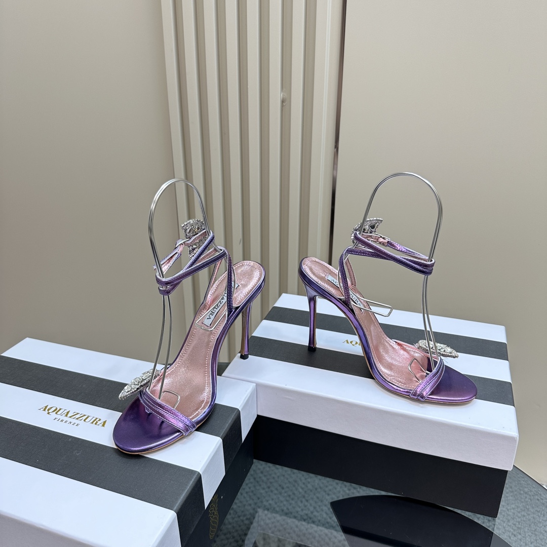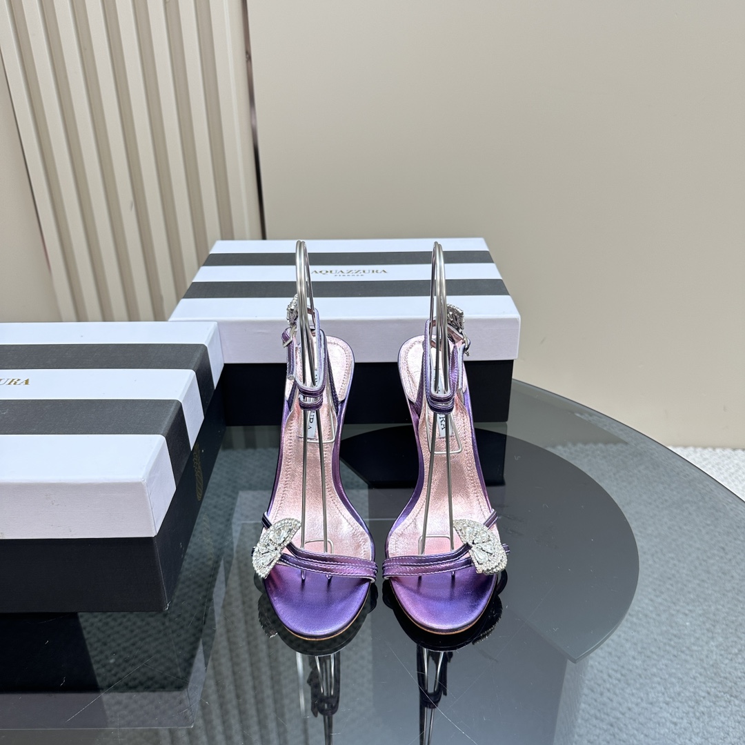 AQUAZZURA Rhinestones High Heeled Hollow Sandals Size 35-43
