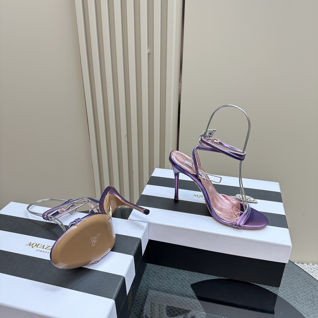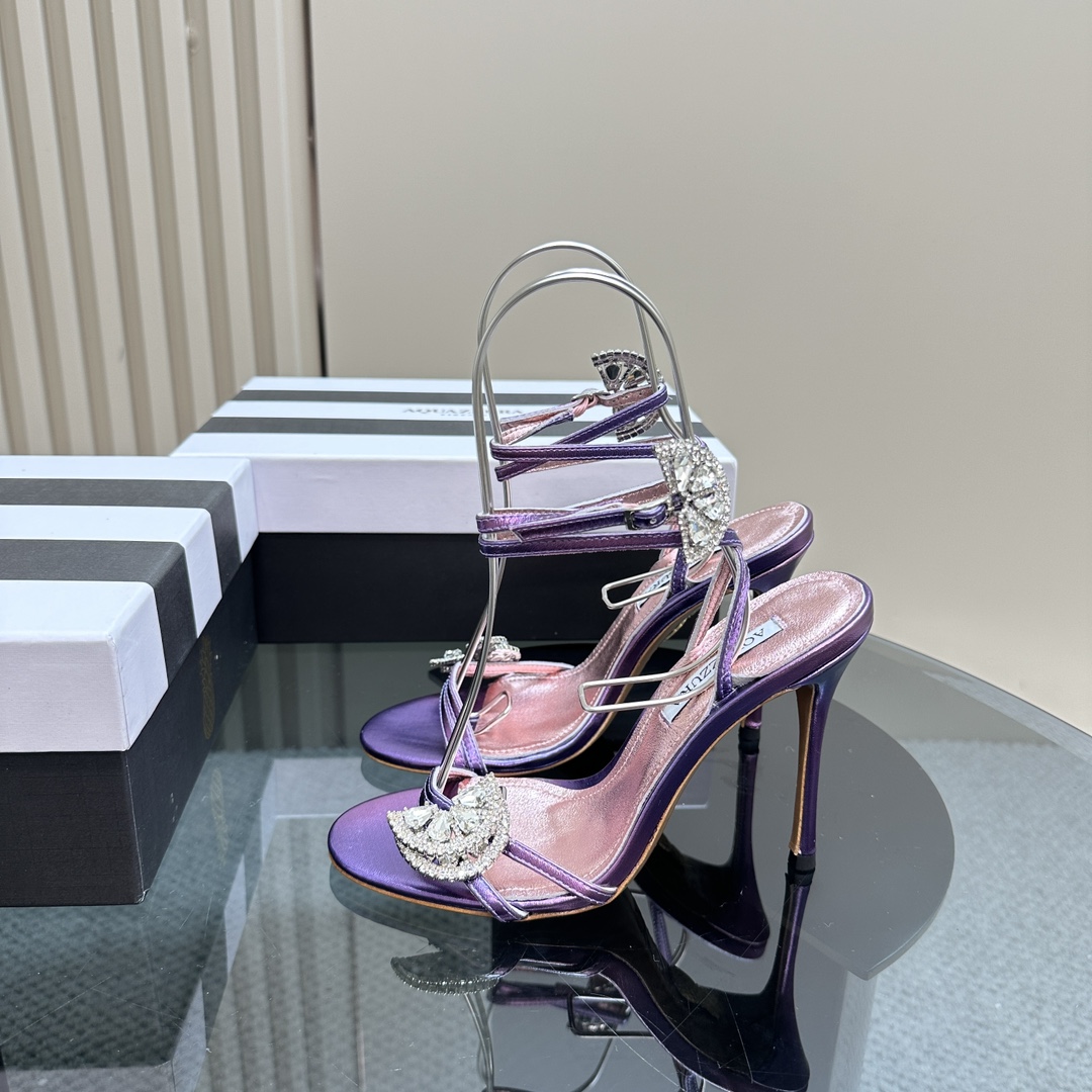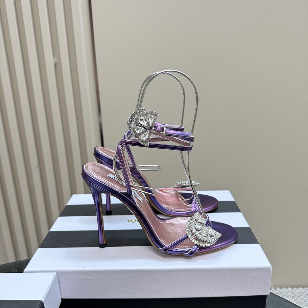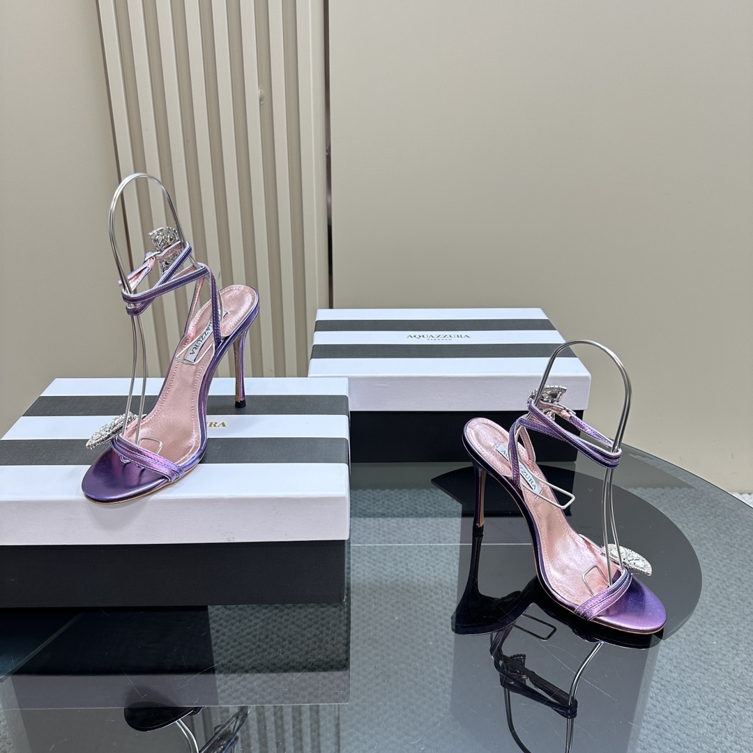 AQUAZZURA Rhinestones High Heeled Hollow Sandals Size 35-43