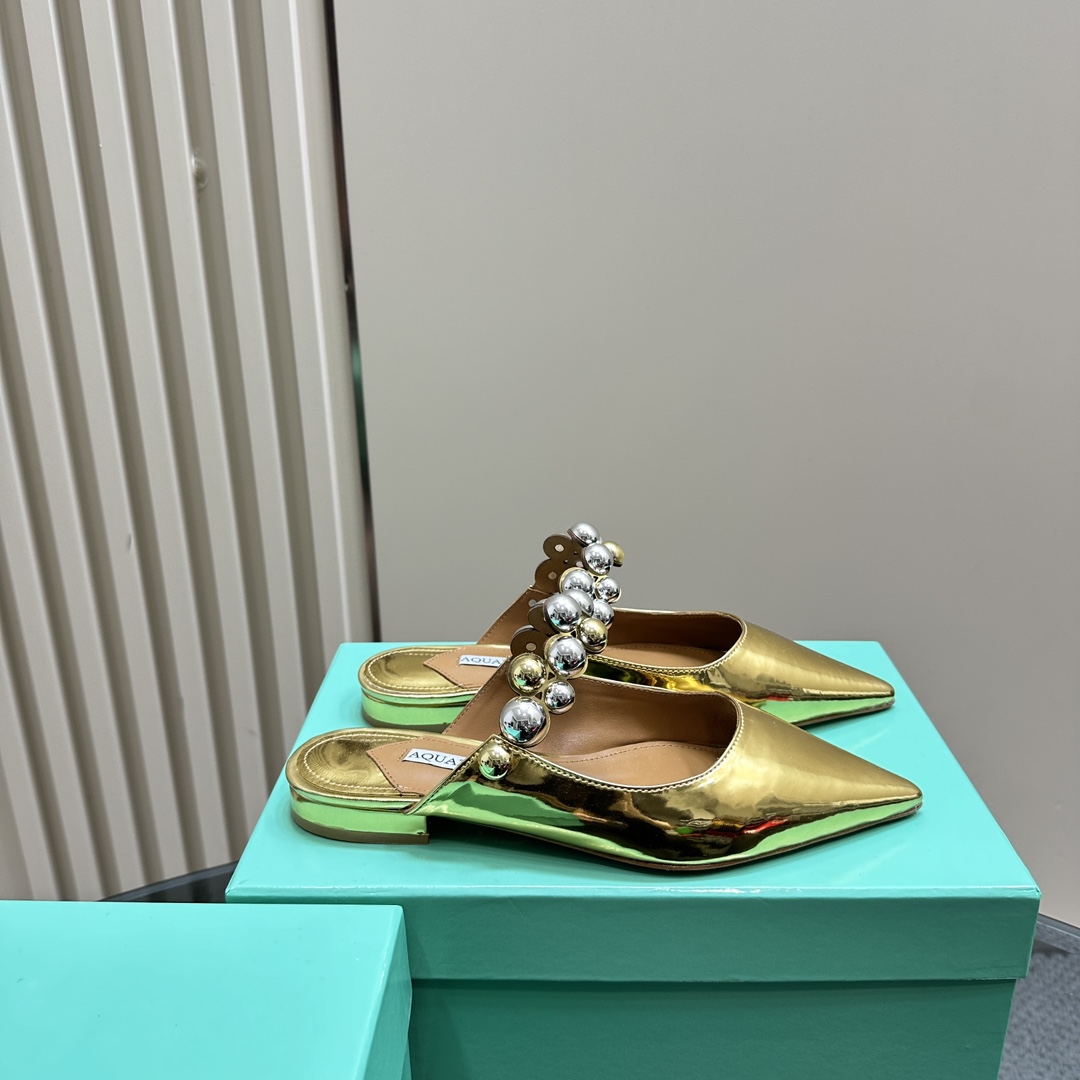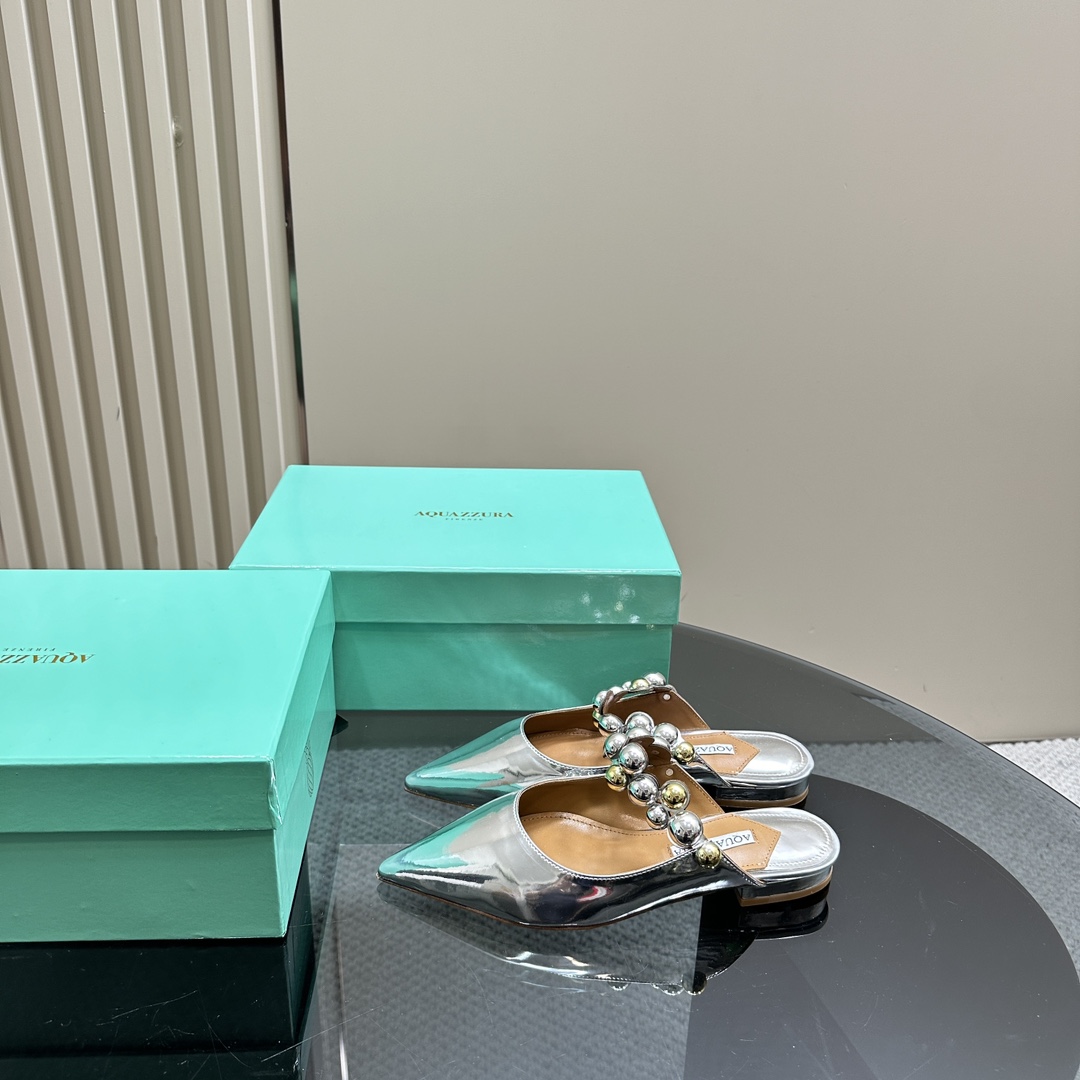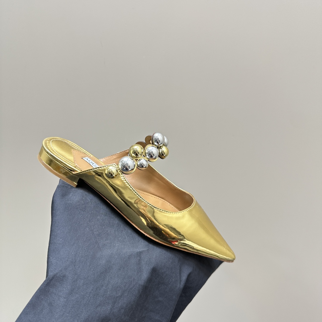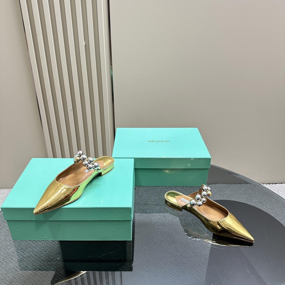 AQUAZZURA Women Buttons Decorative Leather Flats Size 35-42