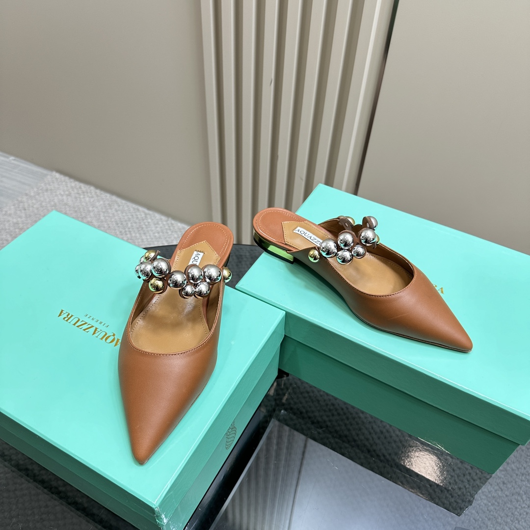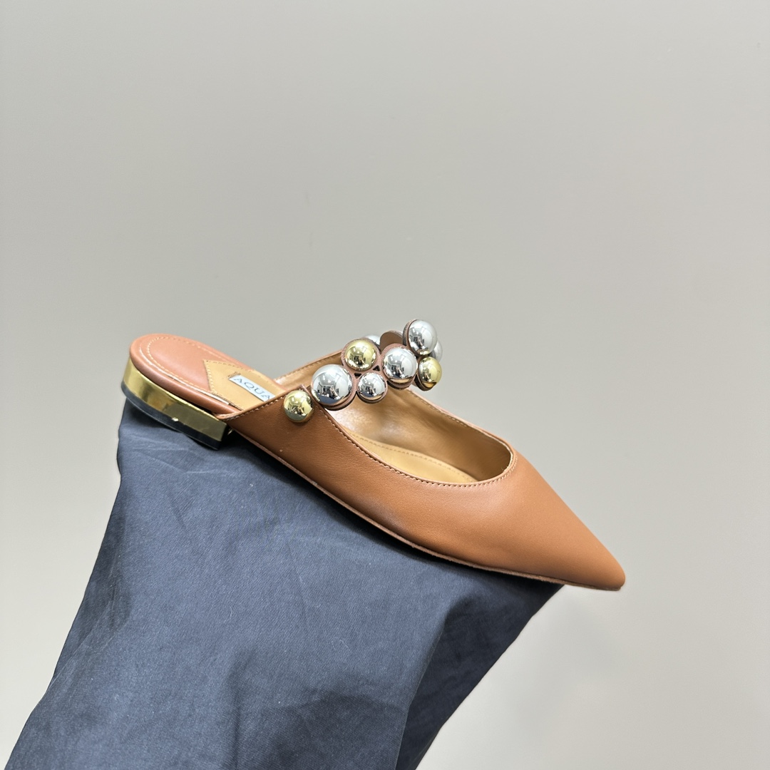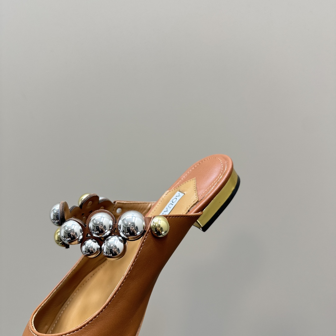 AQUAZZURA Women Buttons Decorative Leather Flats Size 35-42