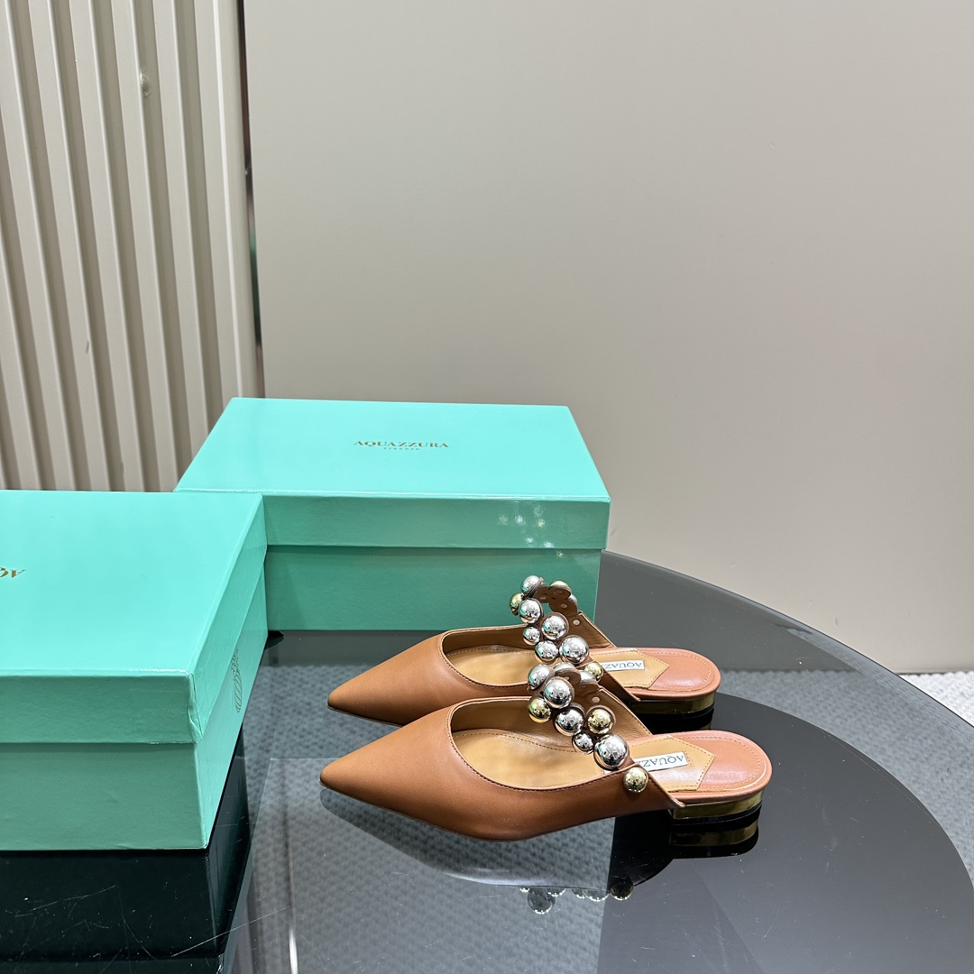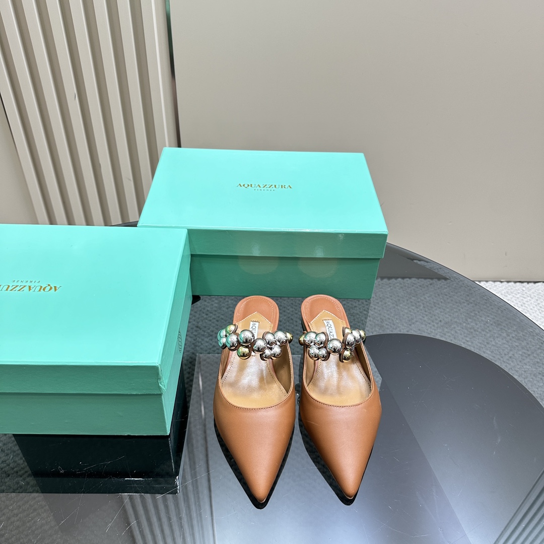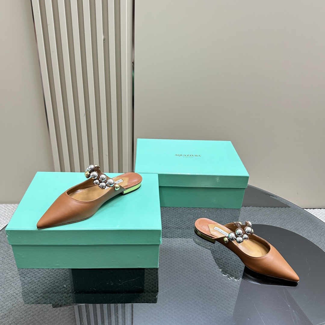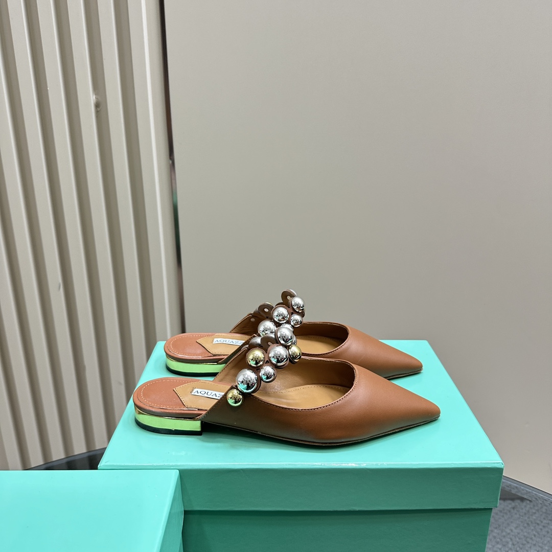 AQUAZZURA Women Buttons Decorative Leather Flats Size 35-42