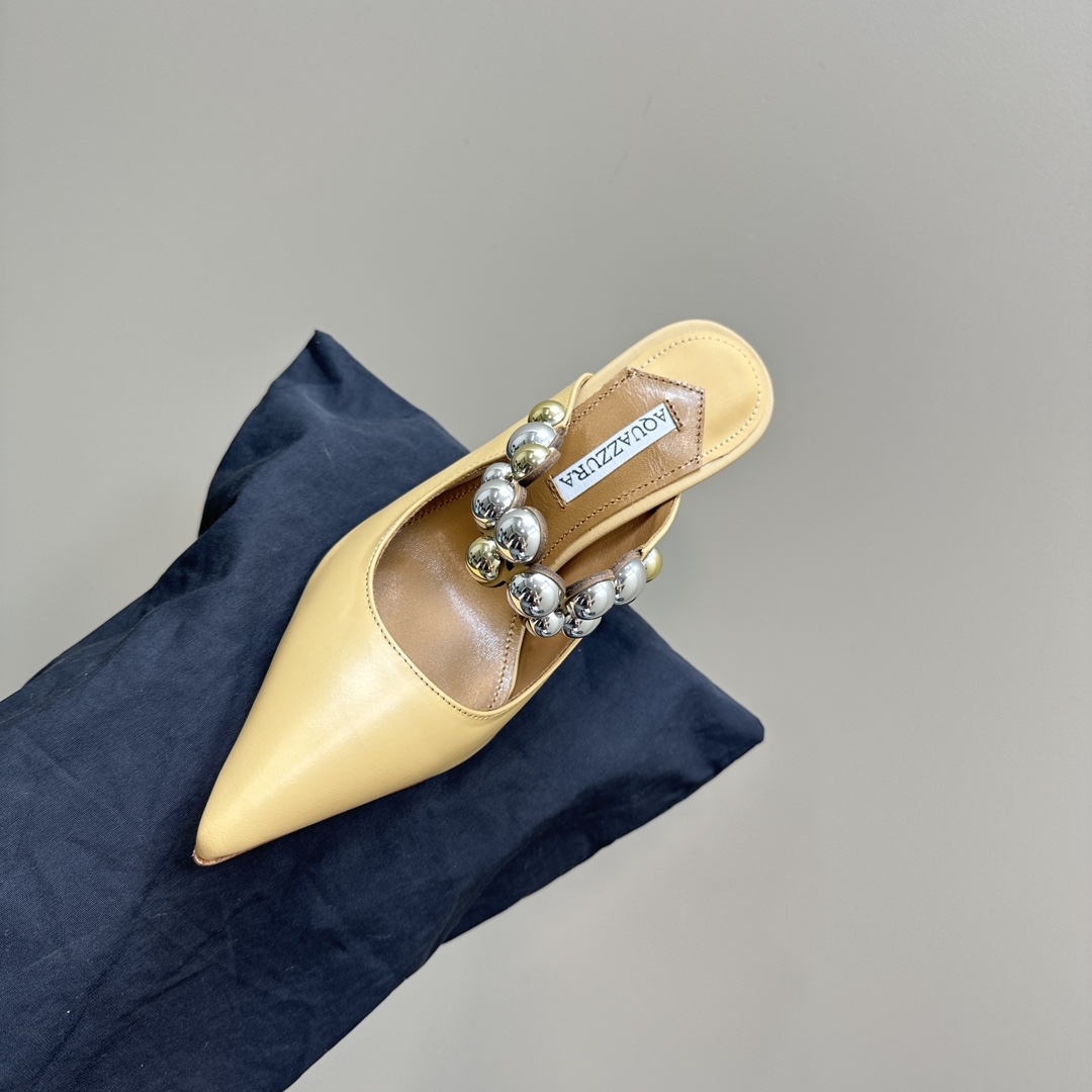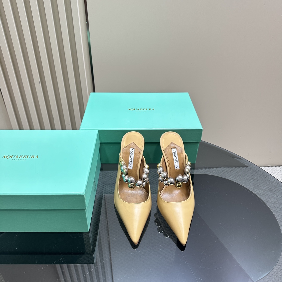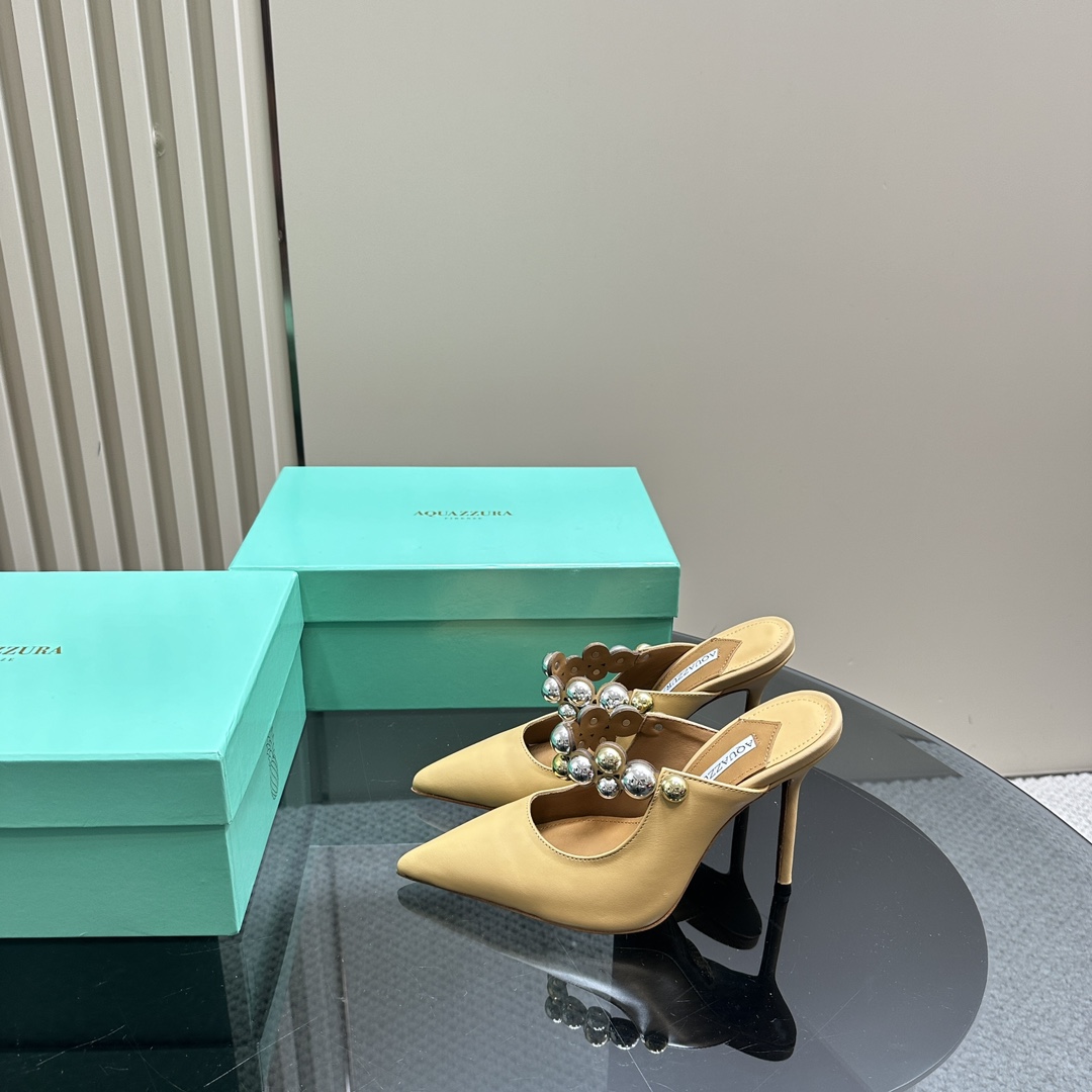 AQUAZZURA Women Buttons Decorative Leather Slippers Size 35-42