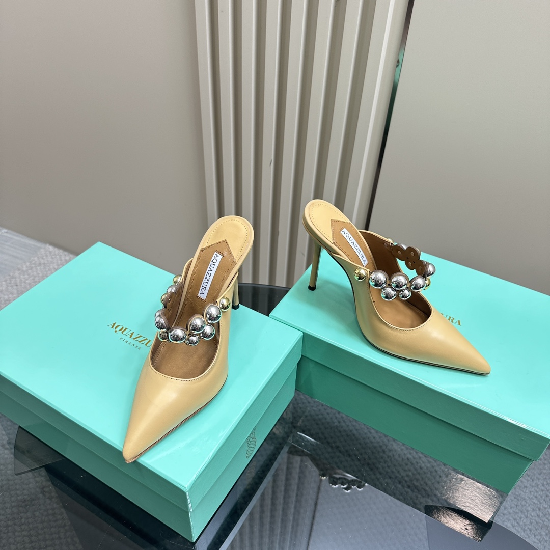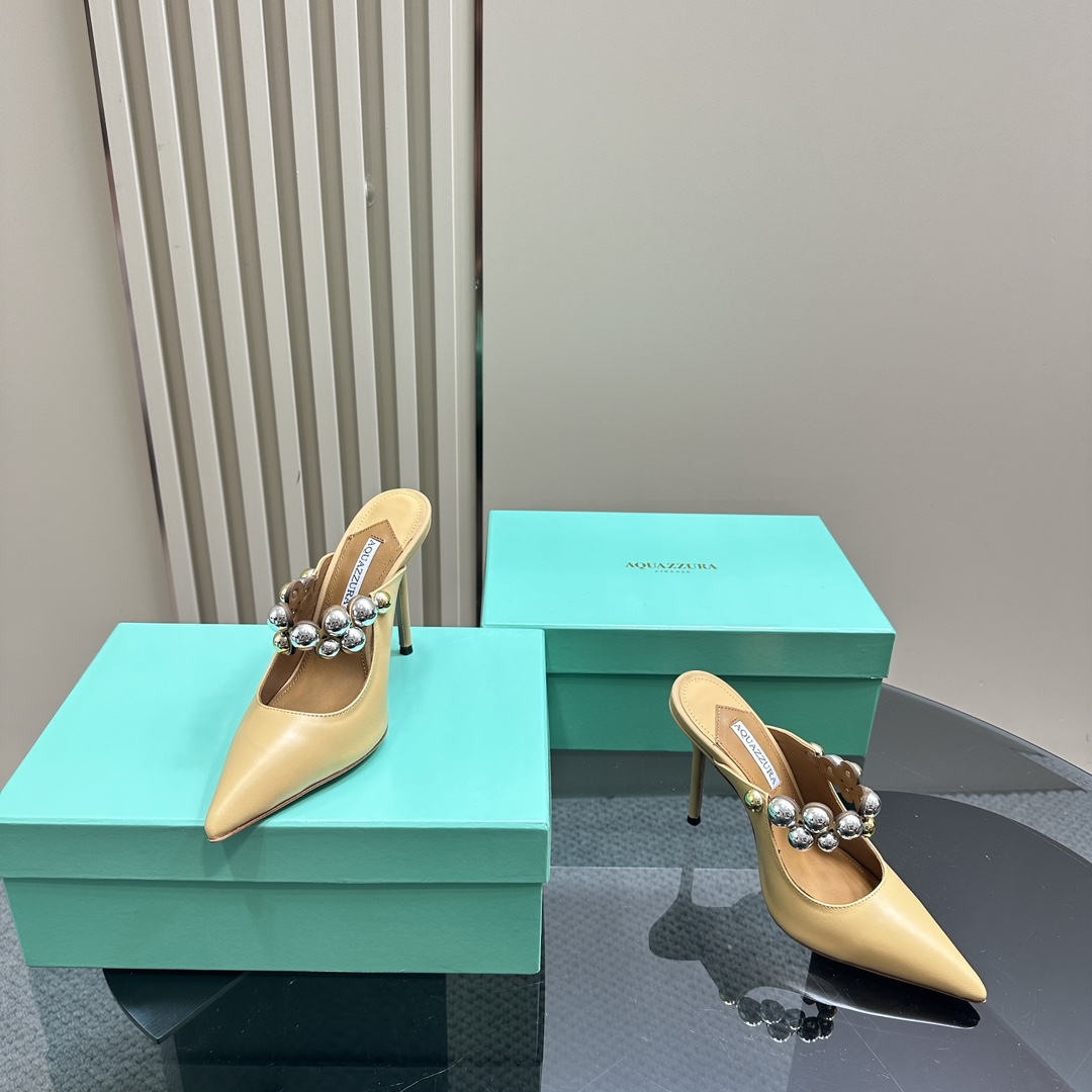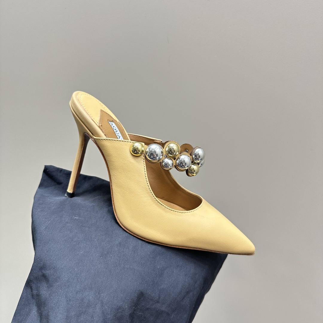 AQUAZZURA Women Buttons Decorative Leather Slippers Size 35-42