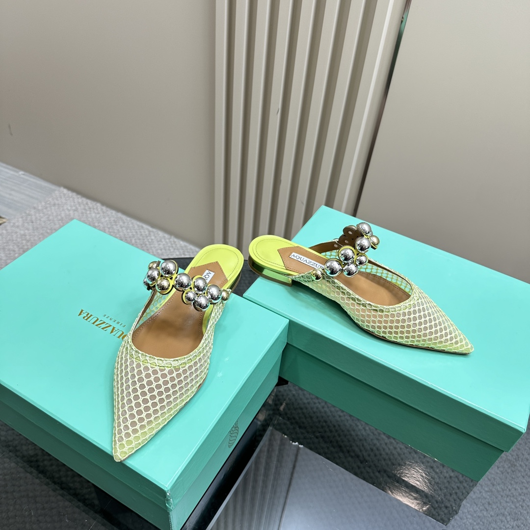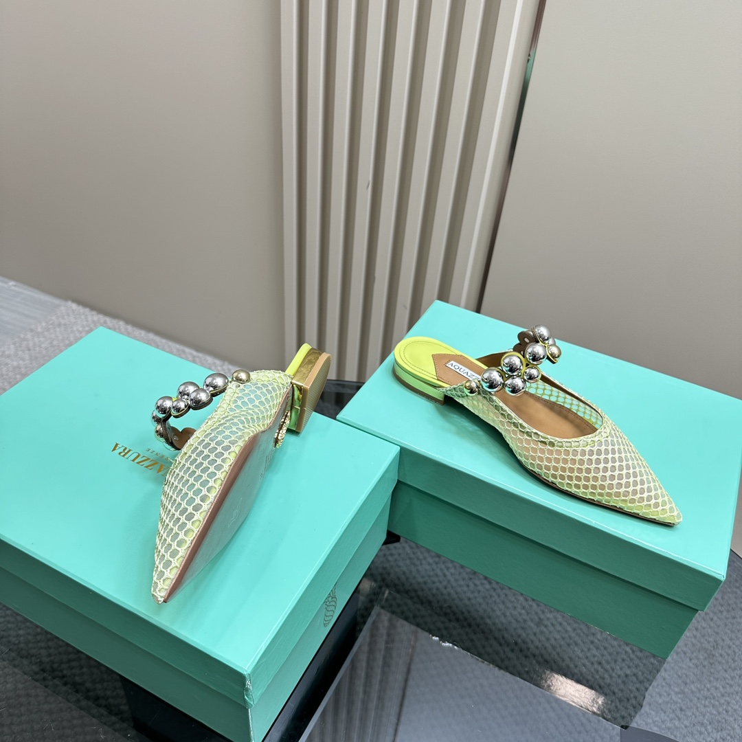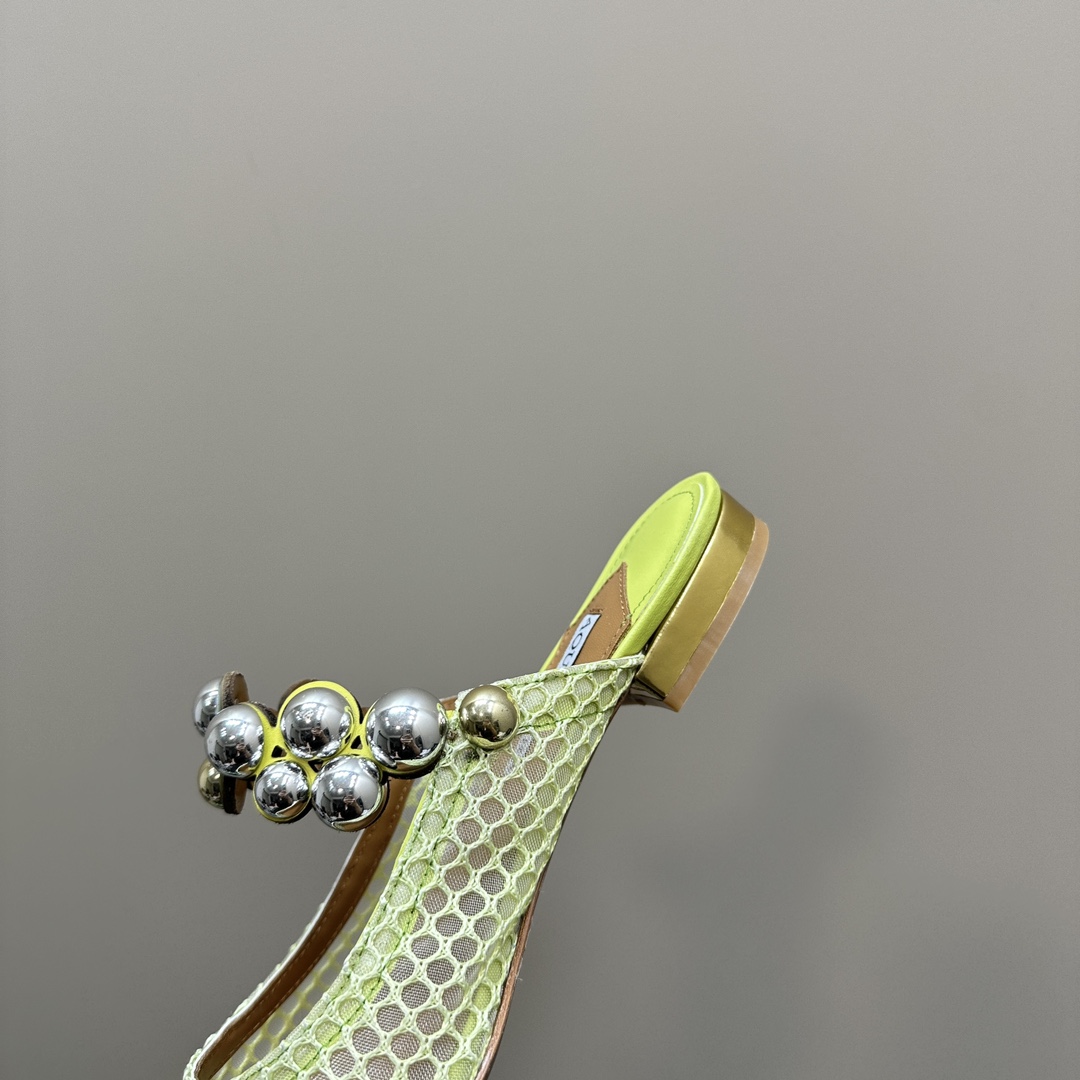 AQUAZZURA Women Buttons Decorative Mesh Flats Size 35-42