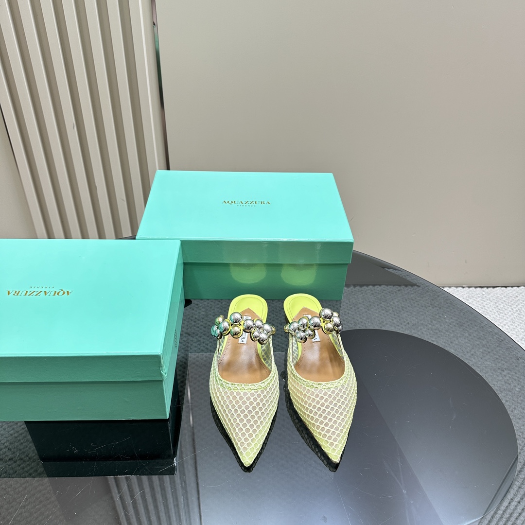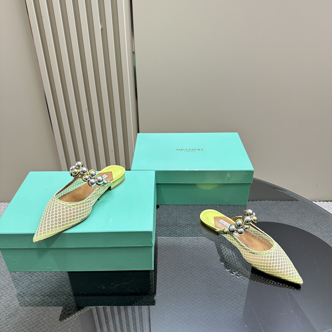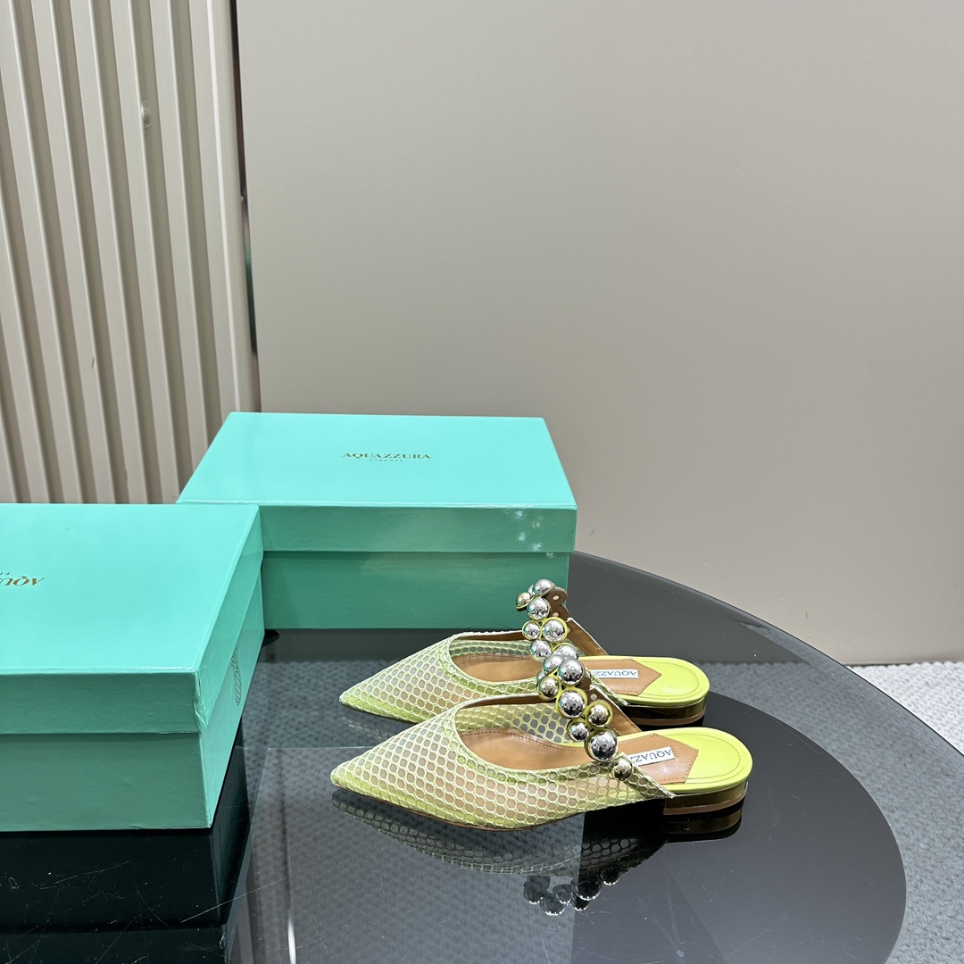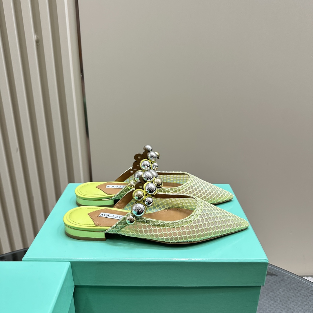 AQUAZZURA Women Buttons Decorative Mesh Flats Size 35-42