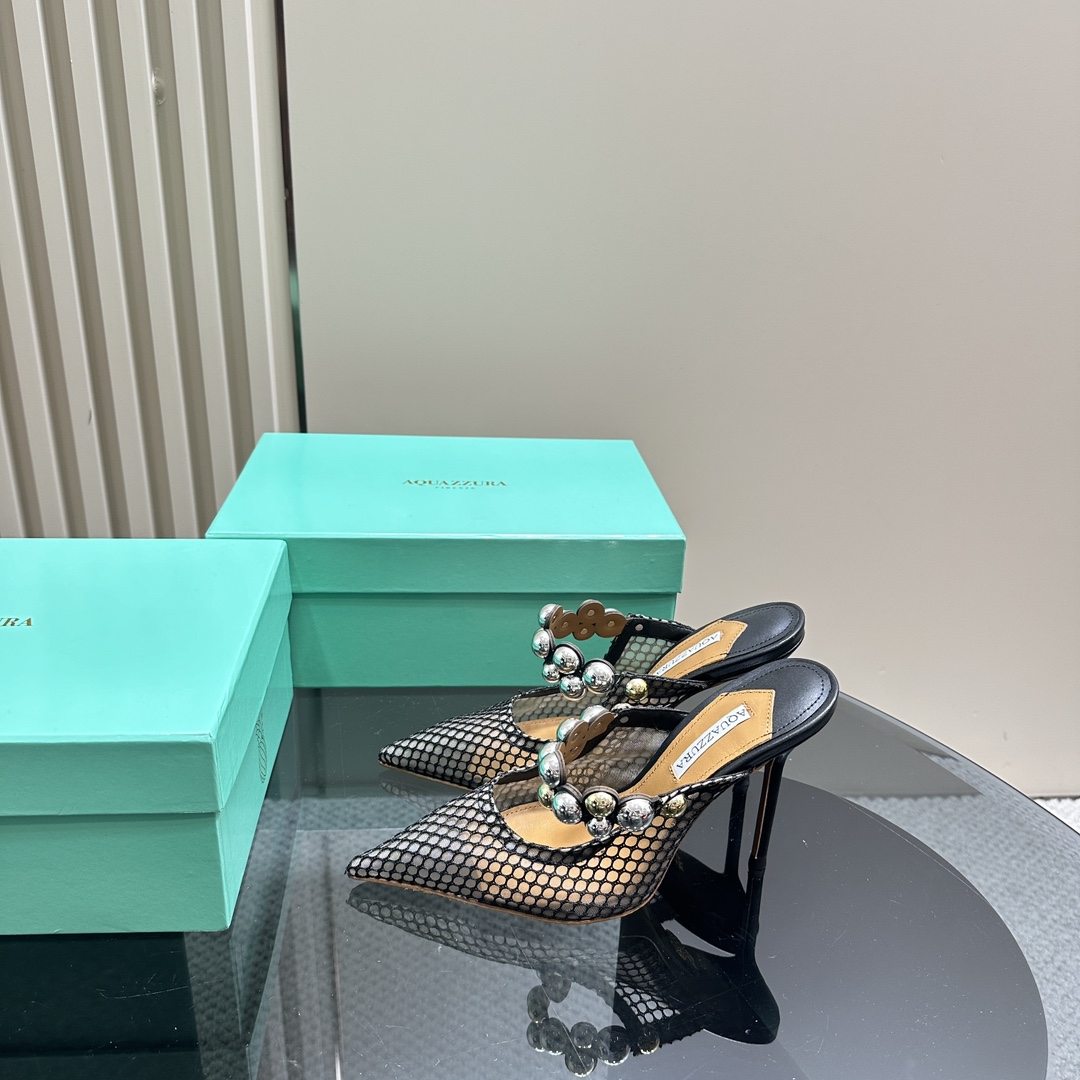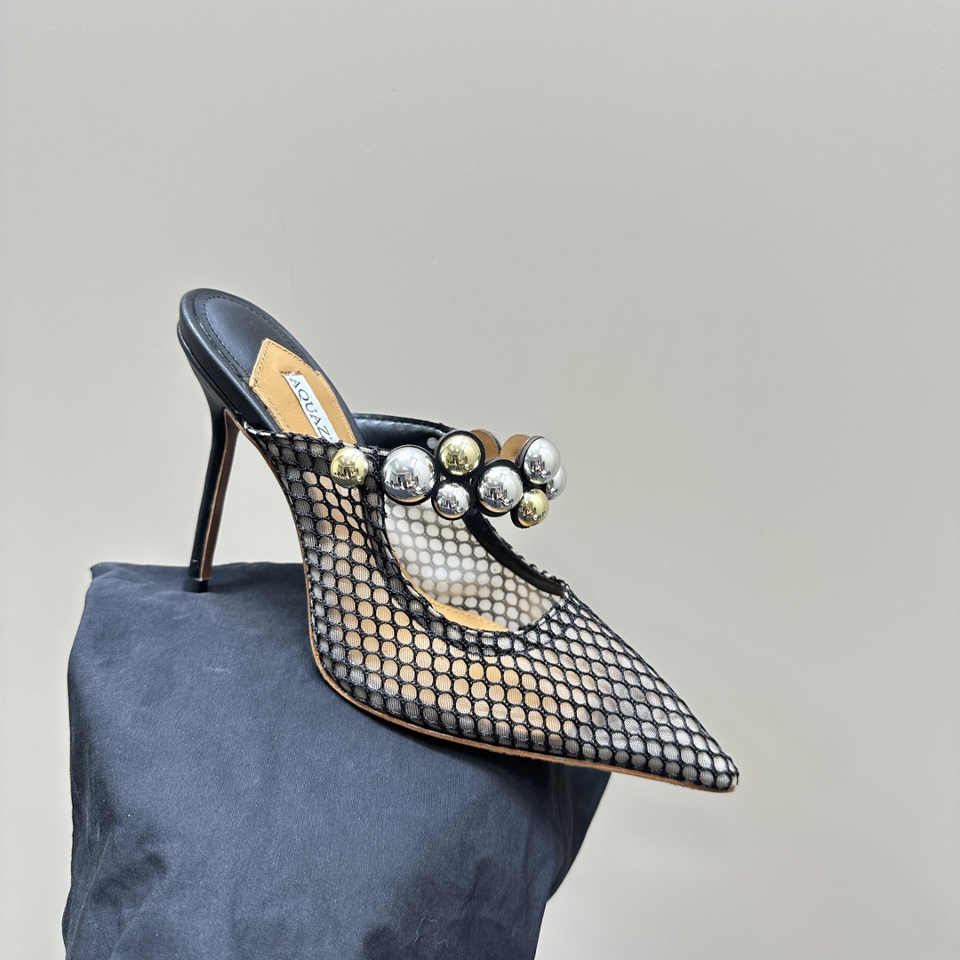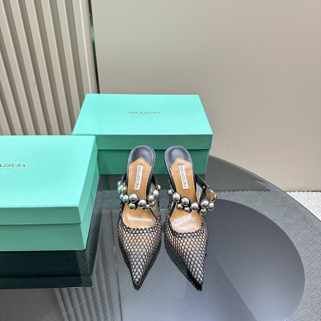 AQUAZZURA Women Buttons Decorative Rhinestone Slippers Size 35-42