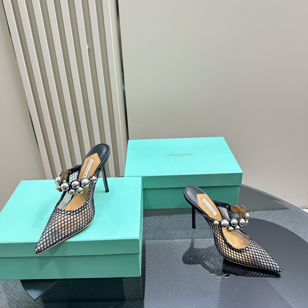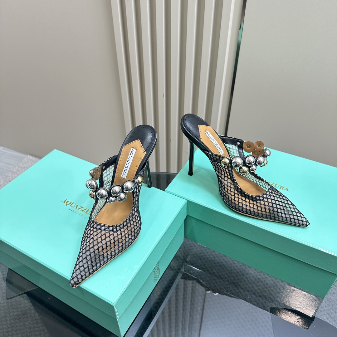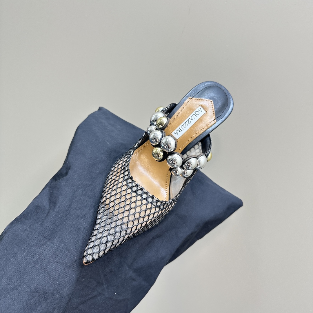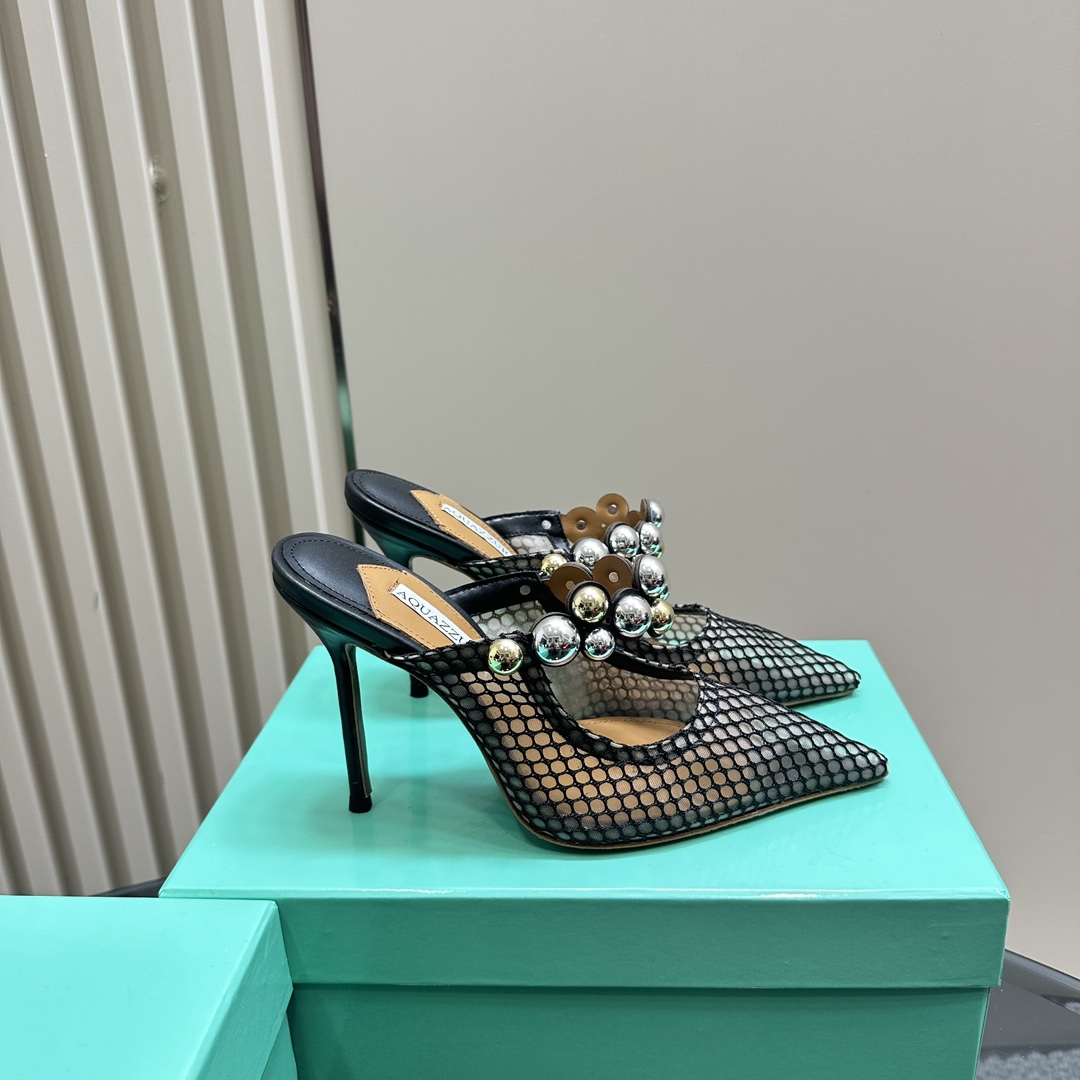 AQUAZZURA Women Buttons Decorative Rhinestone Slippers Size 35-42