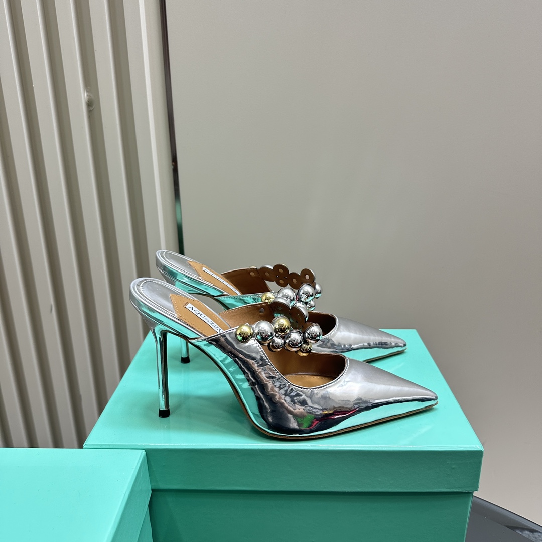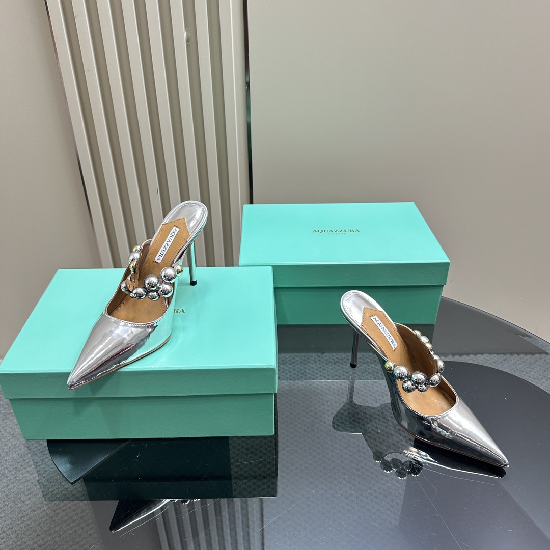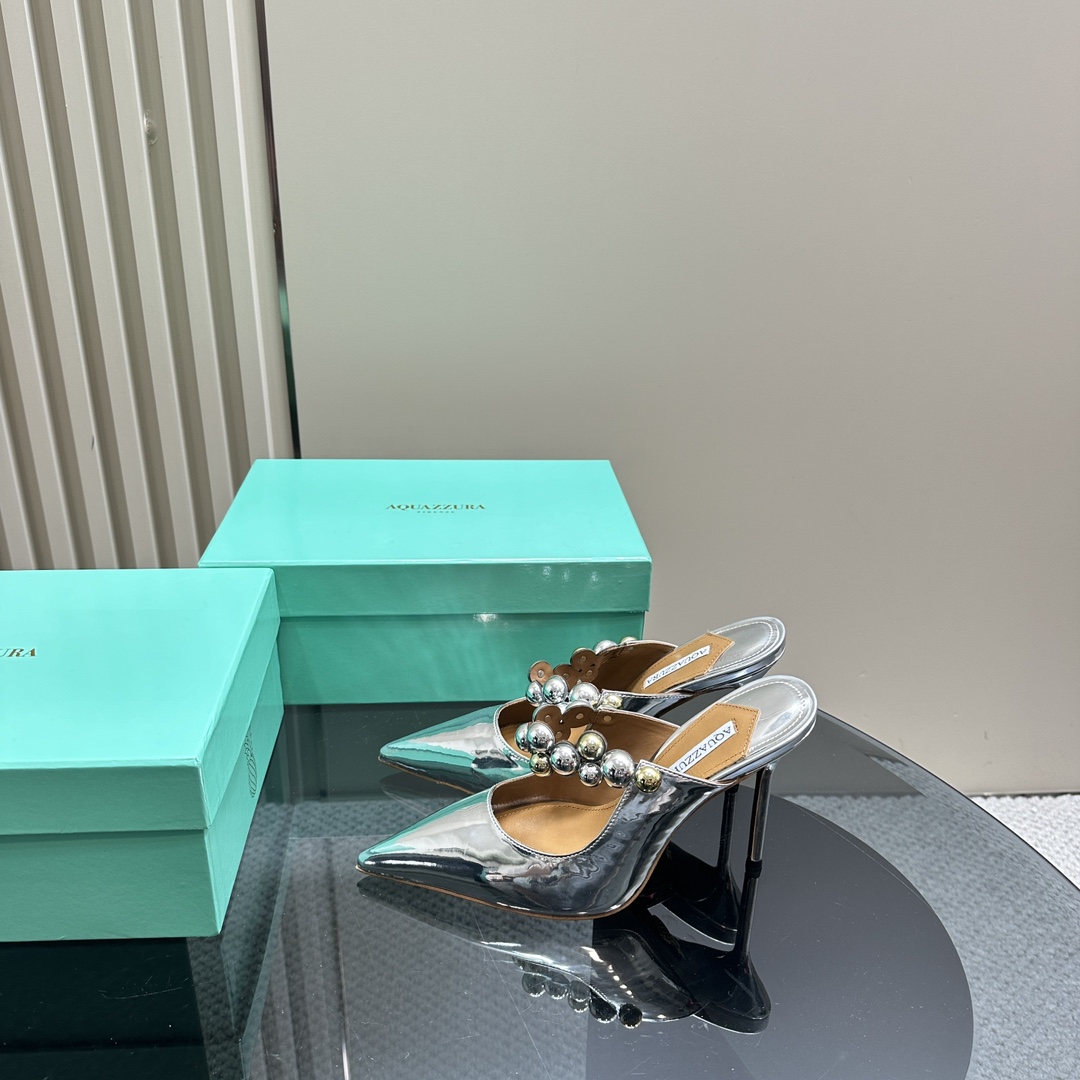 AQUAZZURA Women Buttons Decorative Rhinestone Slippers Size 35-42