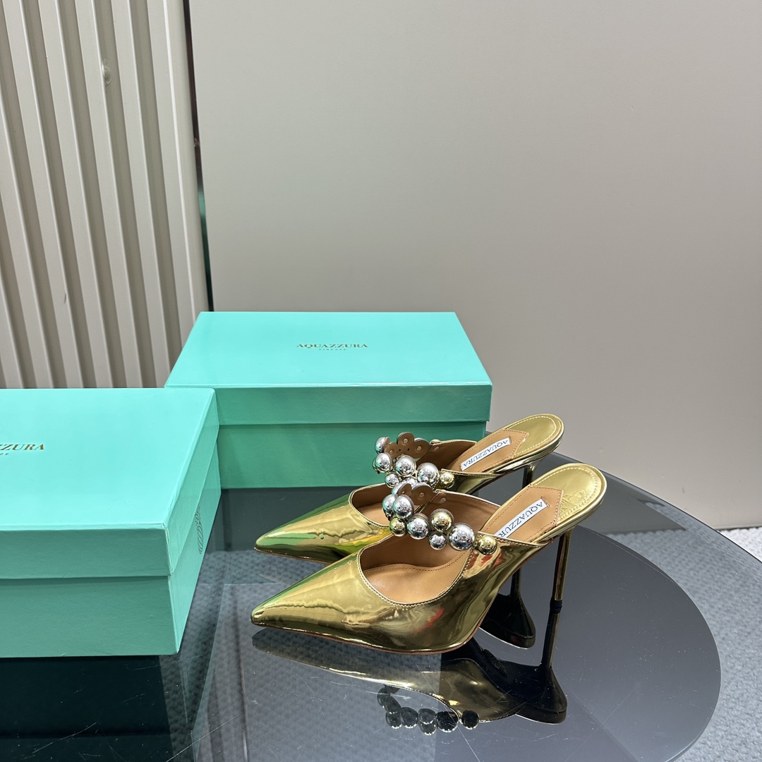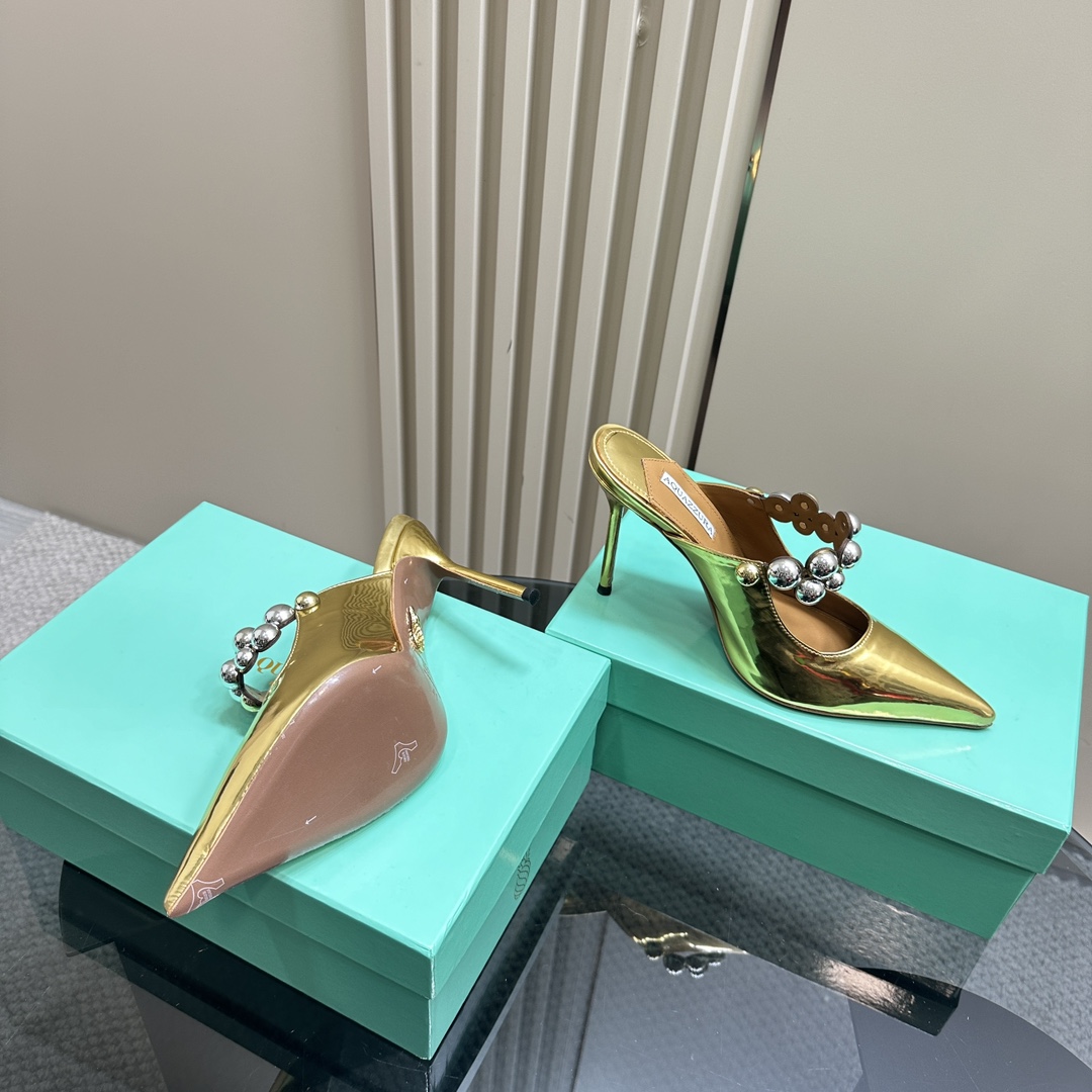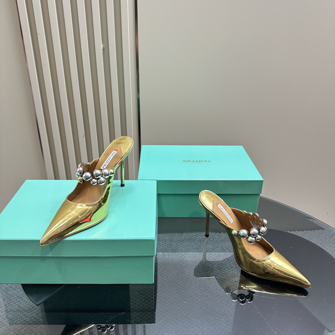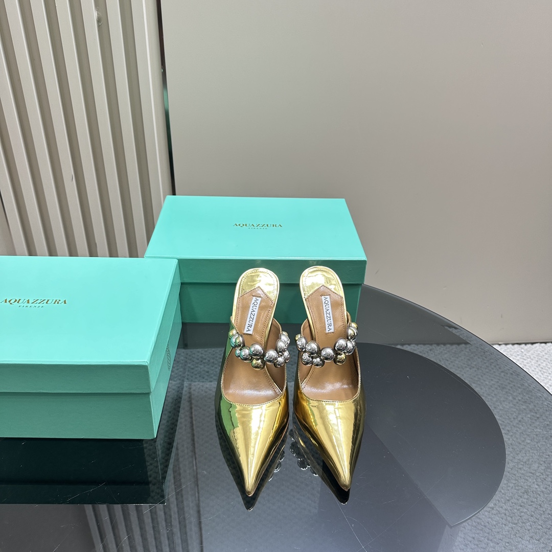 AQUAZZURA Women Buttons Decorative Rhinestone Slippers Size 35-42