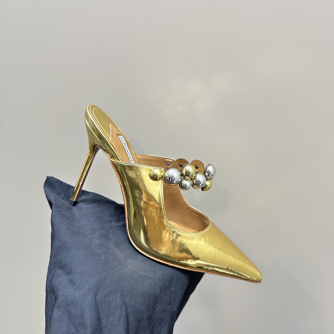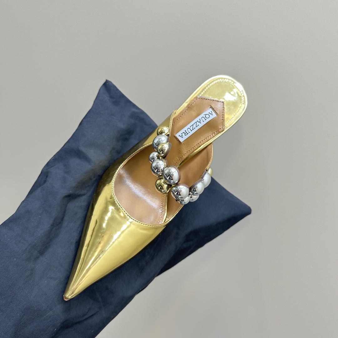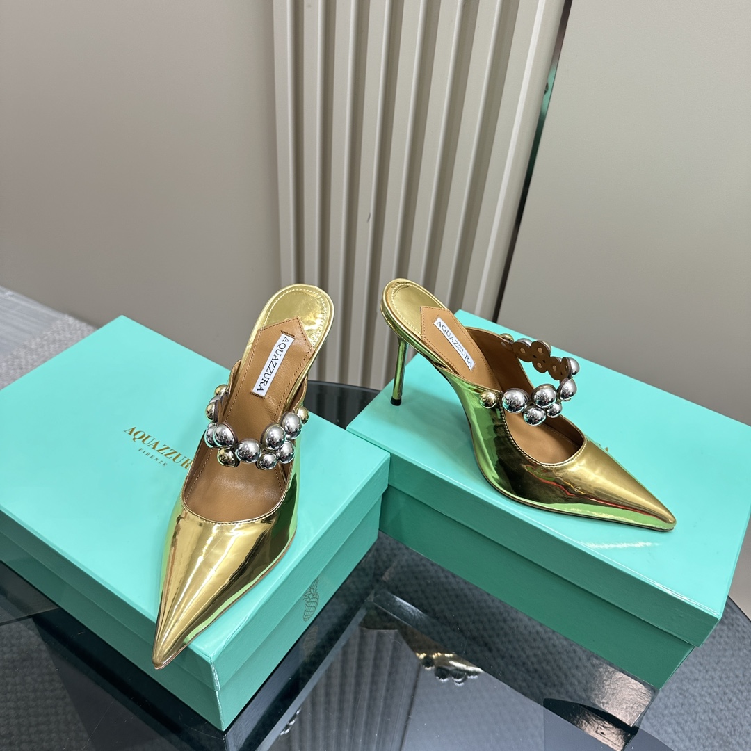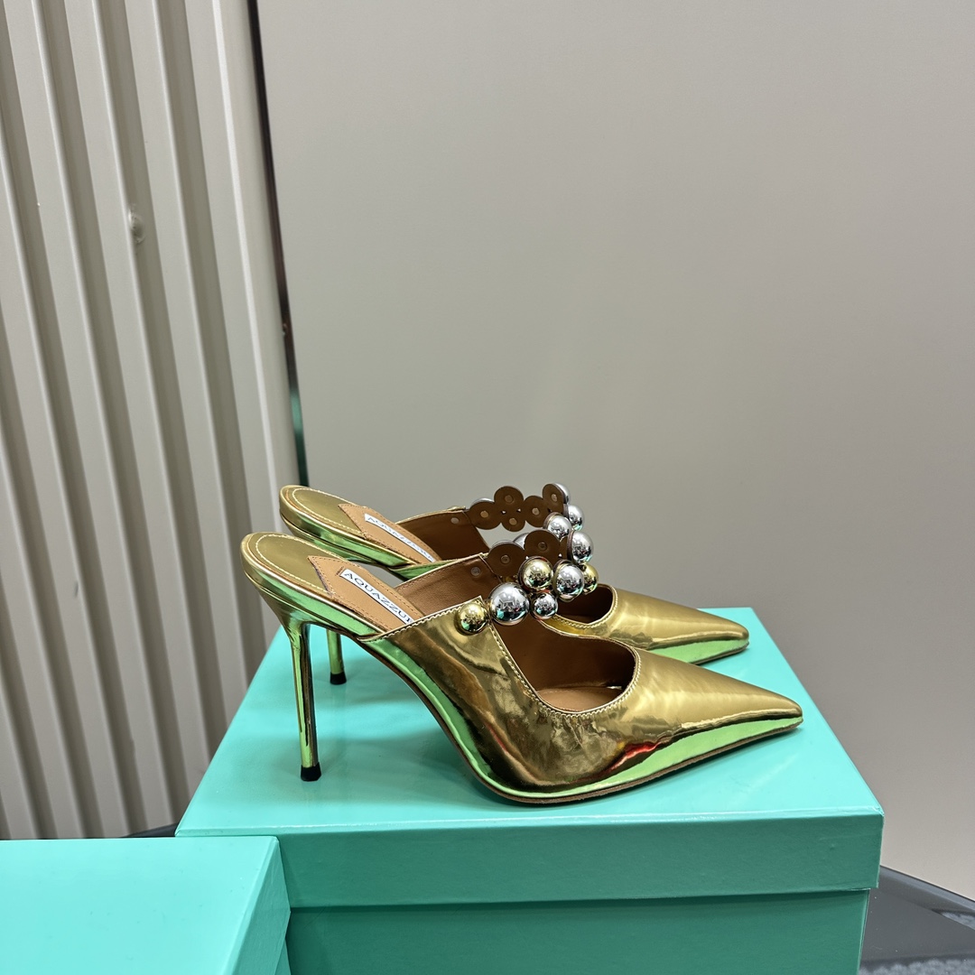 AQUAZZURA Women Buttons Decorative Rhinestone Slippers Size 35-42