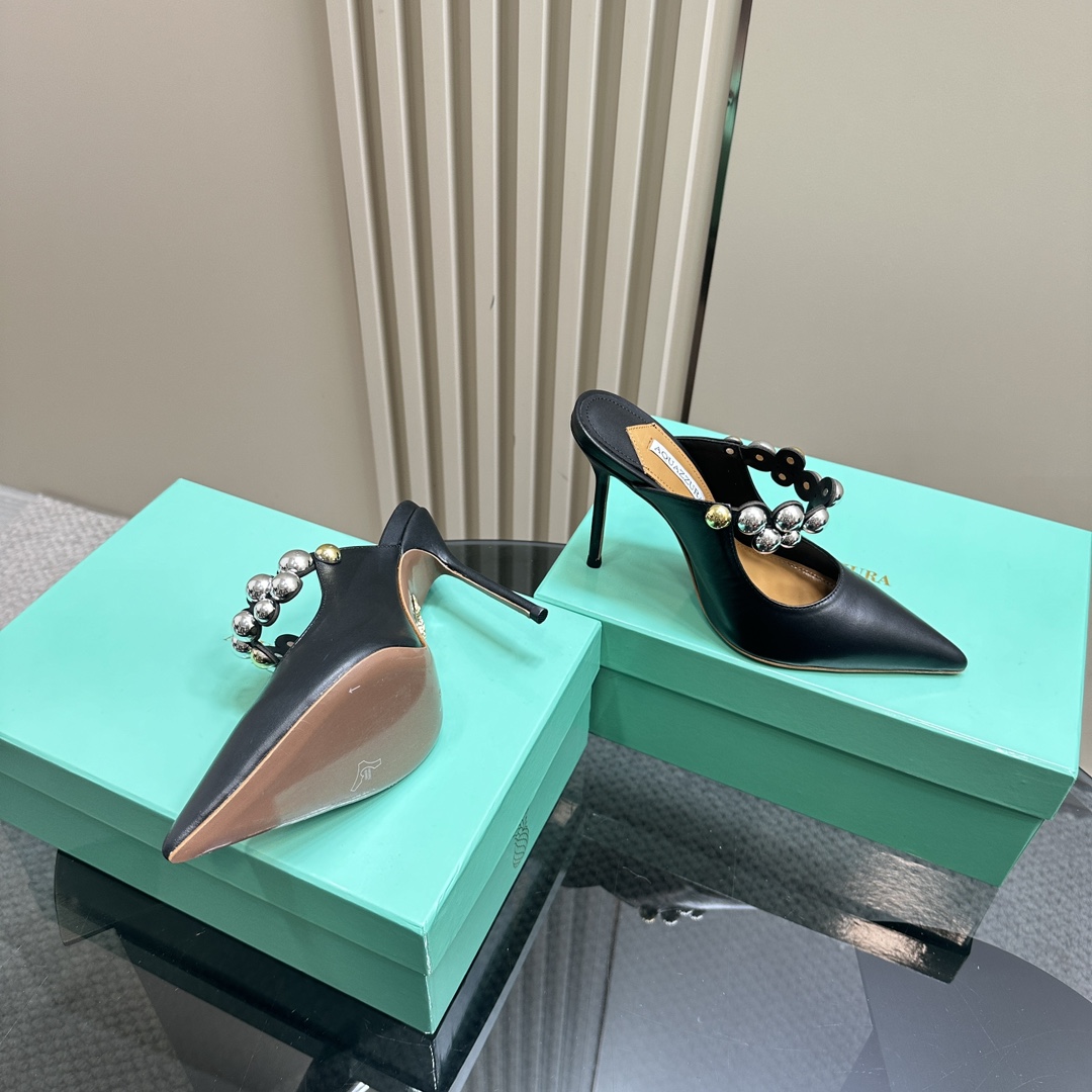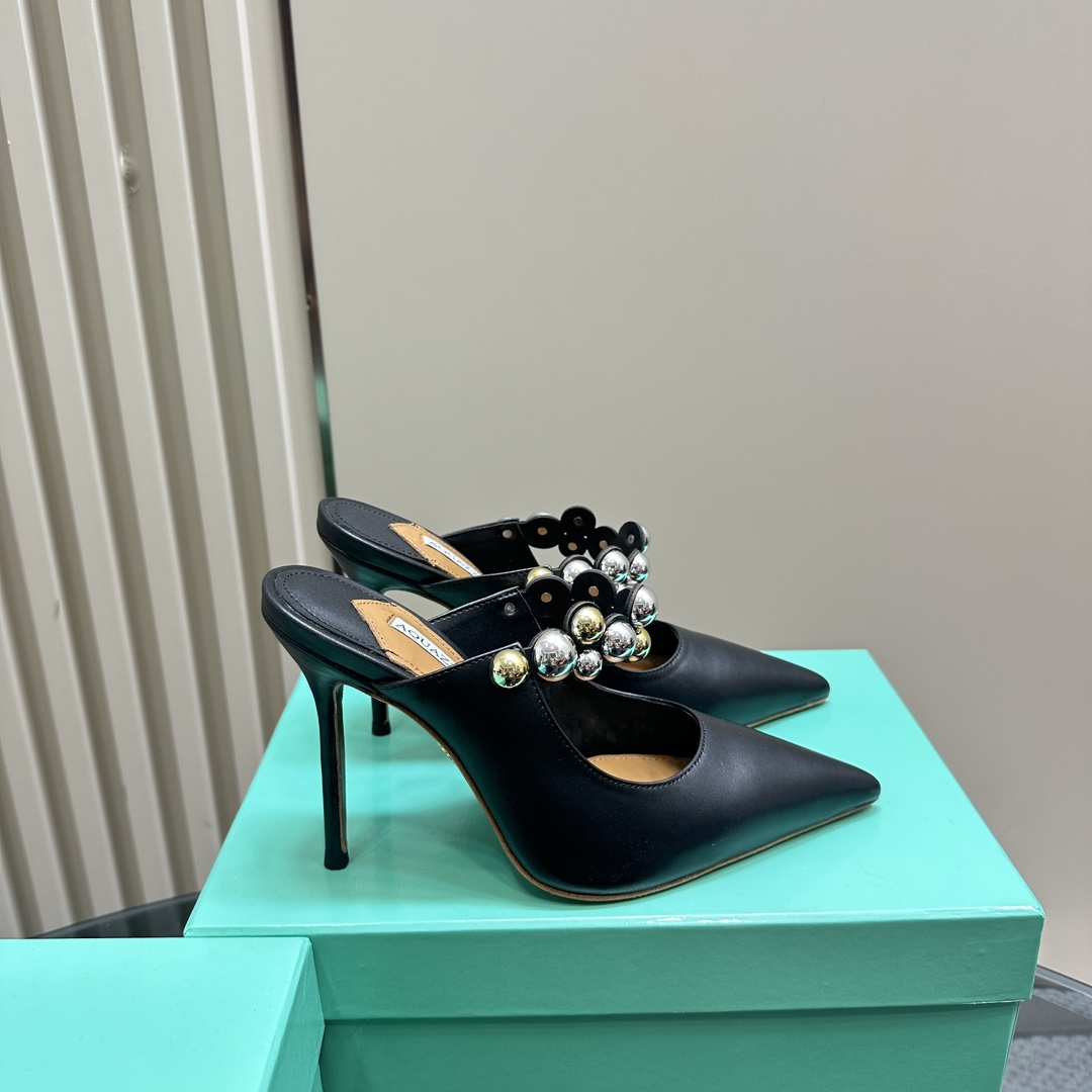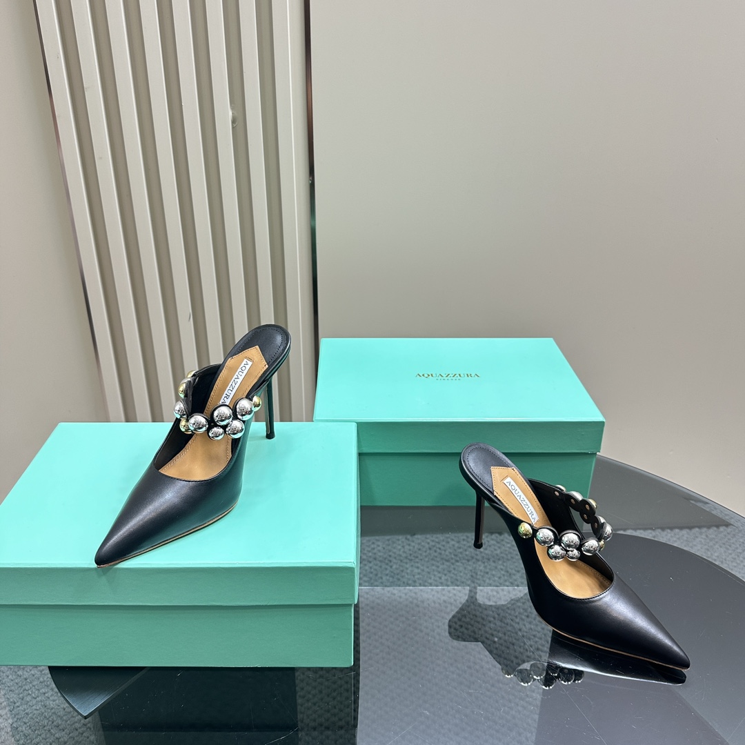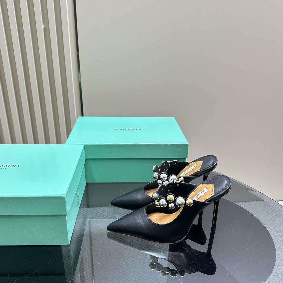 AQUAZZURA Women Buttons Decorative Rhinestone Slippers Size 35-42