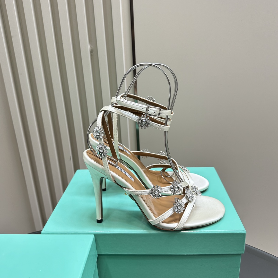 AQUAZZURA Women Chain Rhinestone High-heeled Size 35-43