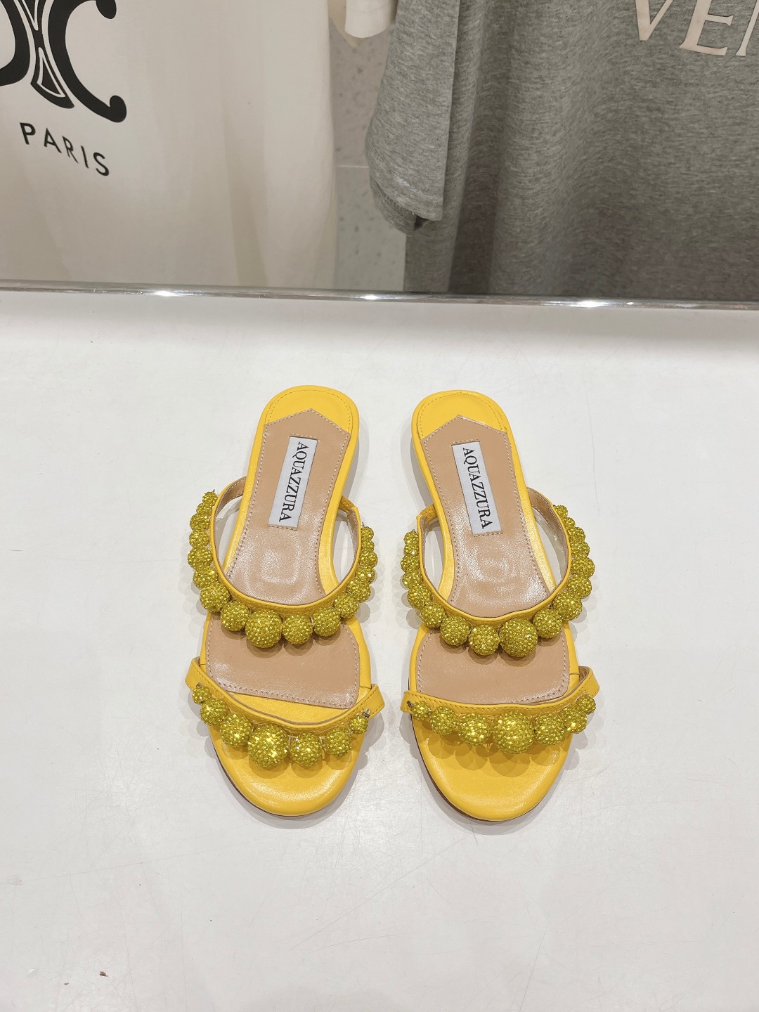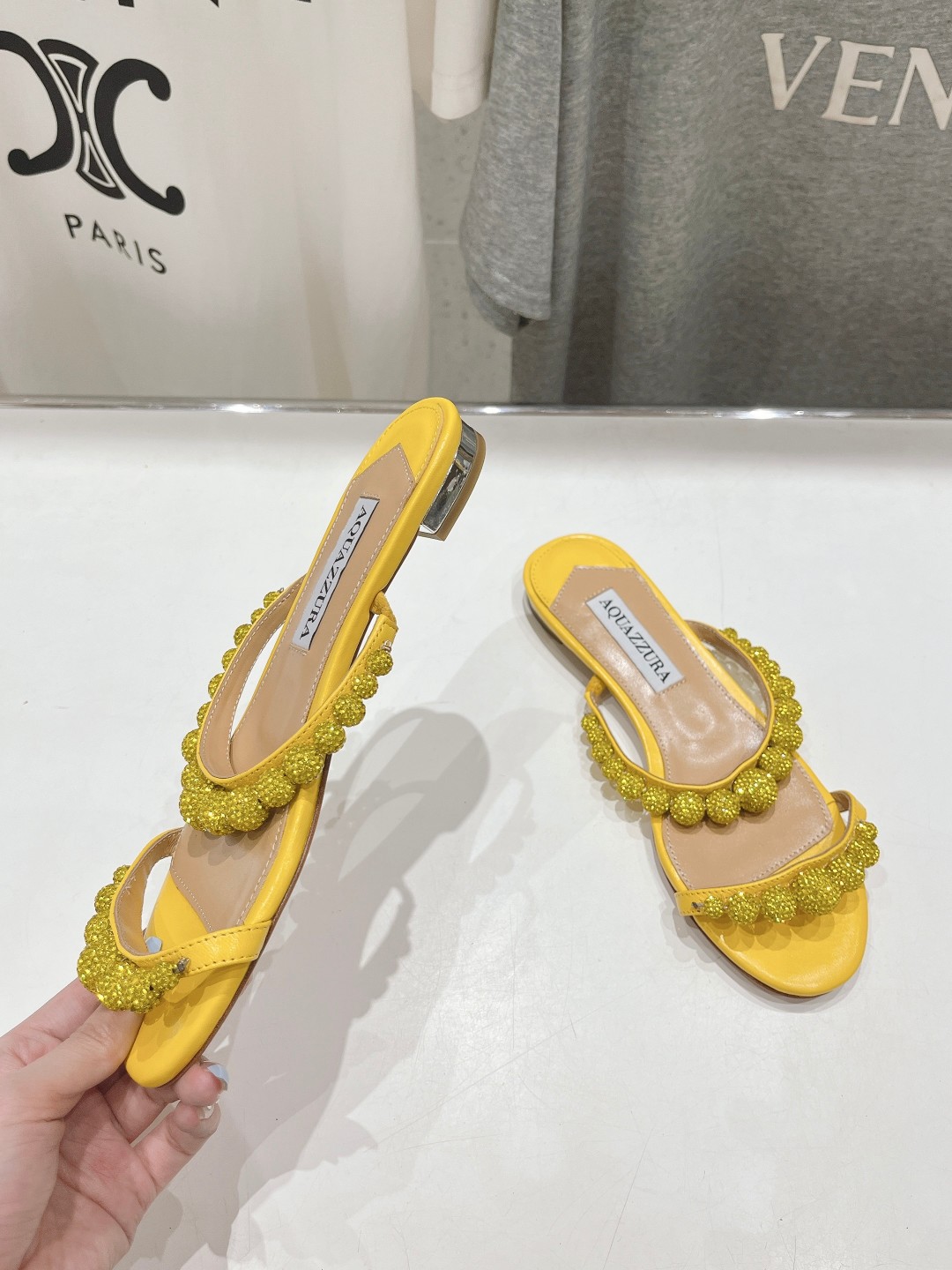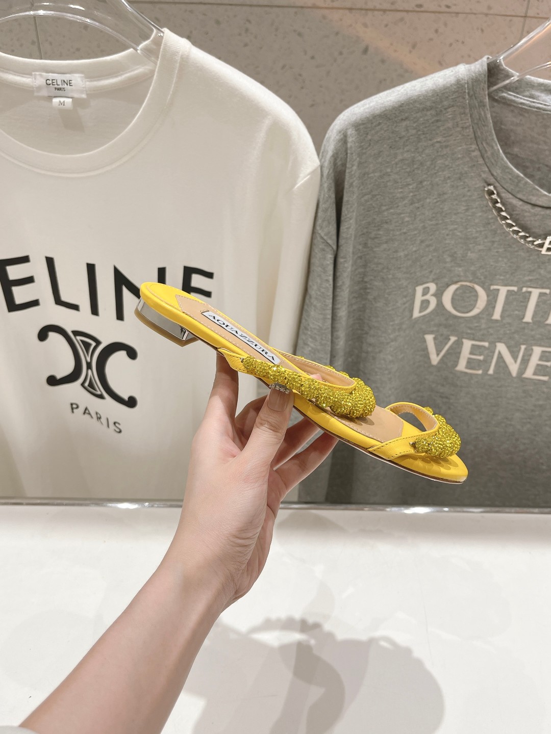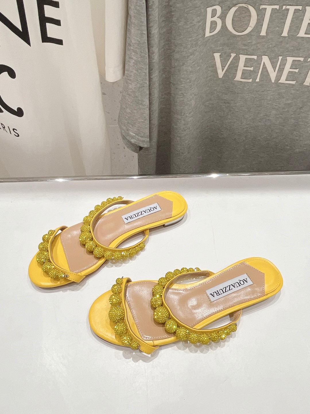 AQUAZZURA Women Rhinestone Flats Slippers Size 35-42